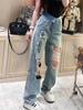 Pantalones vaqueros rectos retro de cintura alta de talla grande para mujer, otoño 2024, nuevos pantalones de pierna ancha adelgazantes con cobertura de cadera para chica gordita