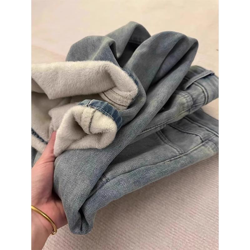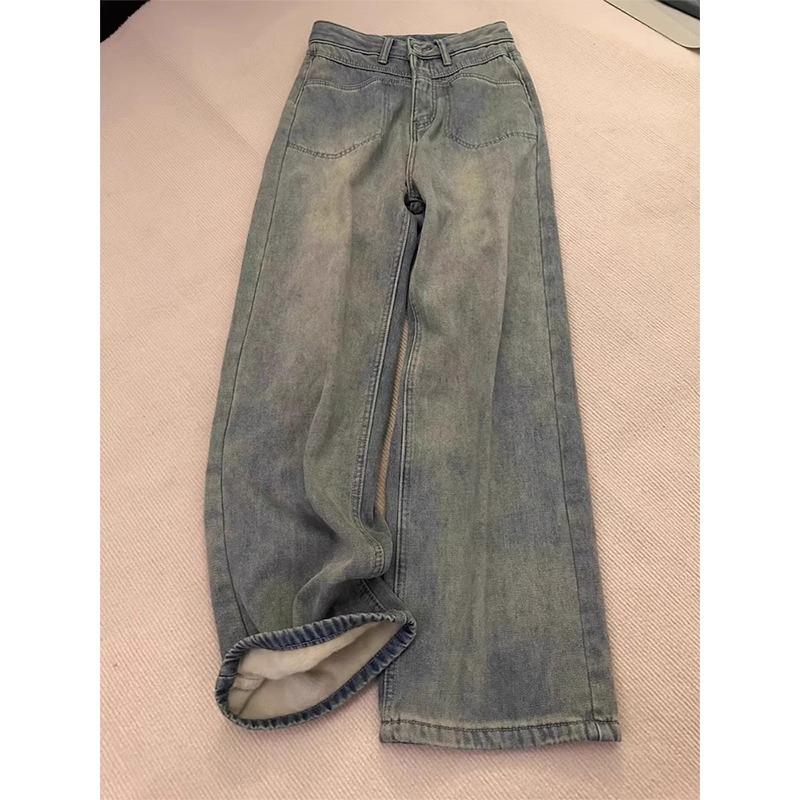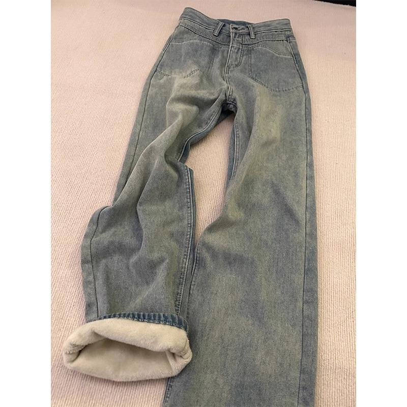 Jeans Rectos de Terciopelo Retro Americano de Talla Grande para Mujer 2024 Nuevo Otoño e Invierno mm Gorditos Pierna Ancha Estrecha Pantalones Largos