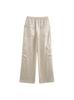 Otoño 2024 Nuevo estilo europeo y americano, elegante diseño combinable, pantalones casuales de trabajo de satén plisado con bolsillos grandes