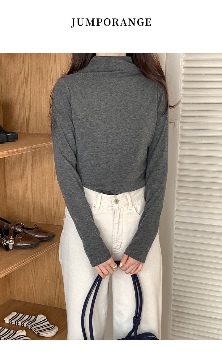 Cuello Medio Alto con Camiseta Interior de Terciopelo para Mujer Invierno 2024 Nuevo Estilo Coreano Ajustado y Versátil Top Jersey de Manga Larga