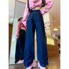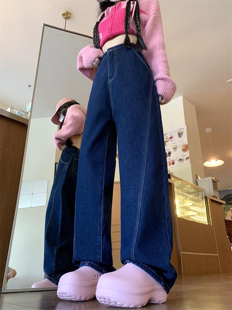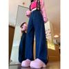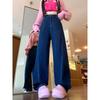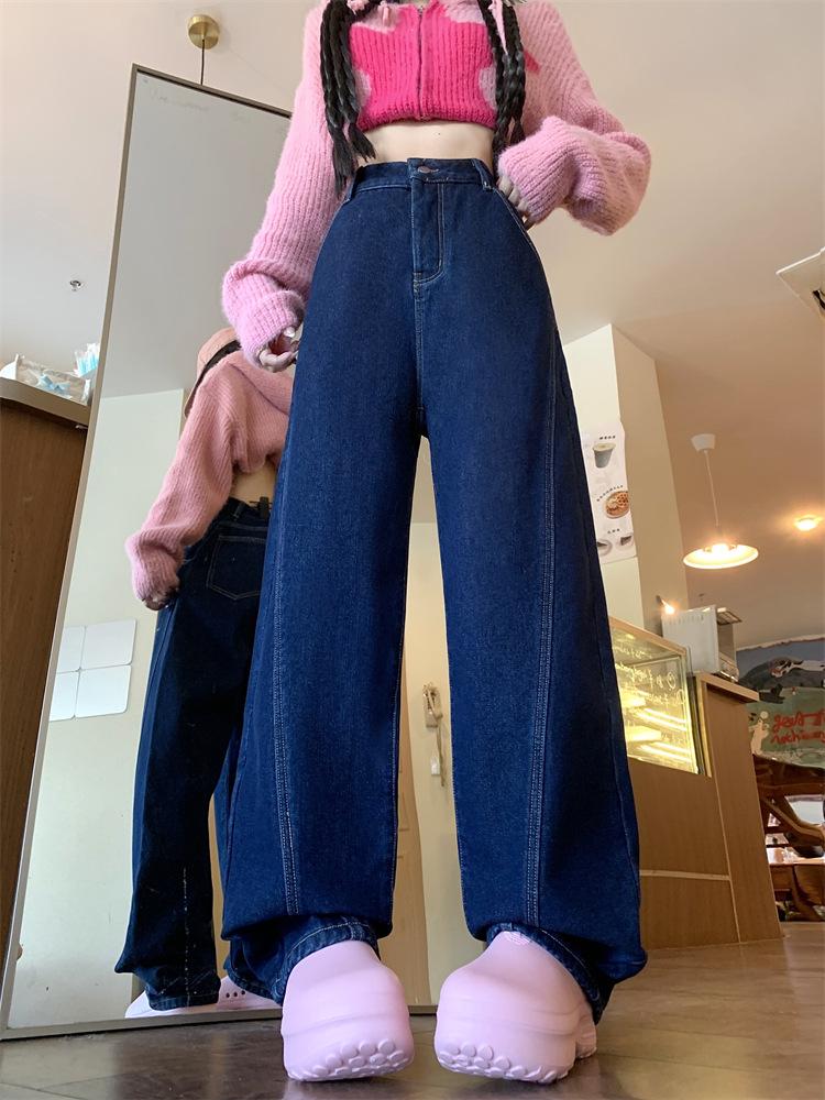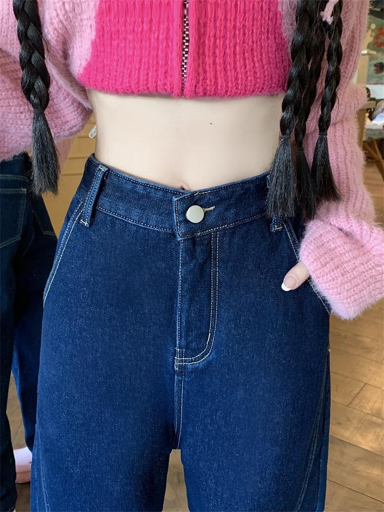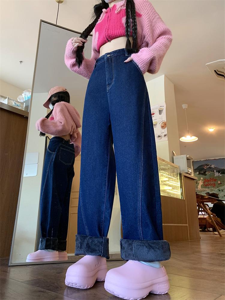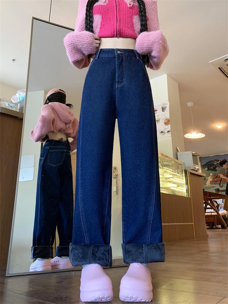 Pantalones vaqueros de pierna ancha con forro polar para mujer, otoño e invierno, nuevos, de talla grande, con forma de pera, cintura alta, sueltos, adelgazantes, tipo machete, plátano.