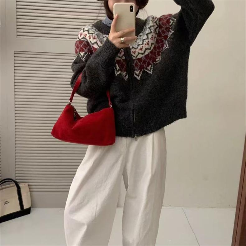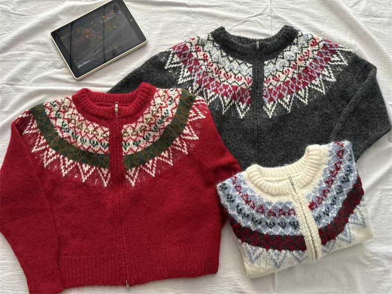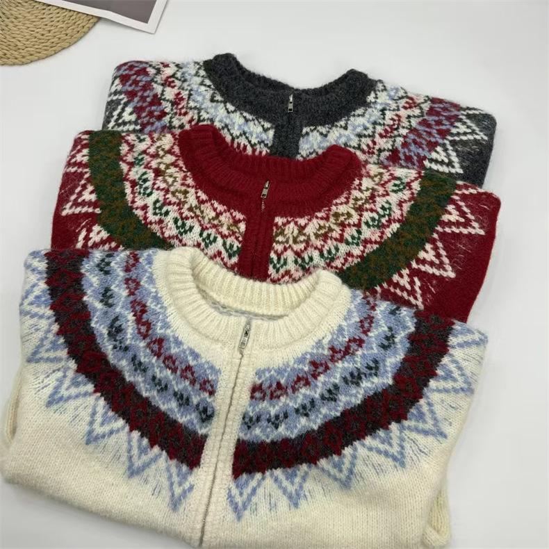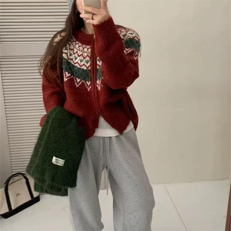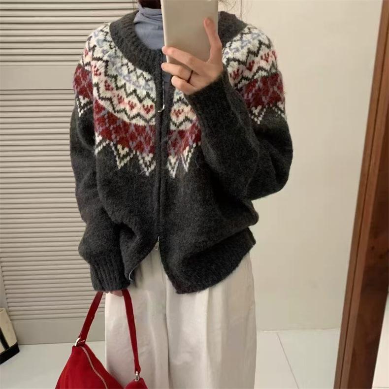 Cárdigan de punto con cremallera retro gruesa de estilo coreano para mujer, suéter artístico Fairisland, abrigo para mujer, invierno 2024