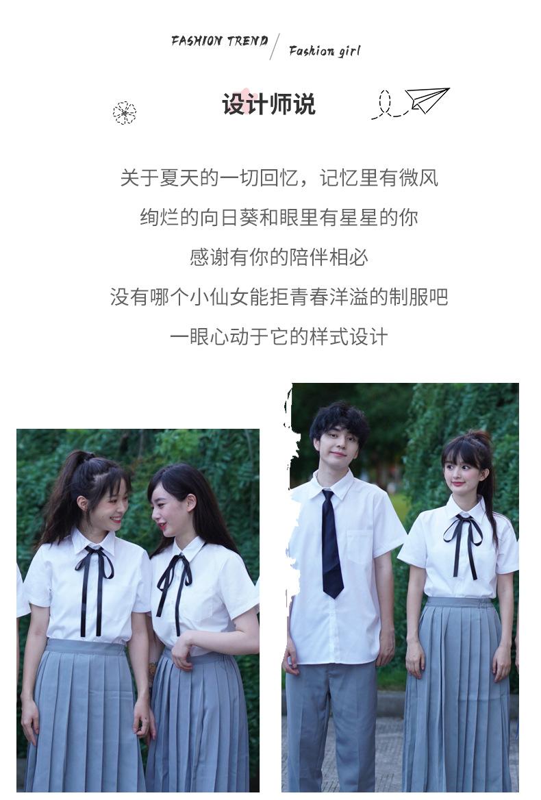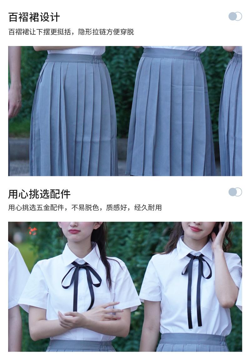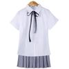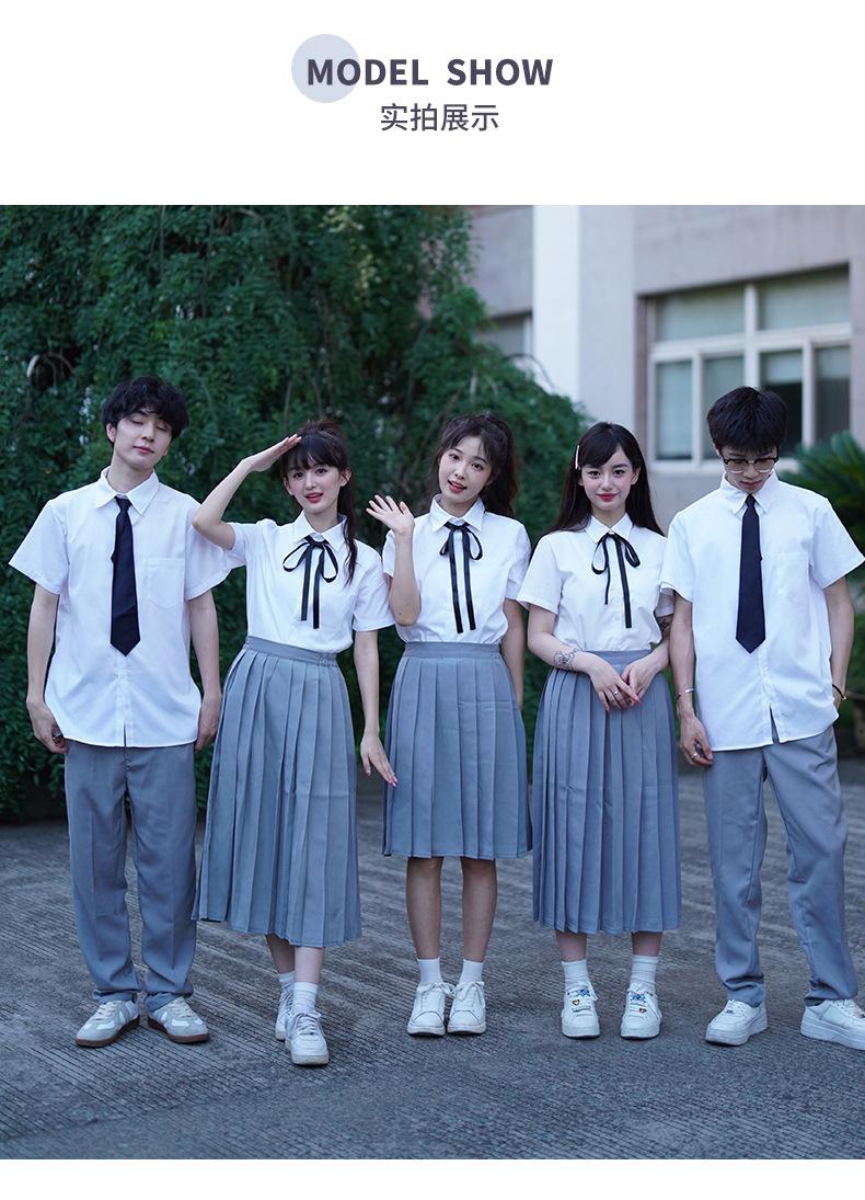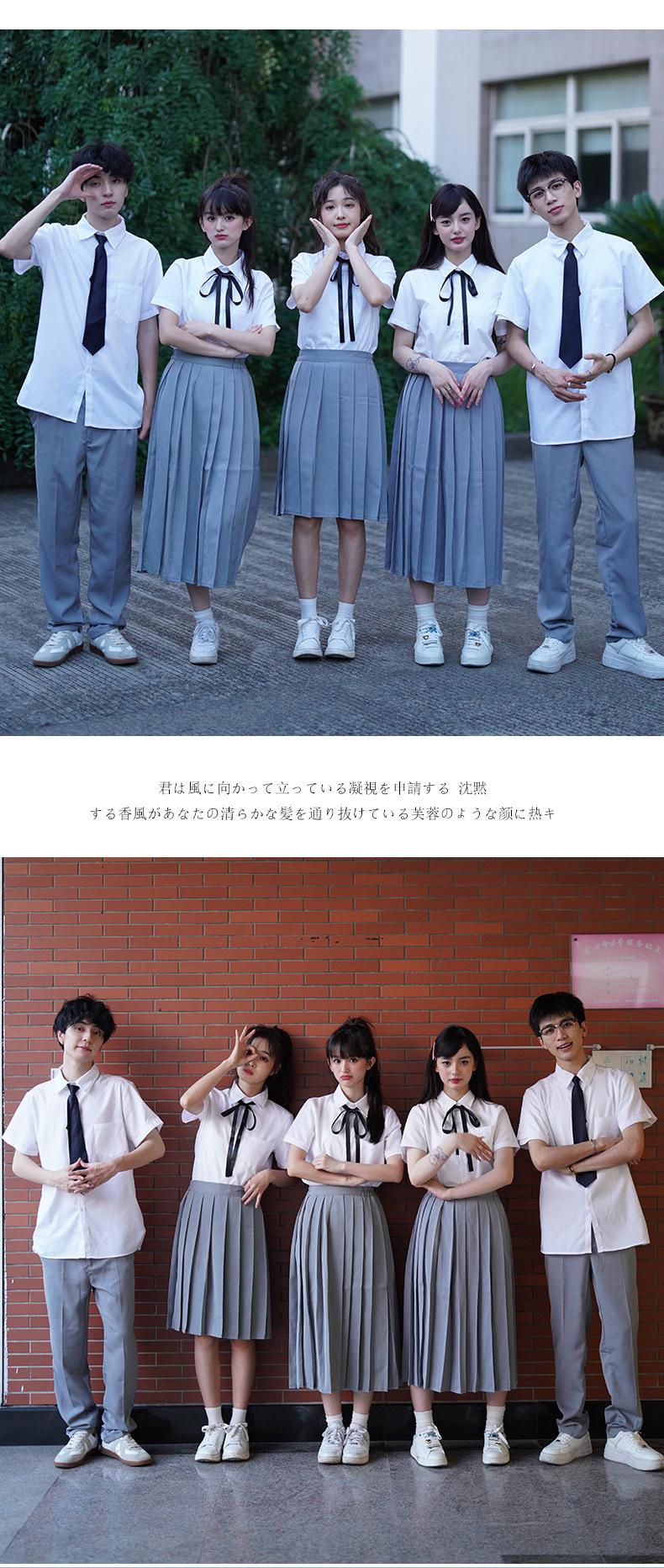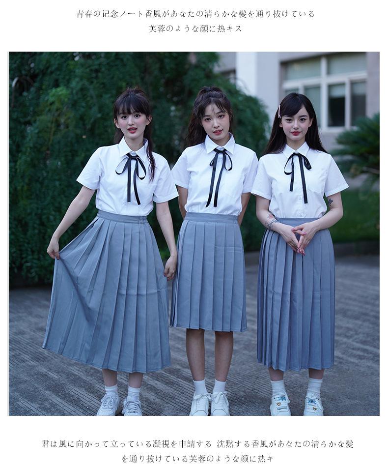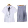 Girl's Short-sleeved Shirt Gray Short Skirt Ribbon, Girl's Short-sleeved Shirt Gray Midi Skirt Ribbon, Girls S...
