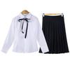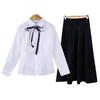 Girl's Long Sleeve Shirt Black Long Skirt Ribbon
