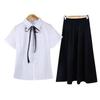 Girls Short-sleeved Shirt Black Skirt Ribbon
