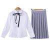 Girl's Long Sleeve Shirt Gray Short Skirt Ribbon