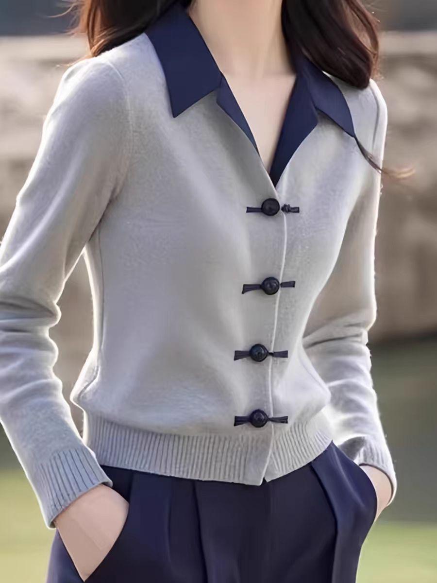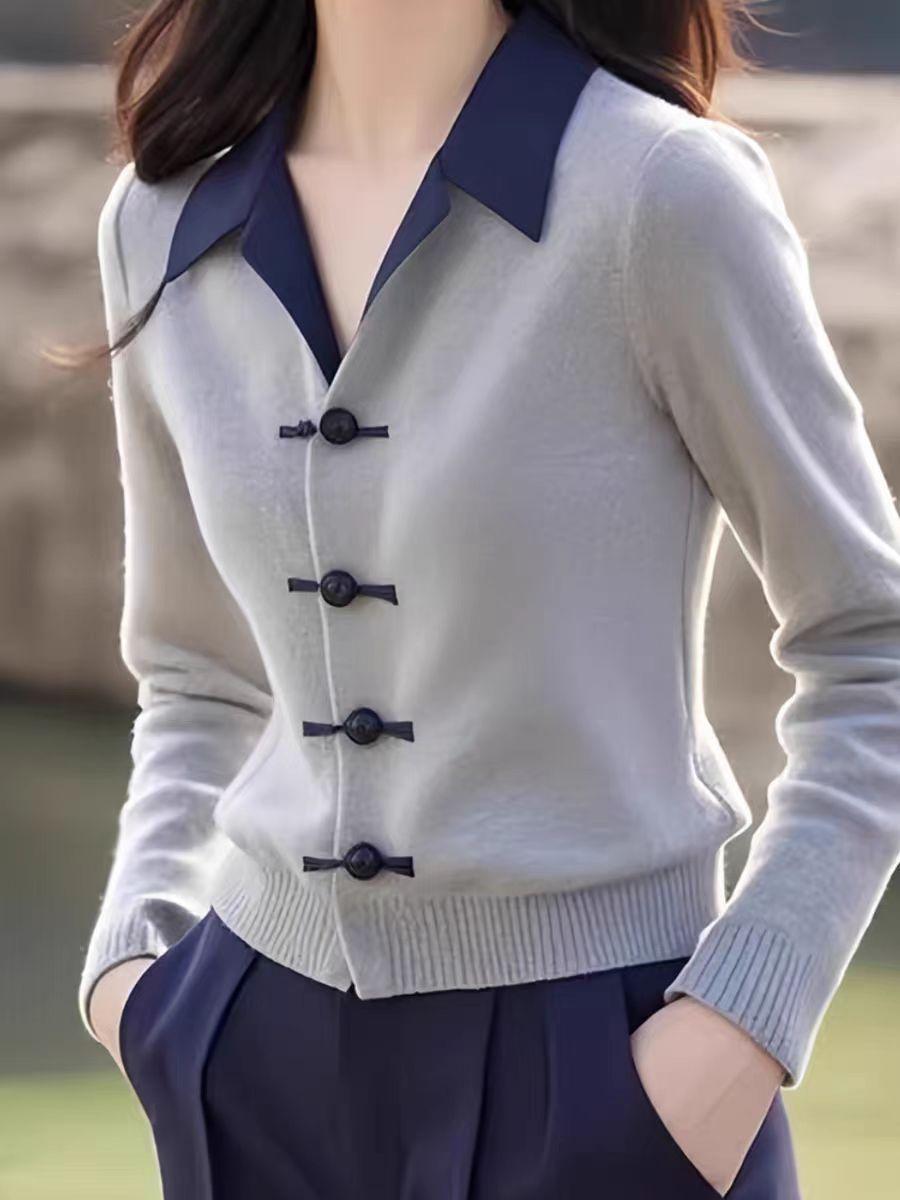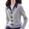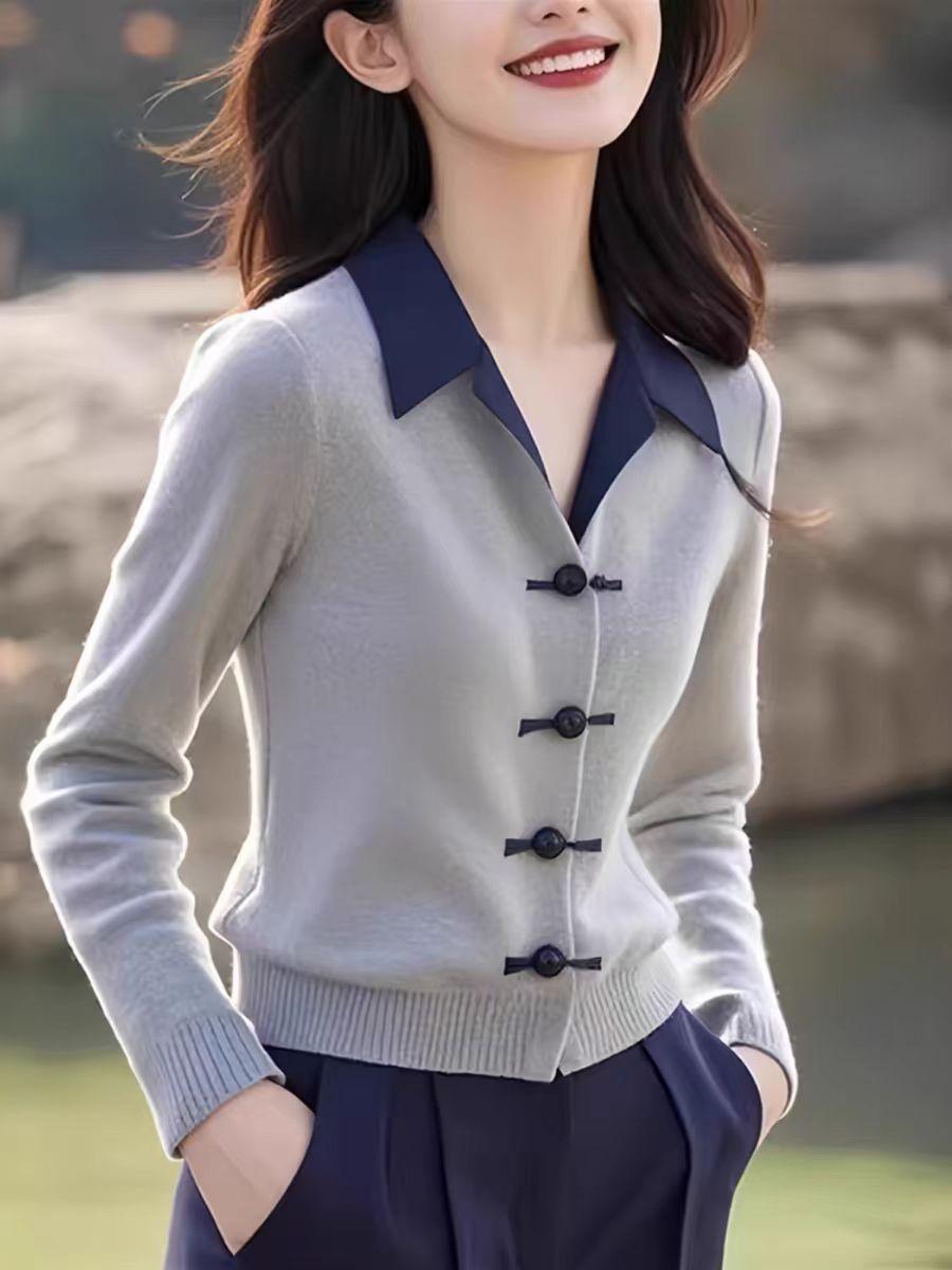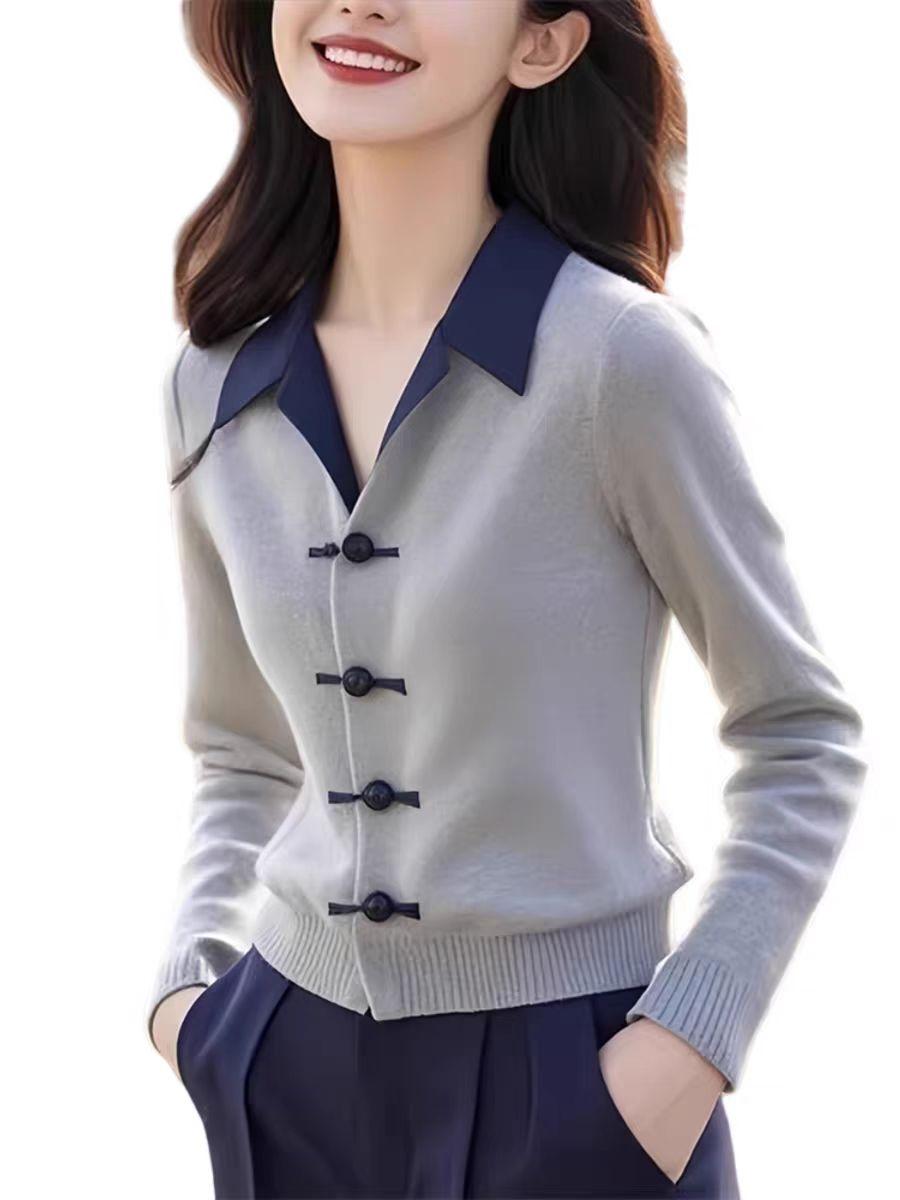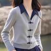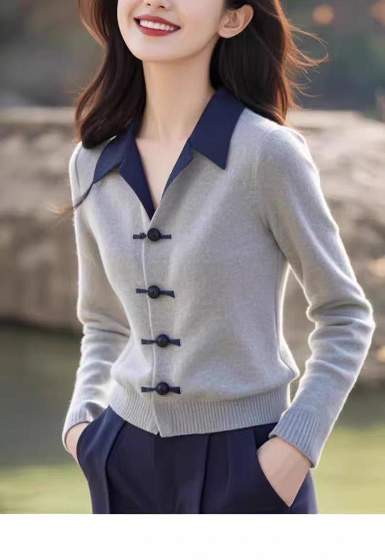 Compra Suéter cárdigan de punto con solapa y costuras grises de estilo nacional chino para mujer, otoño e invierno 2024, nuevo estilo Sense Top al por mayor en Joom.pro