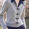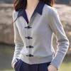 Suéter cárdigan de punto con solapa y costuras grises de estilo nacional chino para mujer, otoño e invierno 2024, nuevo estilo Sense Top