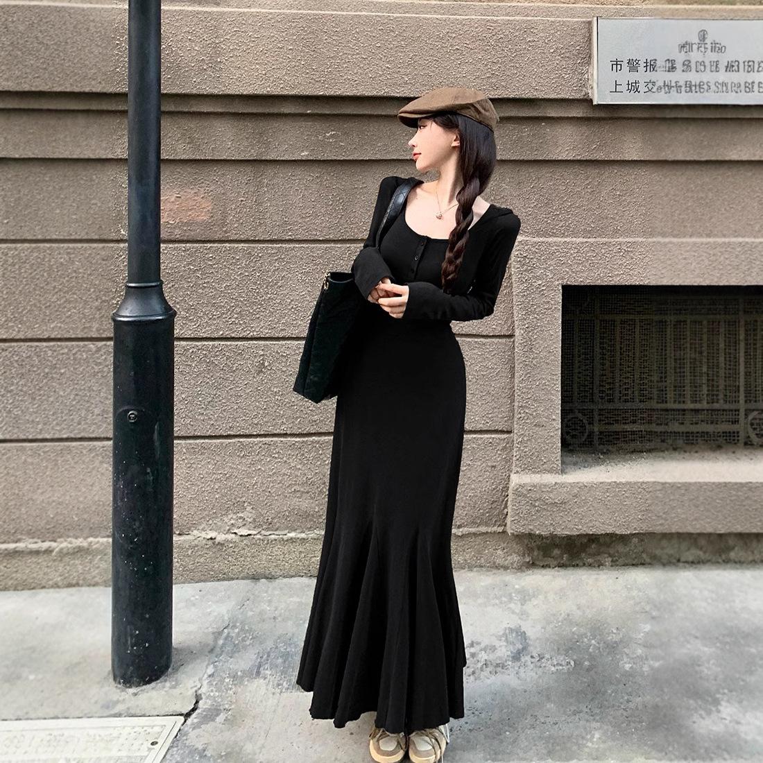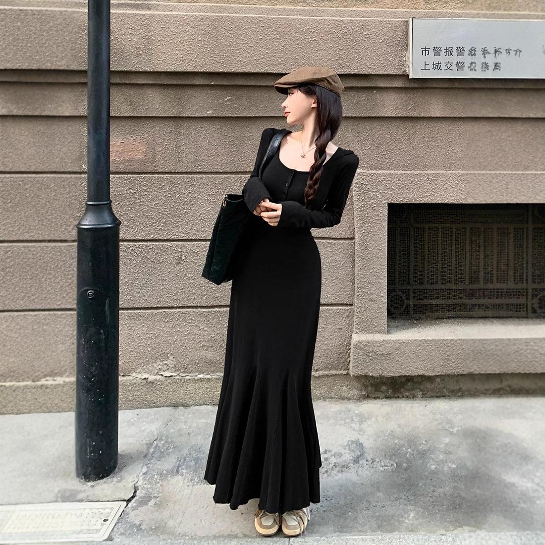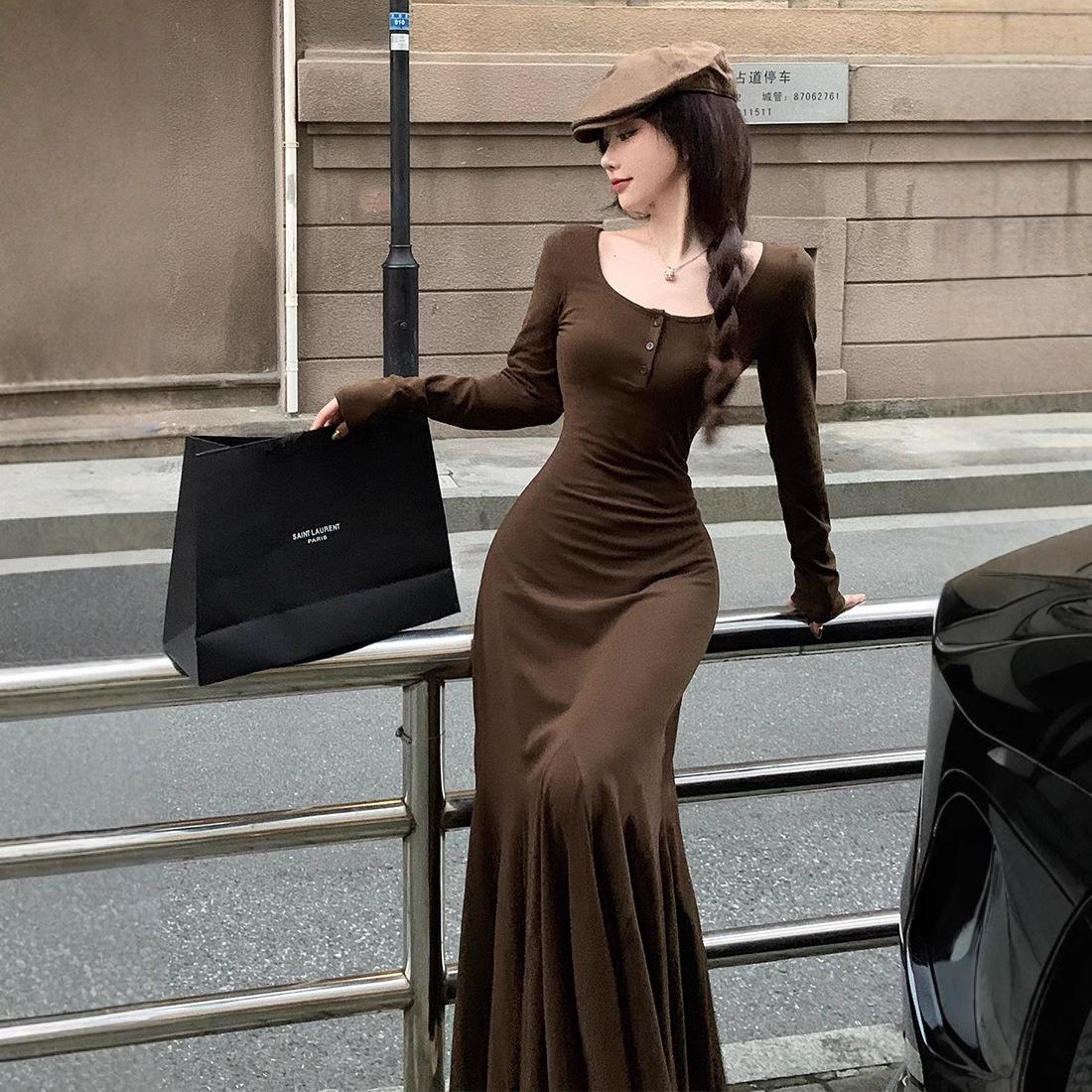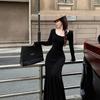 Vestido elegante de estilo francés para mujer, otoño e invierno, Pure Desire Yujie, cintura ajustada, base adelgazante, falda larga de cola de pez.