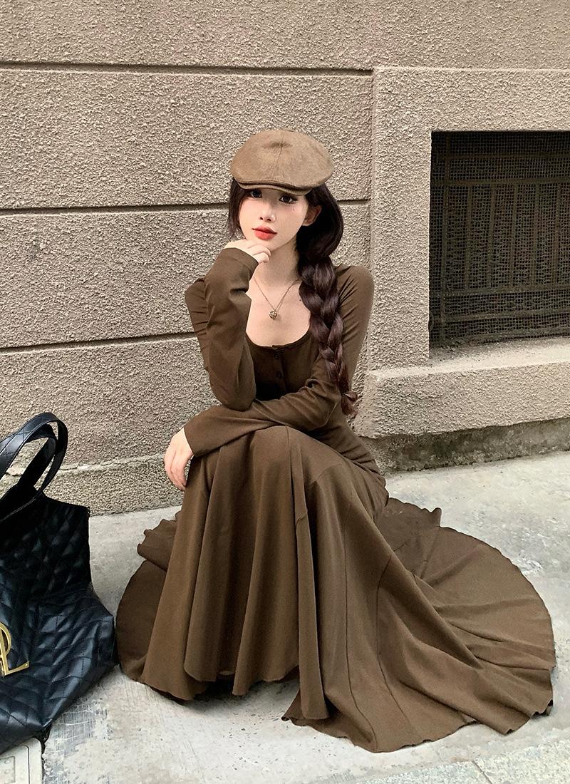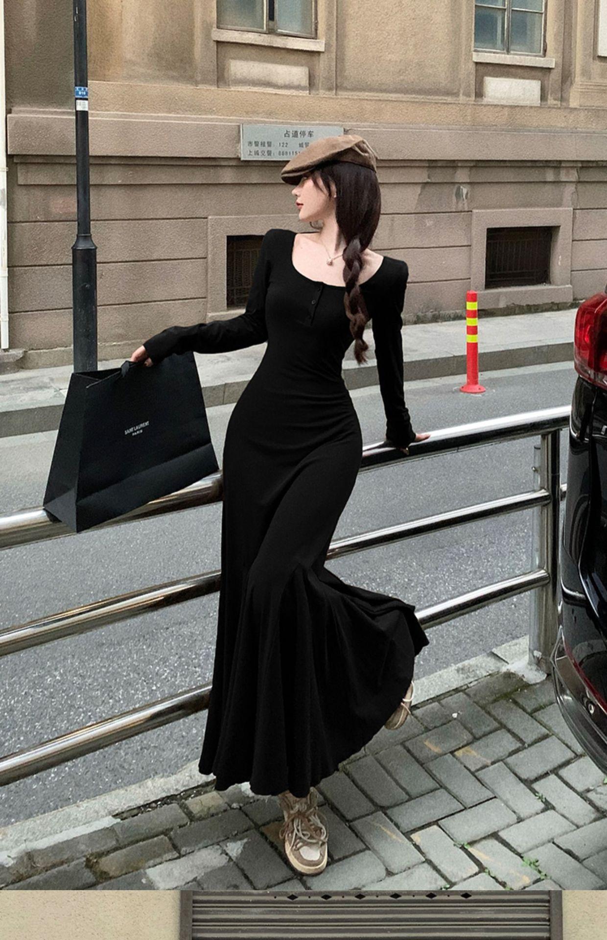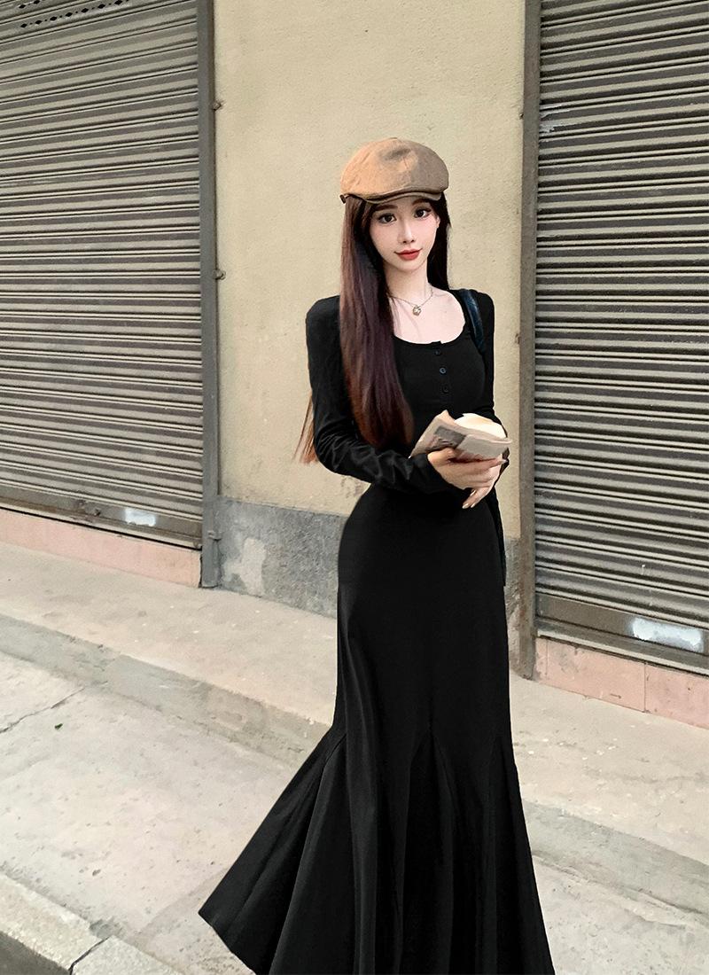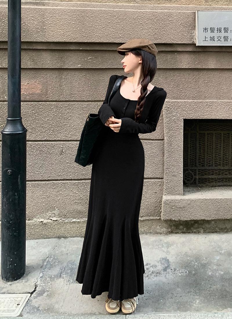Vestido elegante de estilo francés para mujer, otoño e invierno, Pure Desire Yujie, cintura ajustada, base adelgazante, falda larga de cola de pez.
