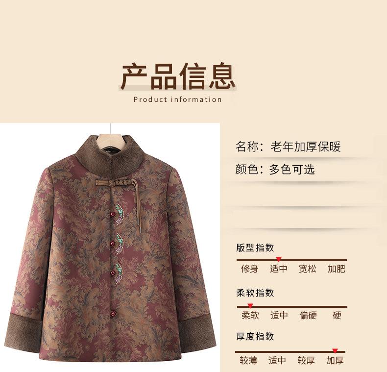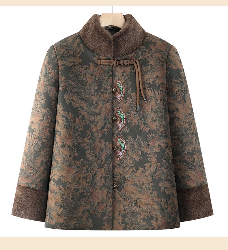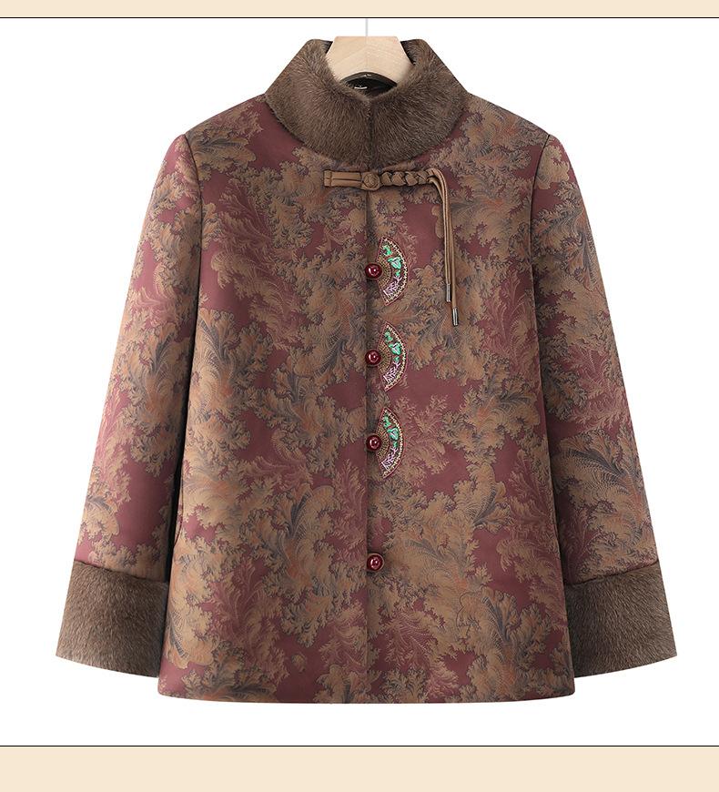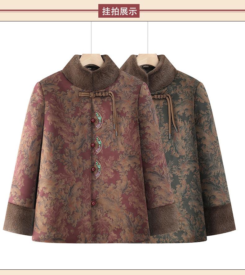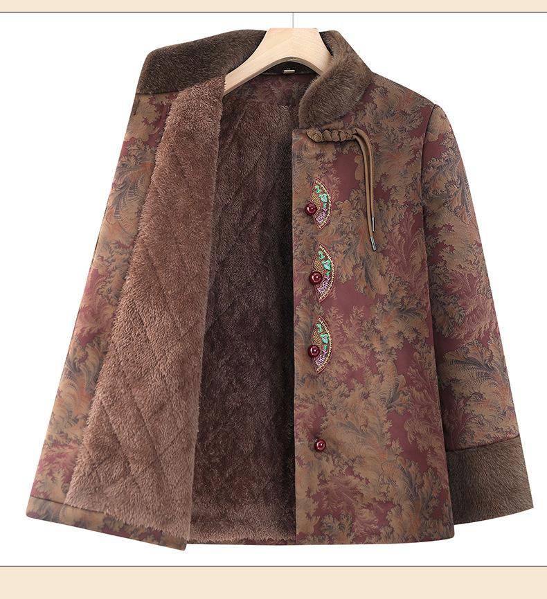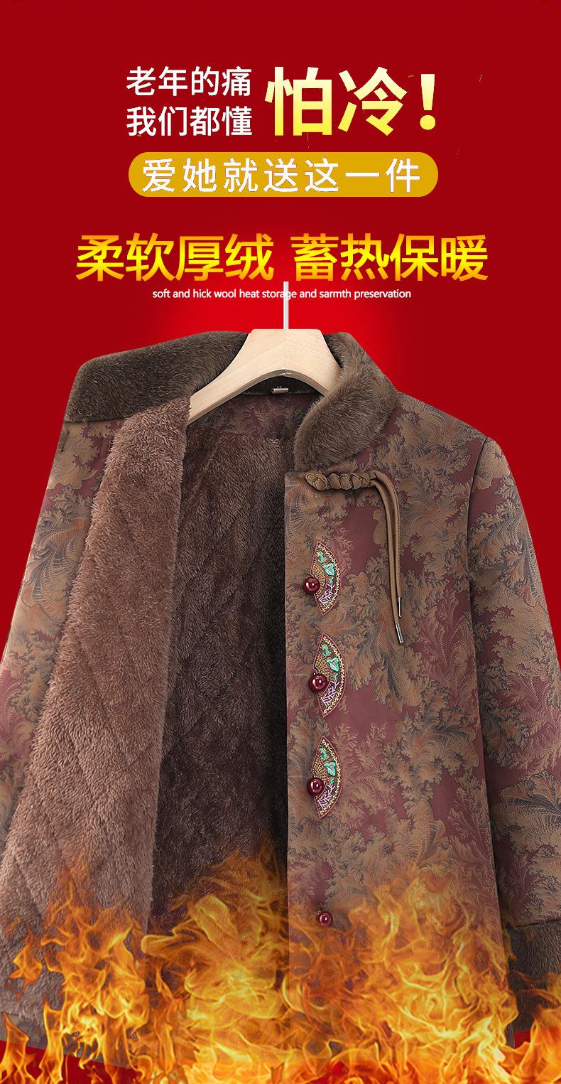 Abrigo de moda para madres de mediana edad y ancianas, abrigo de algodón acolchado de invierno para ancianas, abrigo de abuela de otoño e invierno con forro polar grueso de estilo extranjero