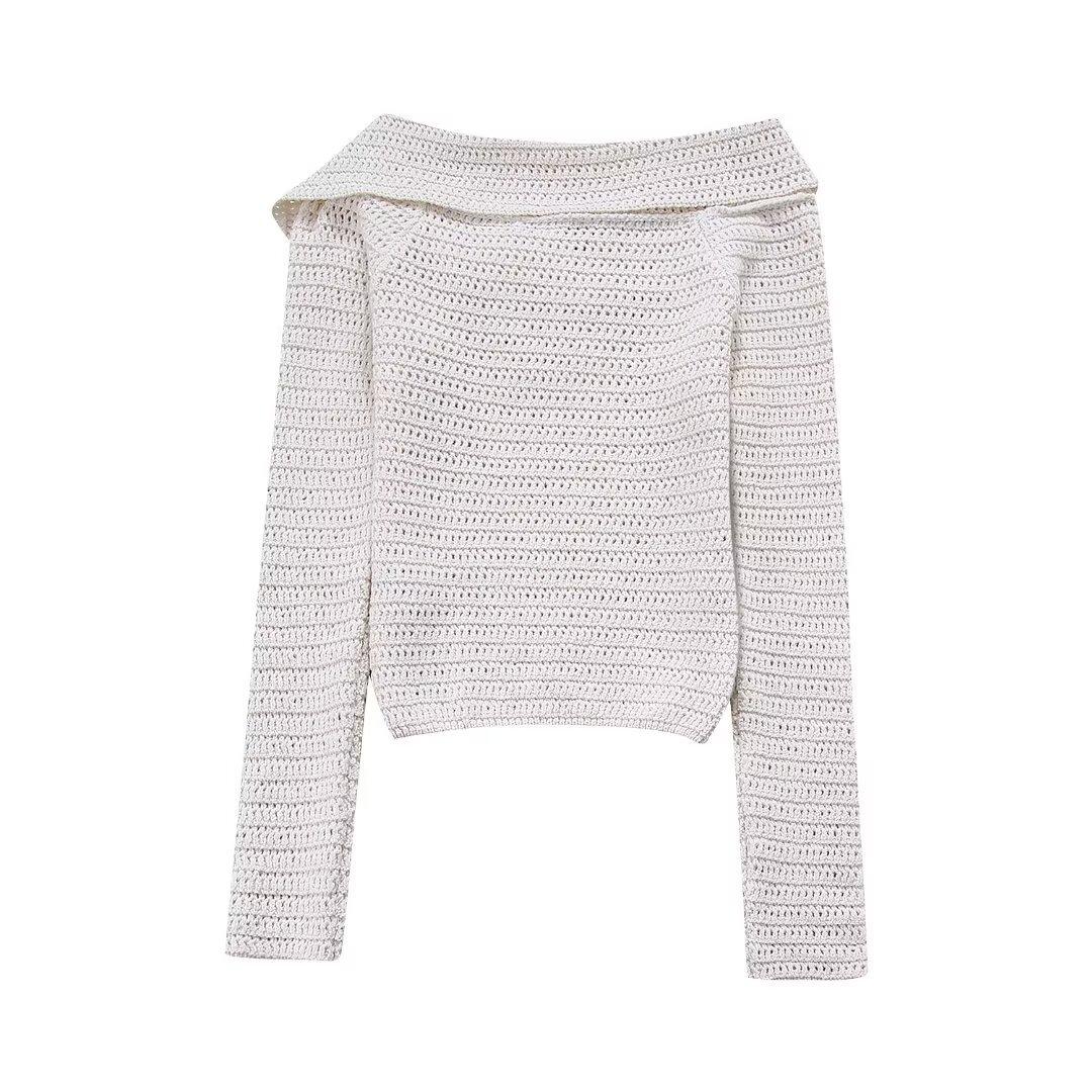 Suéter sexy con hombros descubiertos, estilo europeo y americano, nueva moda de otoño 2024, color sólido, estilo festivo, diseño de top fino