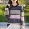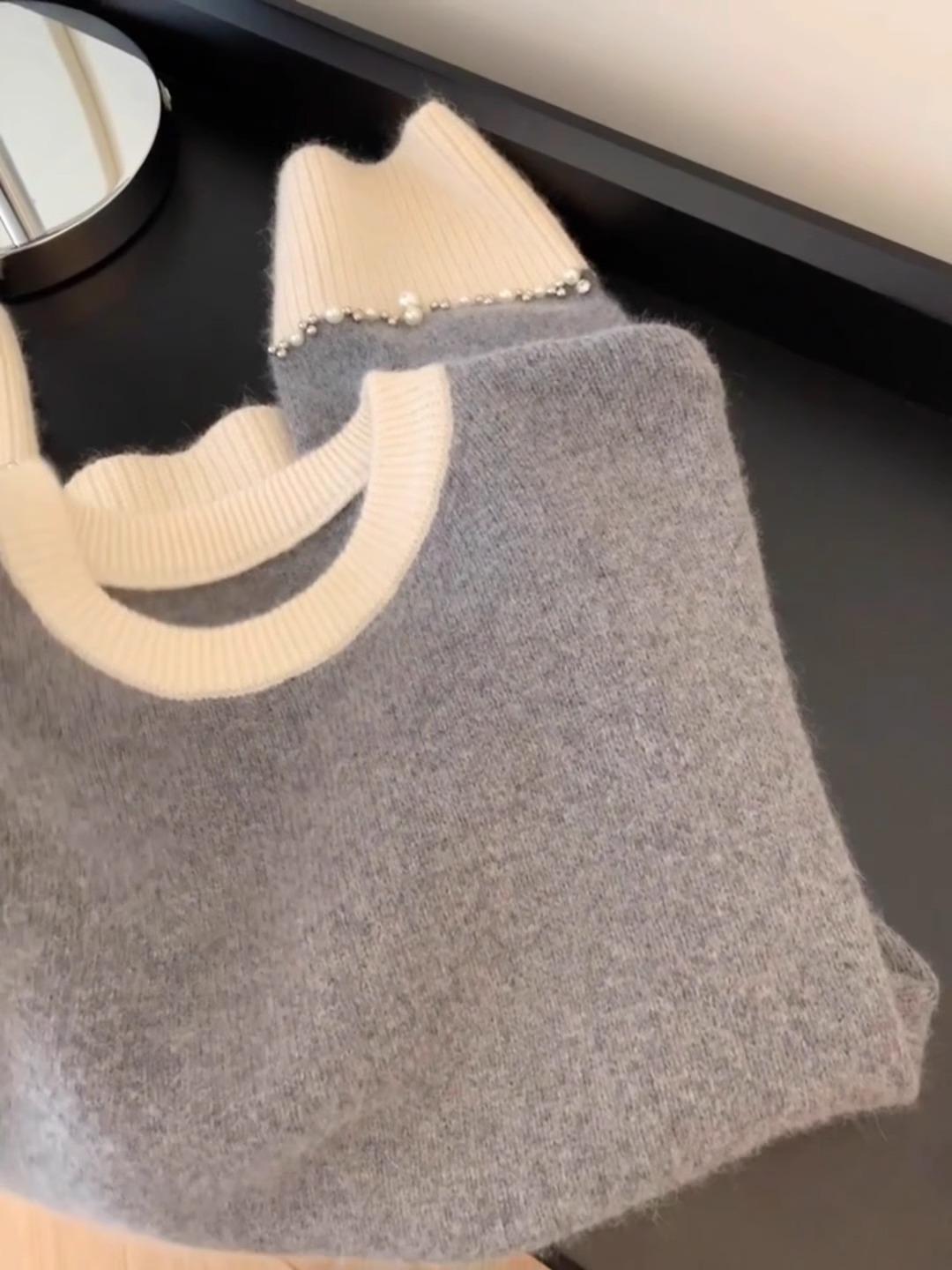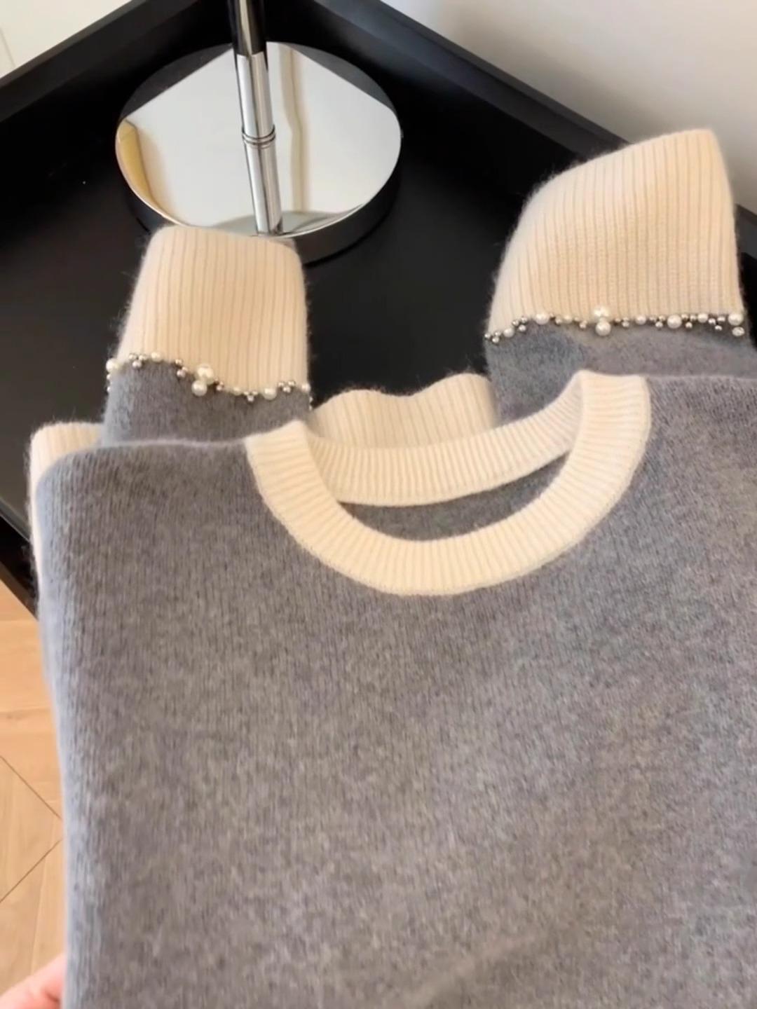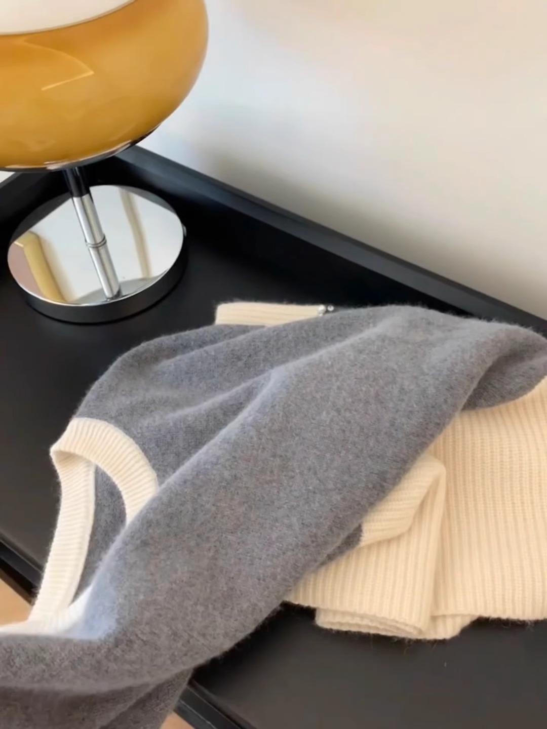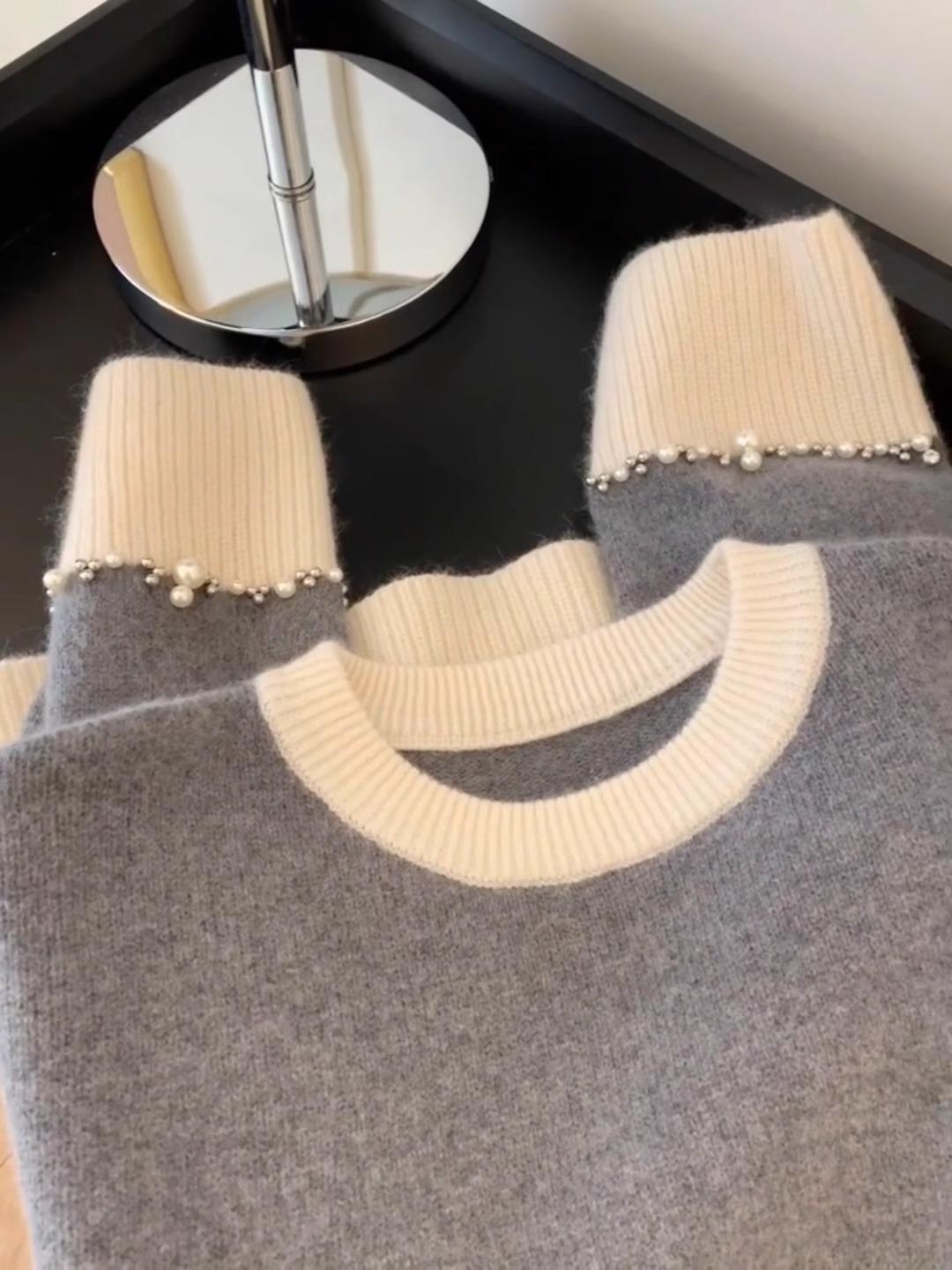 ¡¡¡Foto oficial!!! Suéter holgado de estilo perezoso con combinación de colores para mujer, diseño nicho para otoño e invierno, puños con cuentas, estilo francés