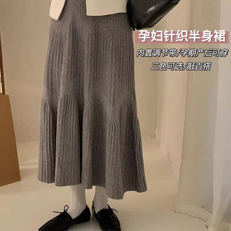 Falda de mujer embarazada nueva de otoño e invierno de 2024, falda de punto de talla grande, versión coreana japonesa de fabricantes de faldas largas para embarazadas.