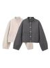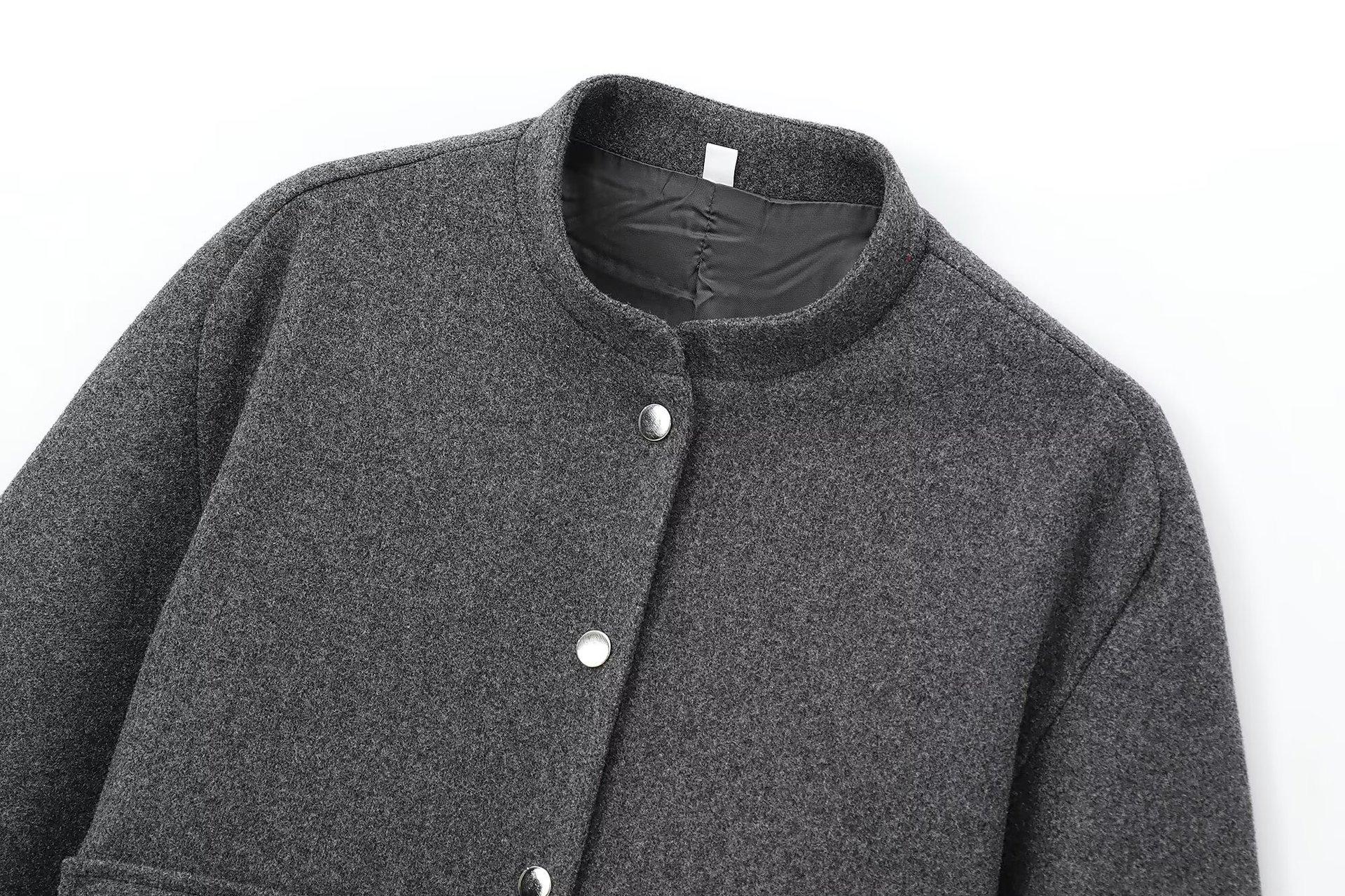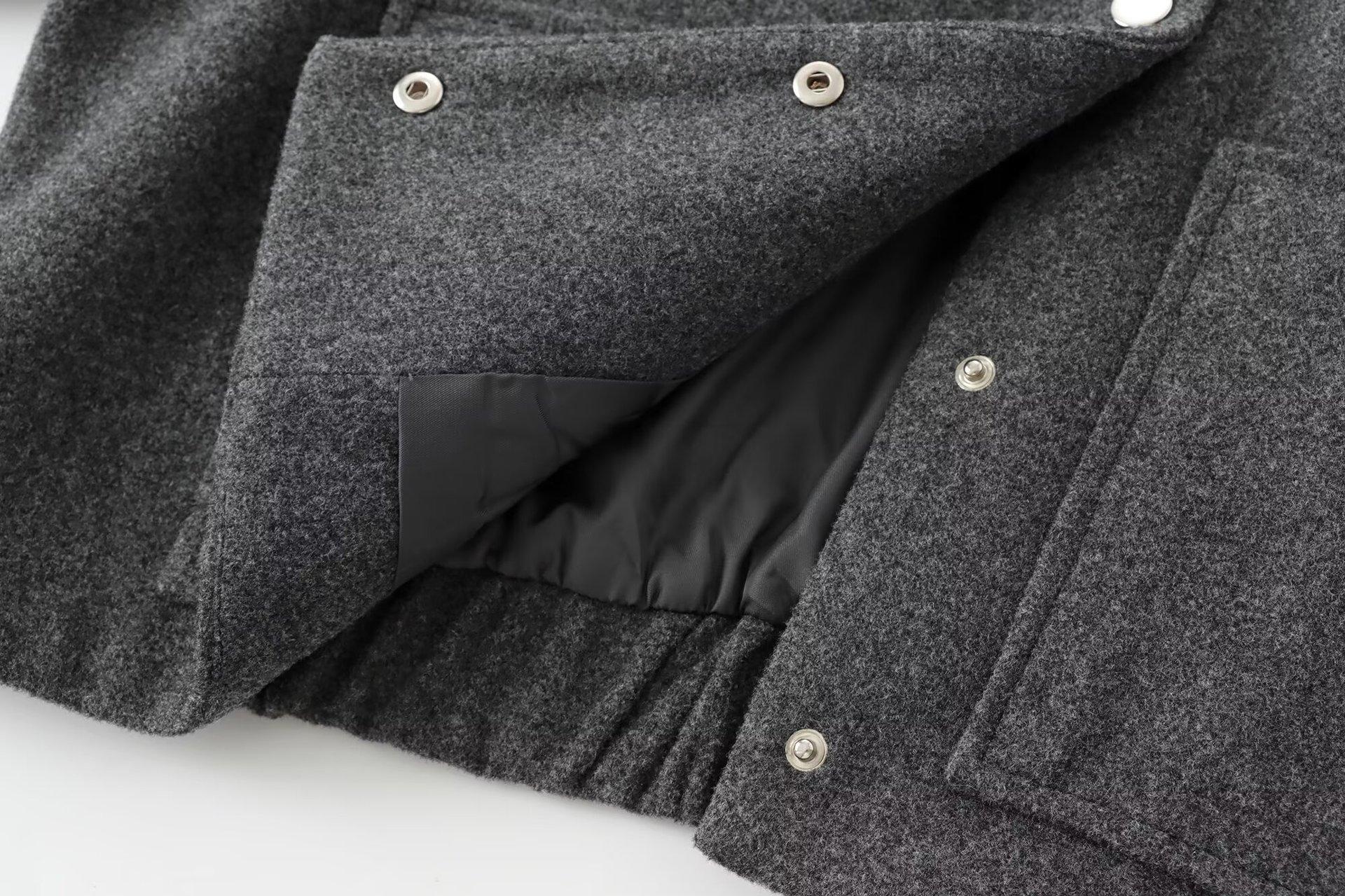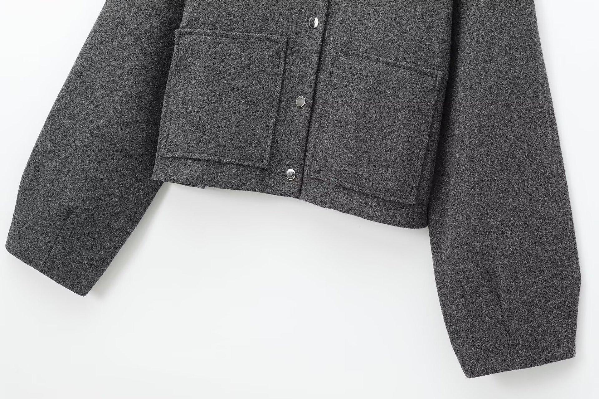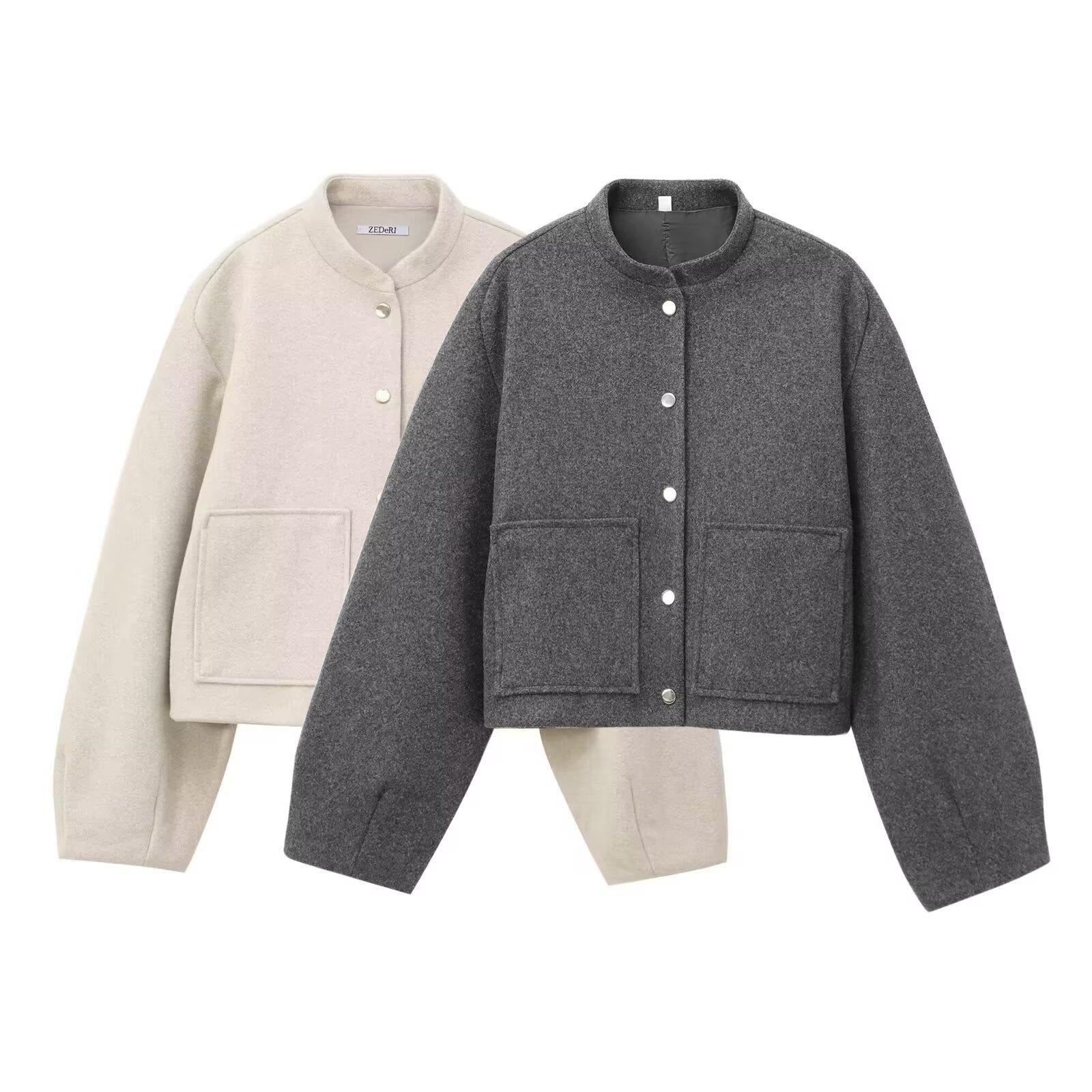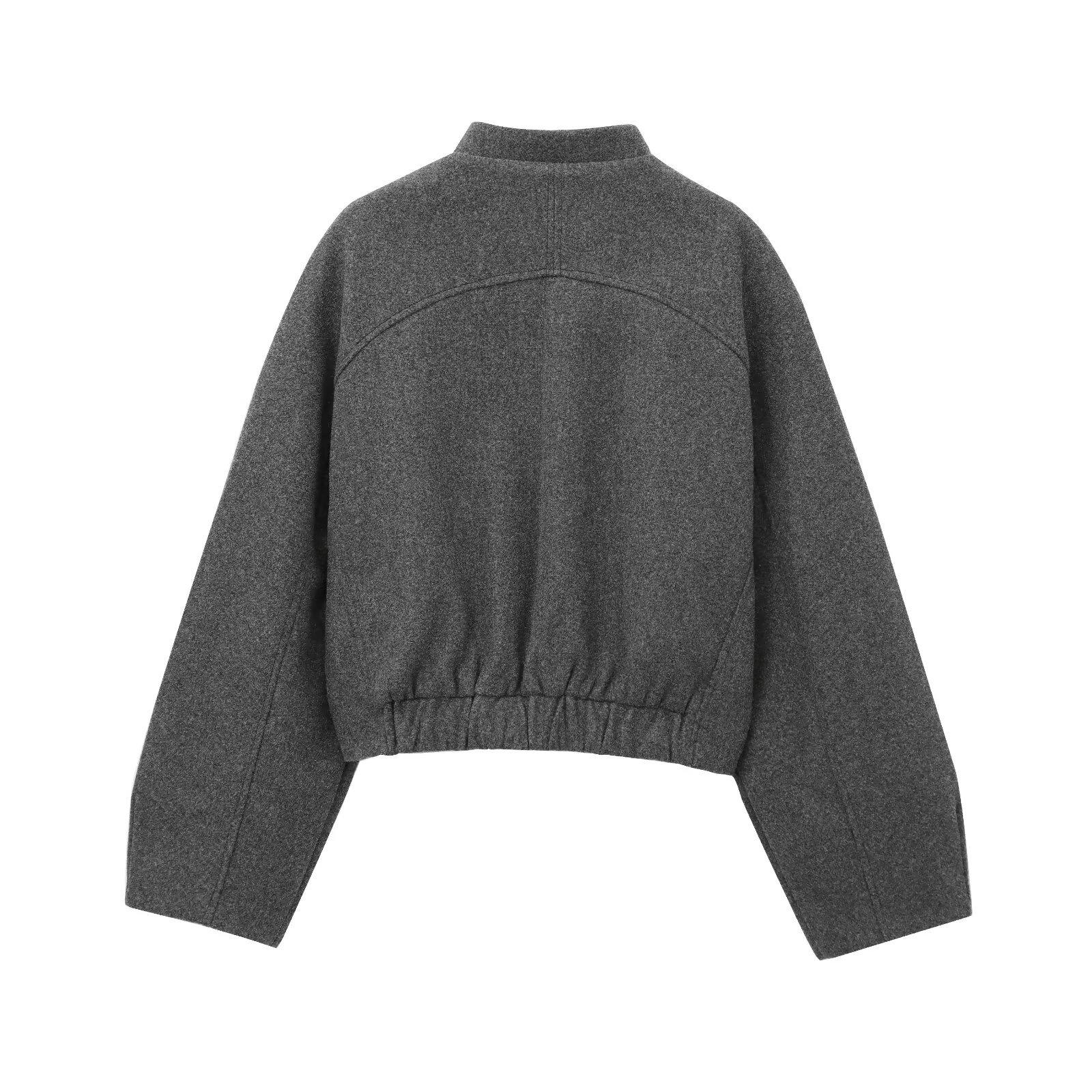 Chaqueta de aviador de manga larga con bolsillo y cuello vertical, cruzada, para mujer europea y americana, otoño e invierno 2024