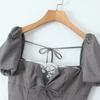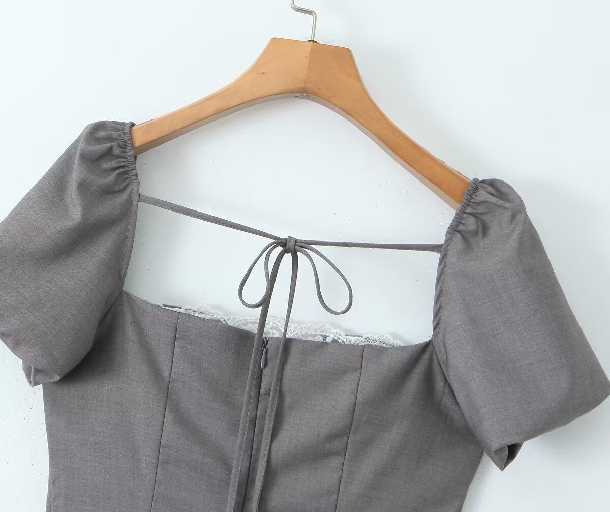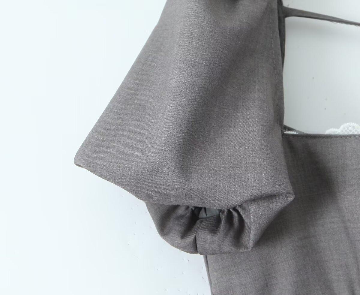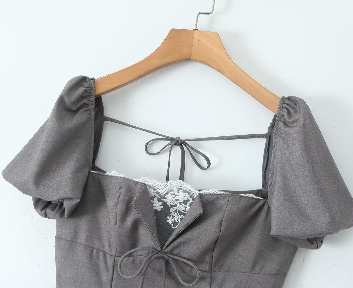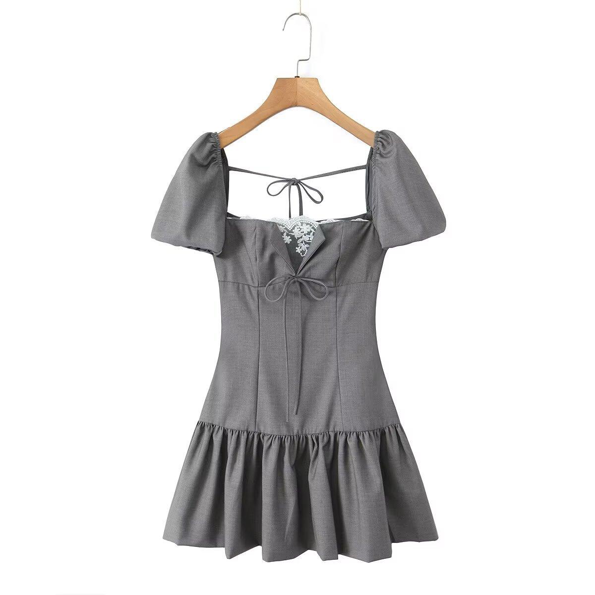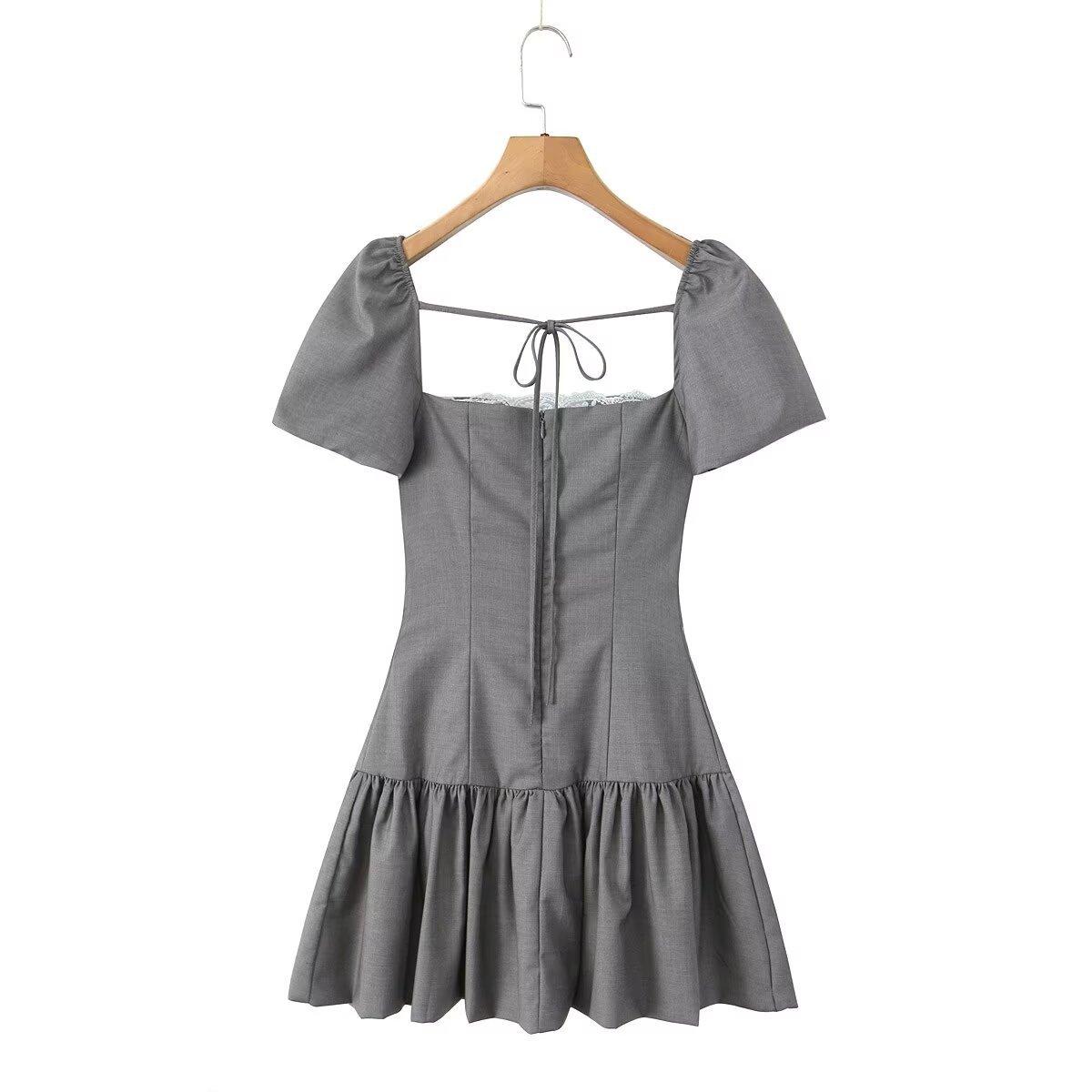 Vestido estilo capullo de encaje con escote cuadrado y cintura alta, estilo retro francés, para niña, invierno, 8014-24
