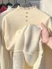 Invierno Cálido con forro polar Espesado Medio Cuello Alto Color Sólido Combinable Camiseta Base Tejida para Mujer Estilo Coreano Elegante Suéter Ajustado a la Moda