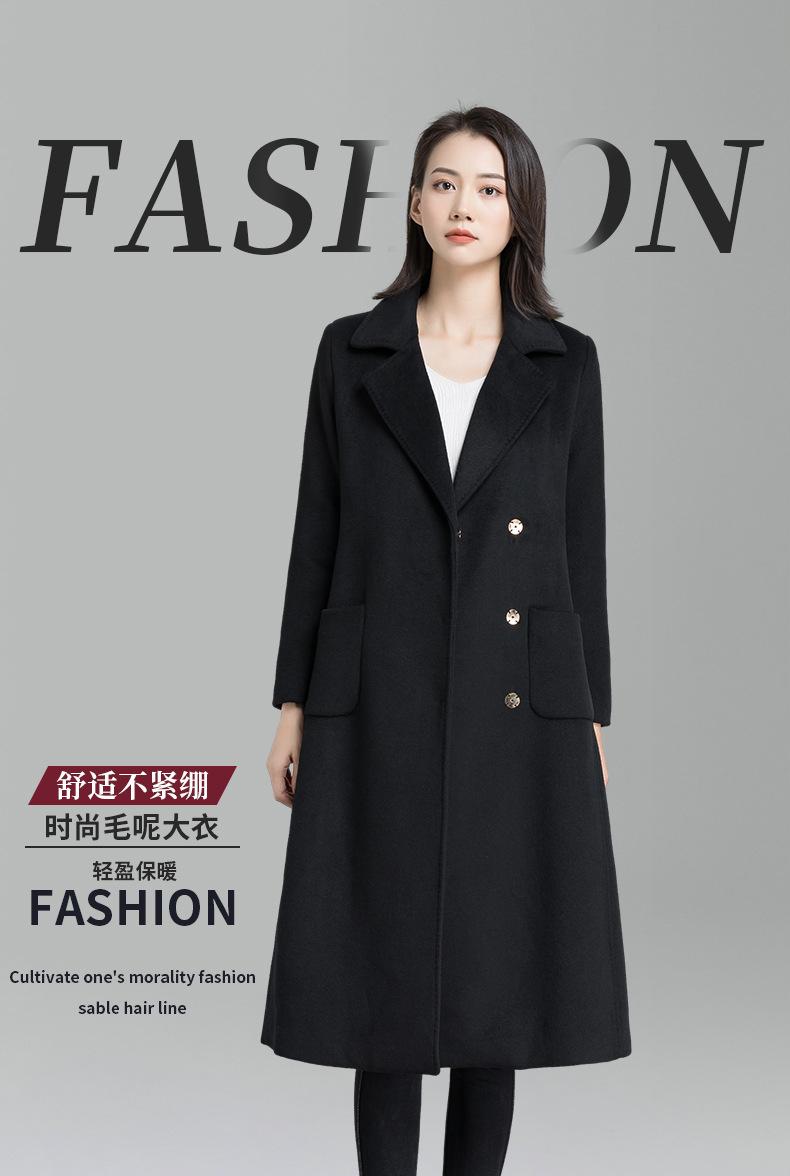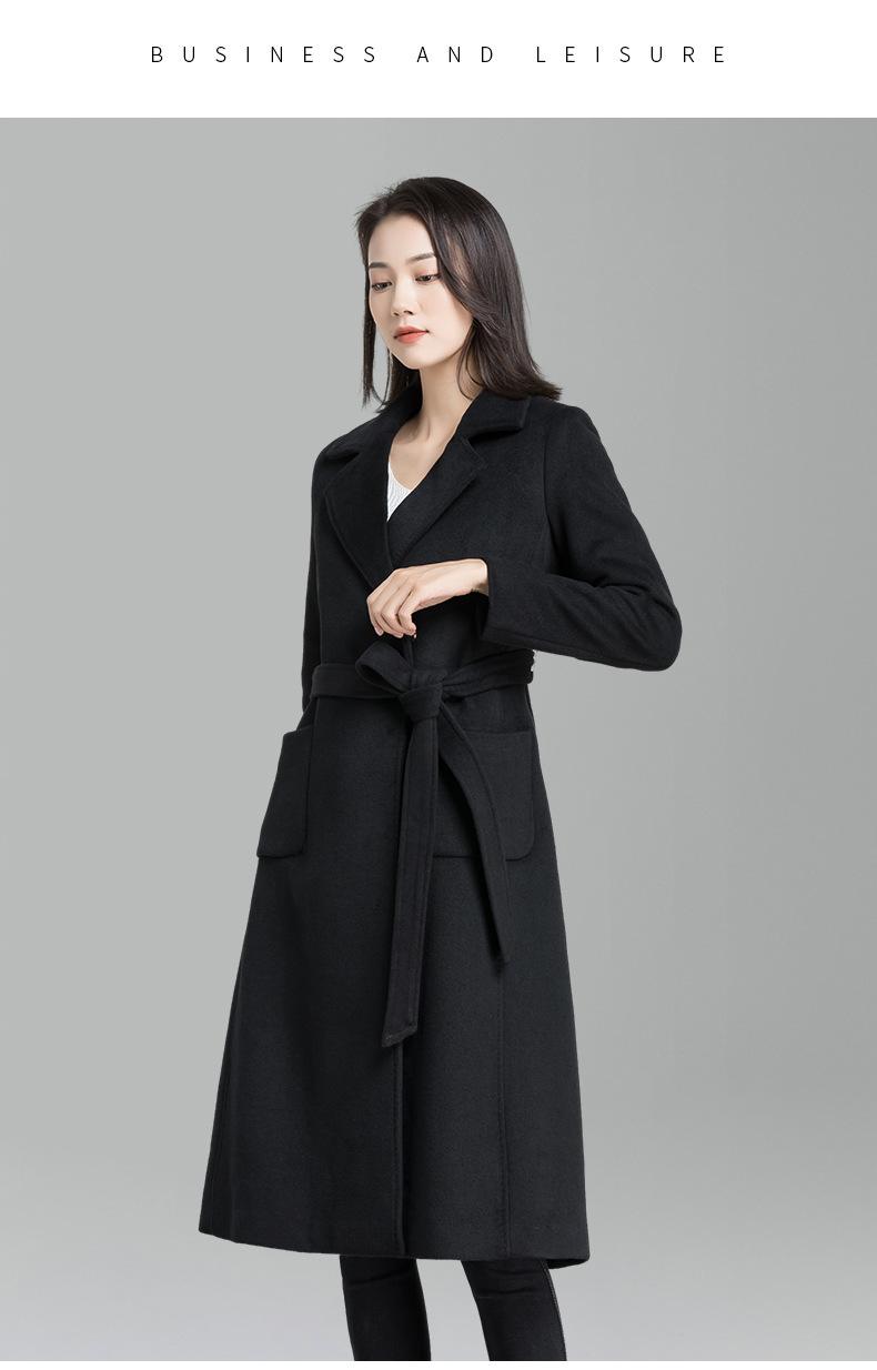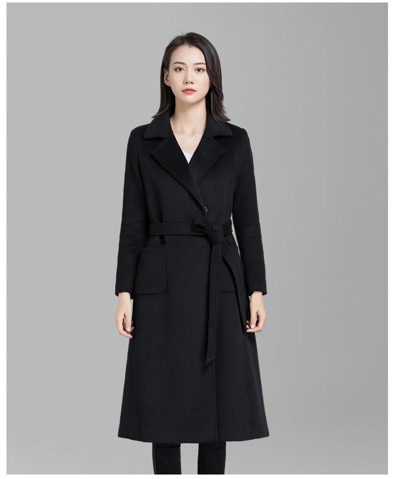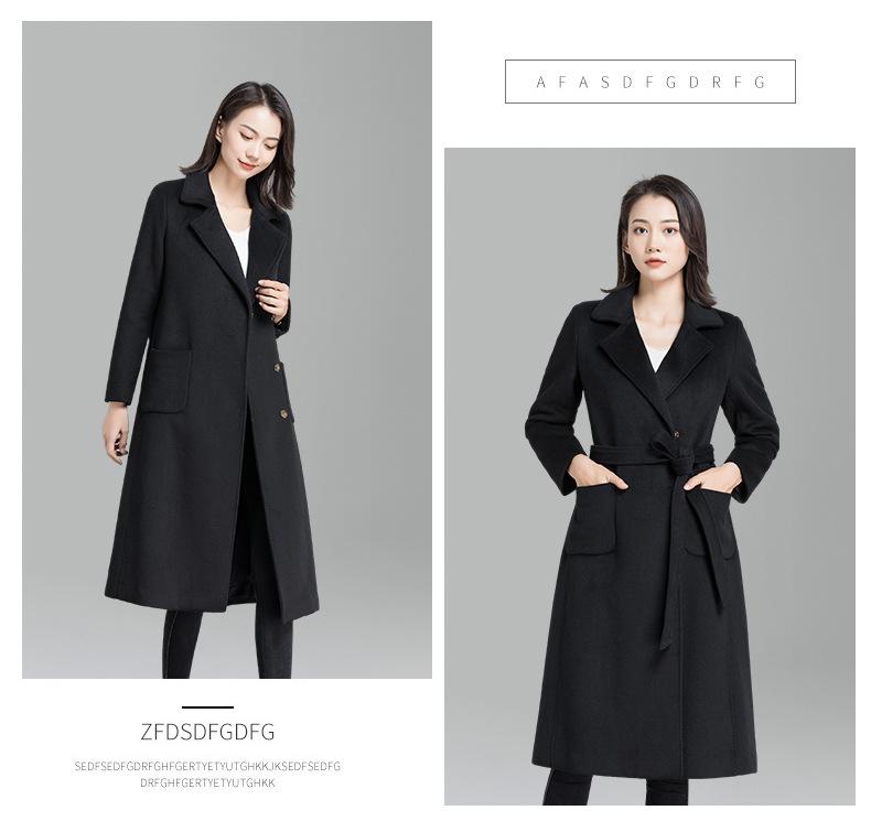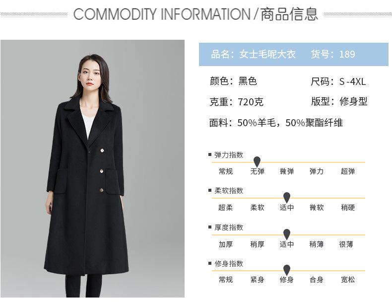 Ropa de trabajo de otoño e invierno, abrigo de lana de moda, elegante abrigo de lana para mujer, abrigo largo ajustado de longitud media