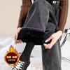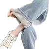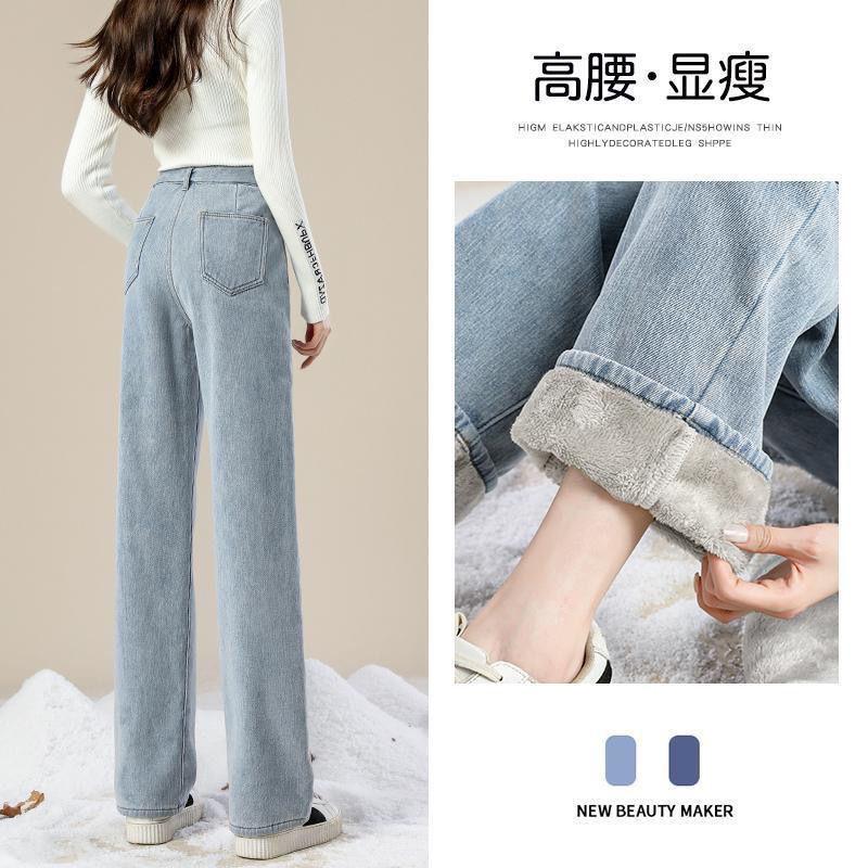 Jeans Rectos de Invierno Gruesos con Forro Polar Blanco para Mujer, Pantalones Anchos Sueltos Cálidos y a la Moda para Estudiantes