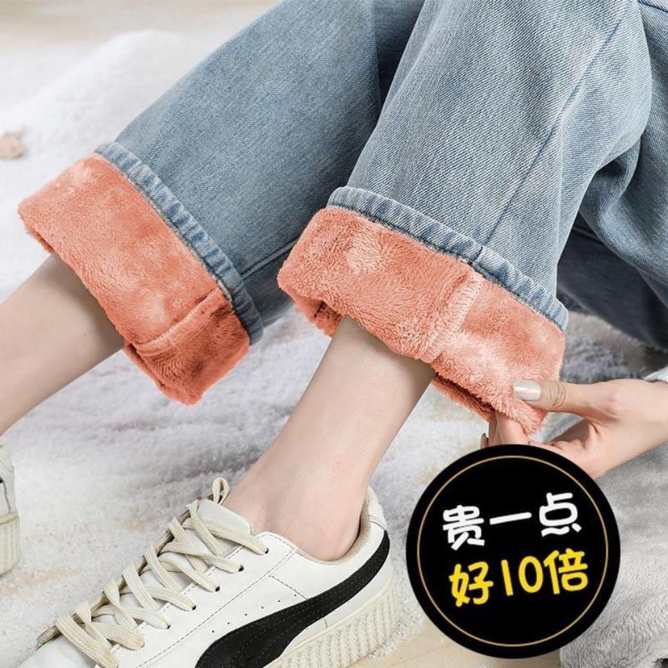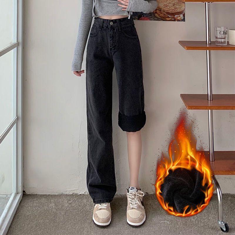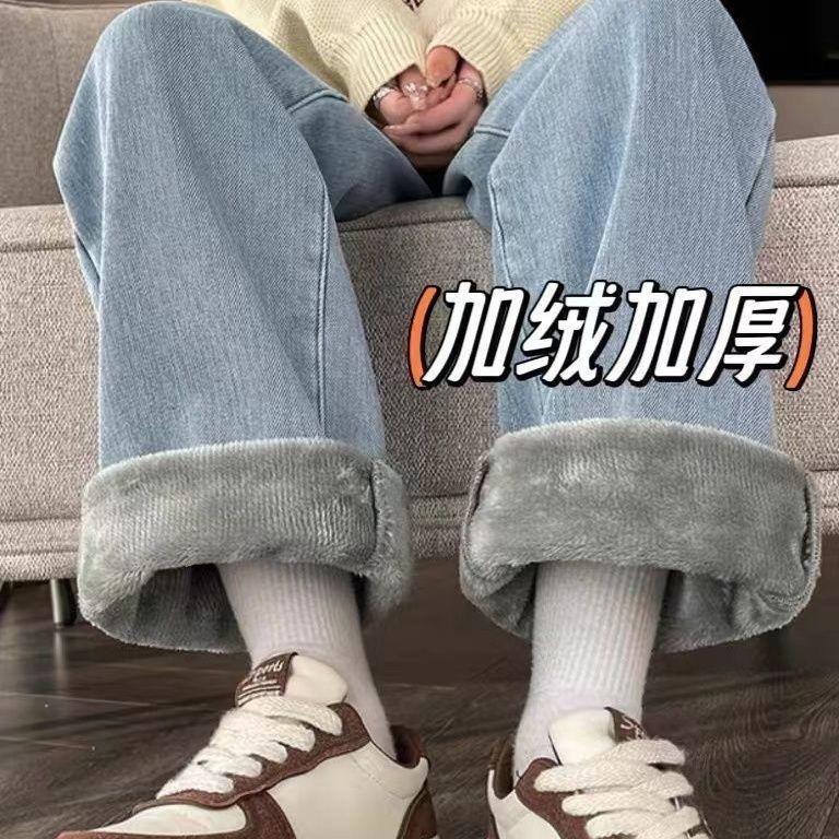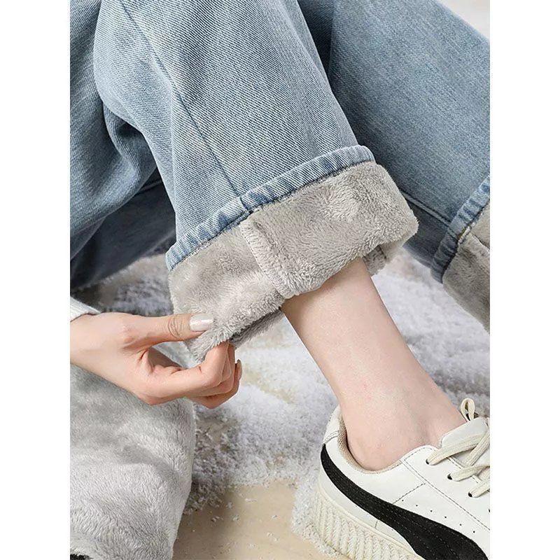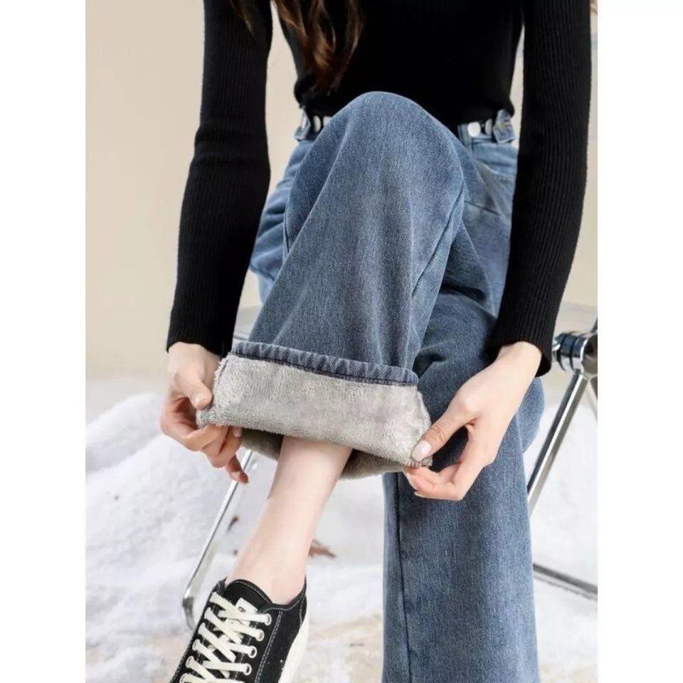 ins terciopelo grueso invierno recto cintura alta jeans de mujer sueltos delgados cálidos moda estudiante pantalones de pierna ancha
