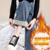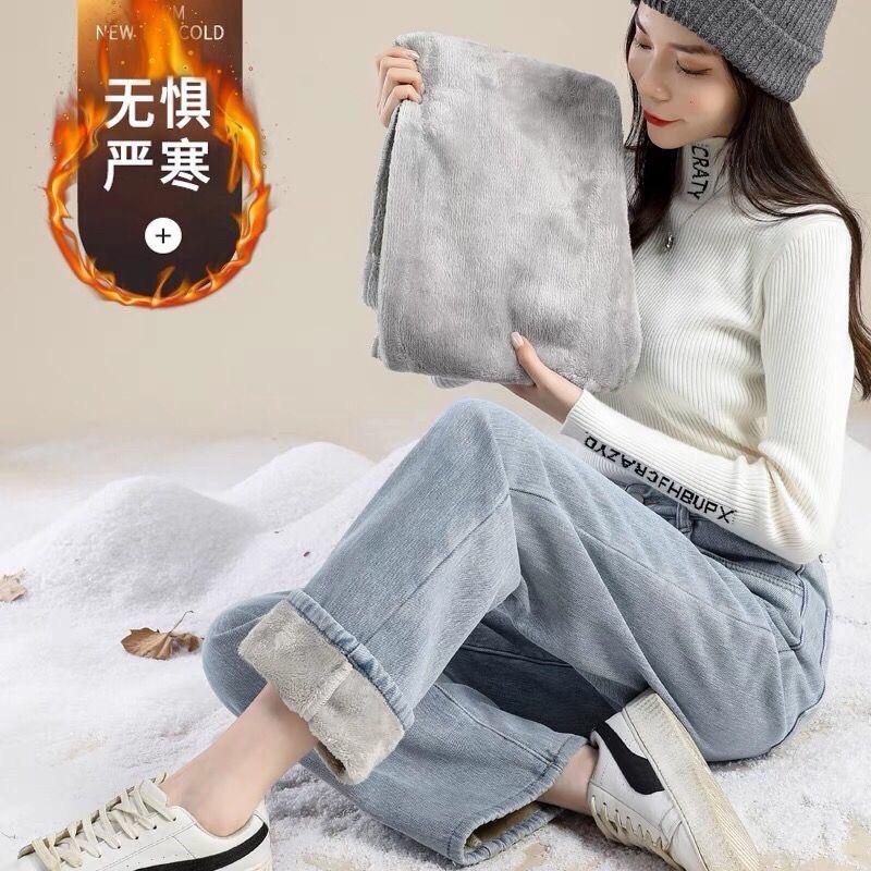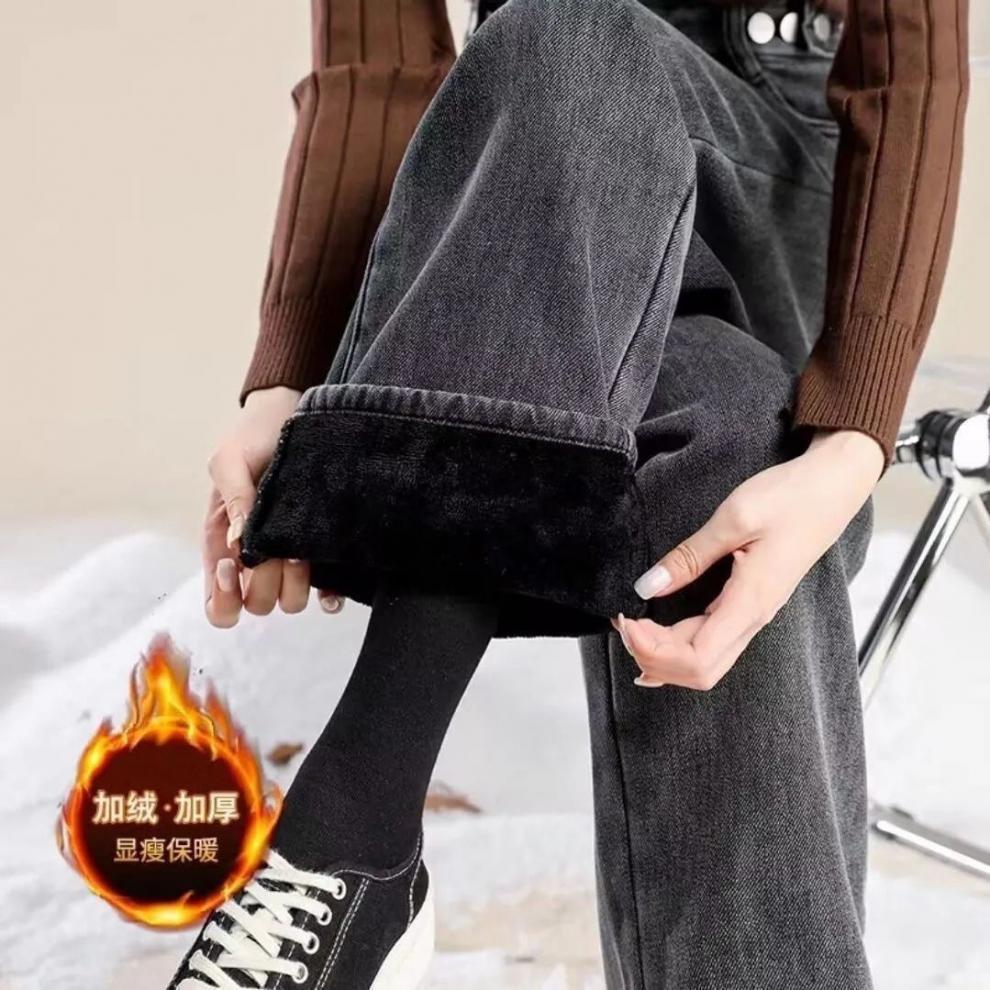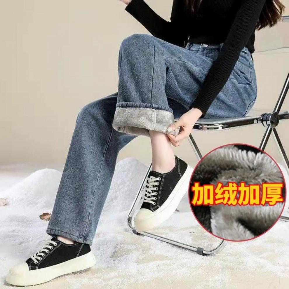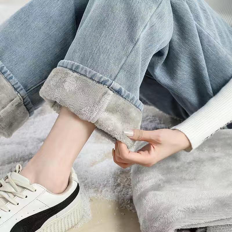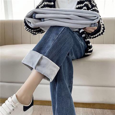 ins terciopelo grueso invierno recto cintura alta jeans de mujer sueltos delgados cálidos moda estudiante pantalones de pierna ancha
