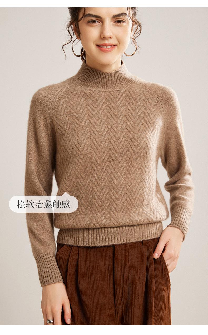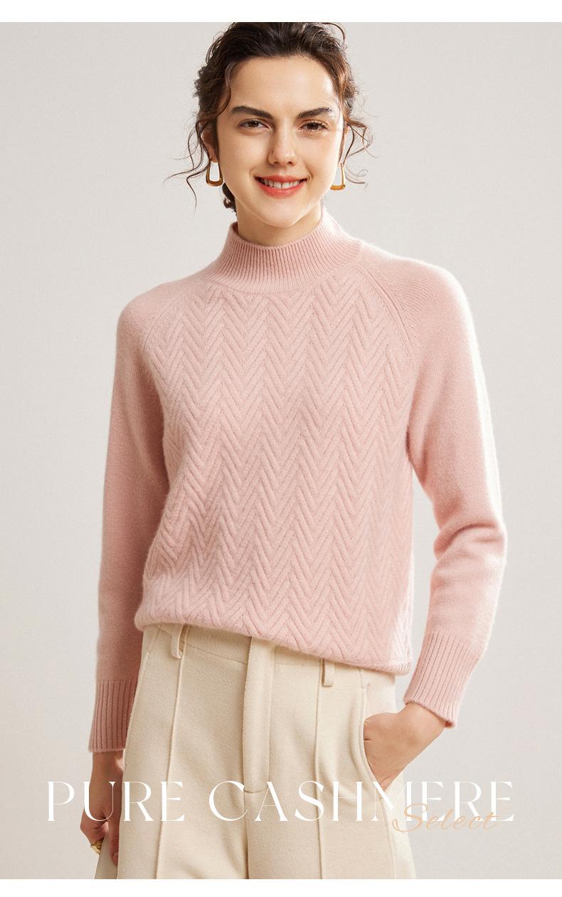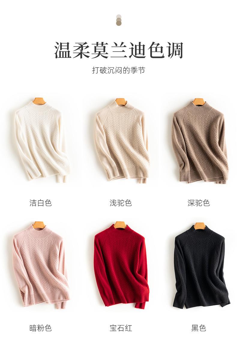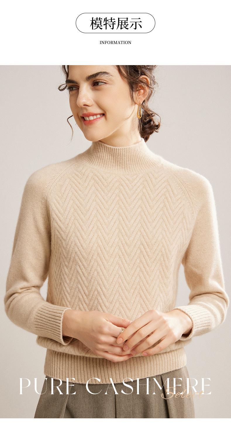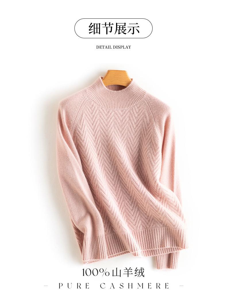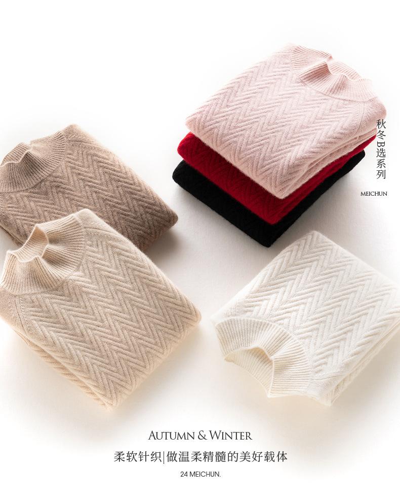 Popular Transfronterizo Otoño e Invierno Nuevo Suéter Grueso Jacquard de Cachemira de Cuello Alto Medio para Mujer Color Sólido Tejido Suelto