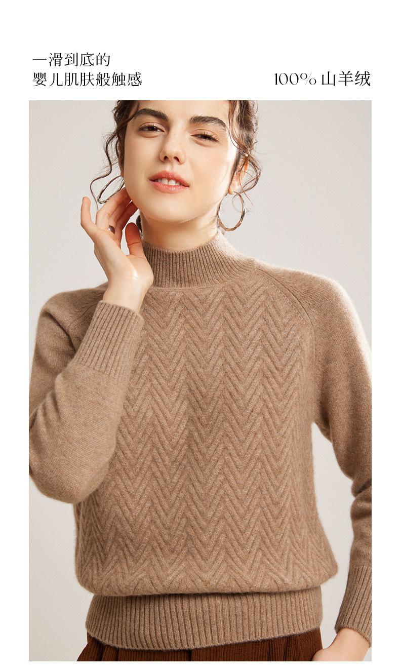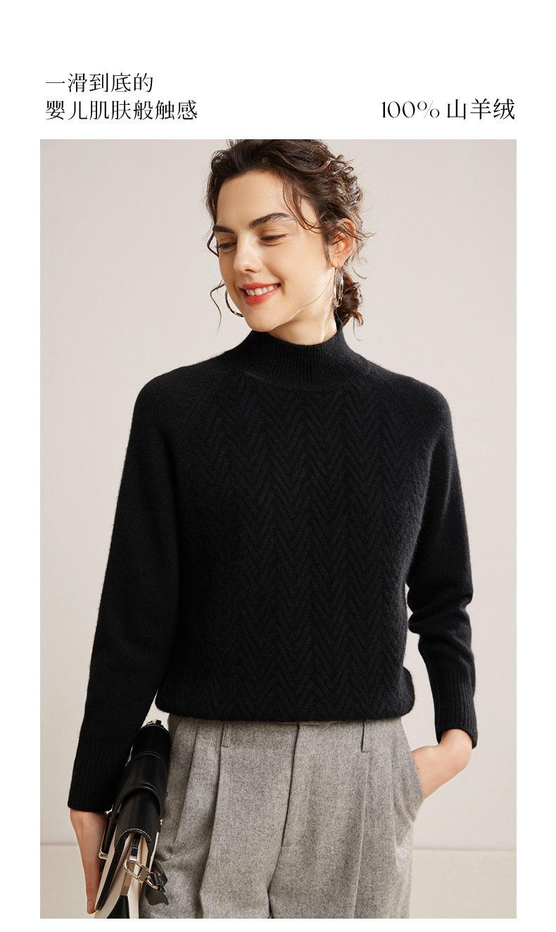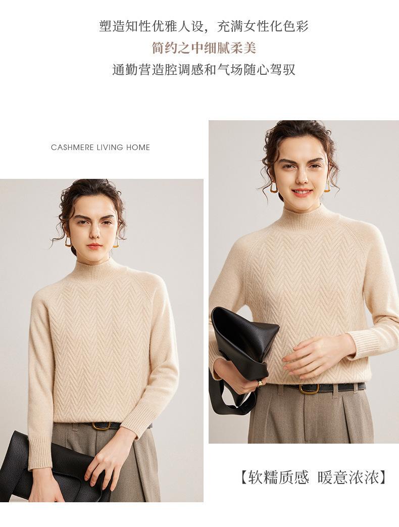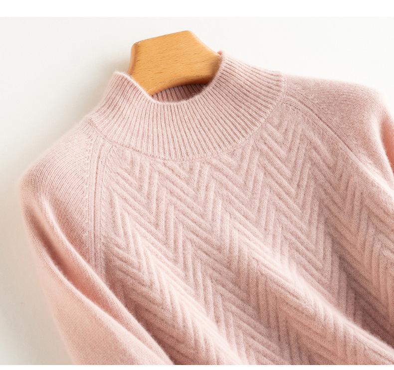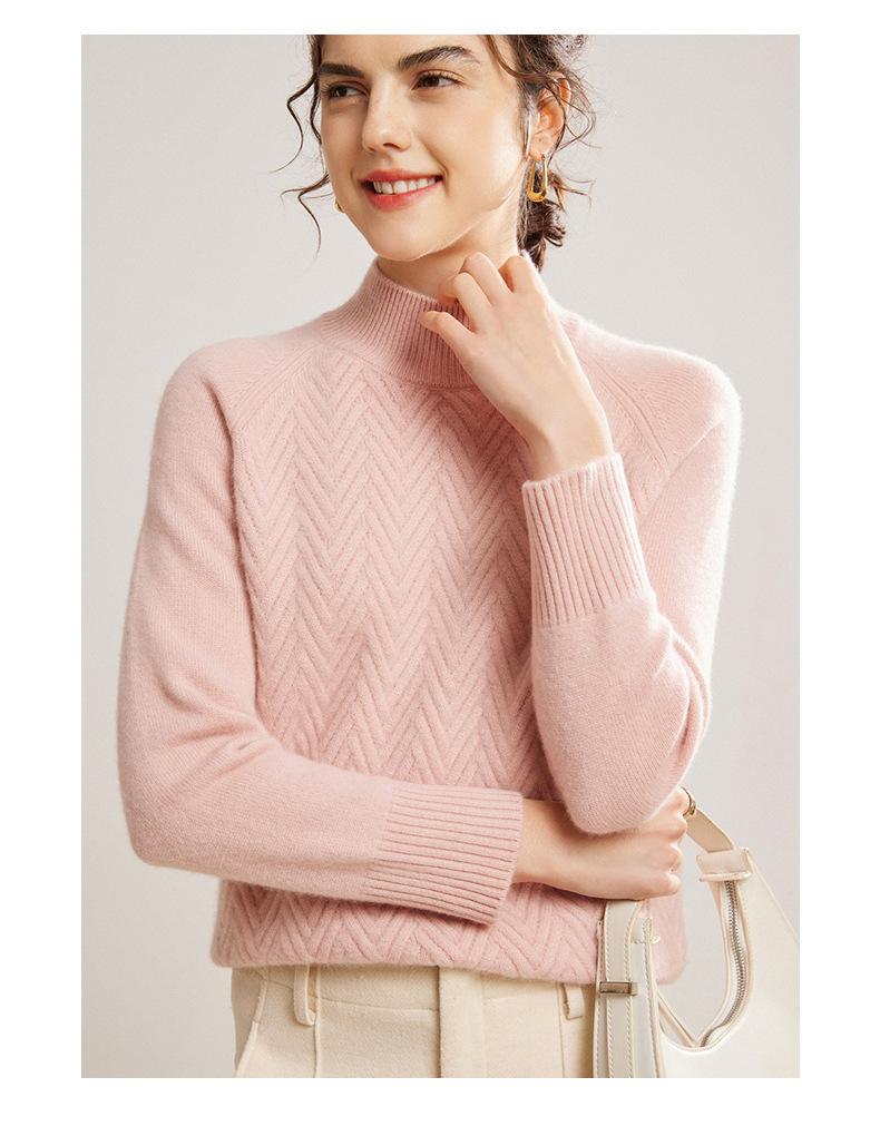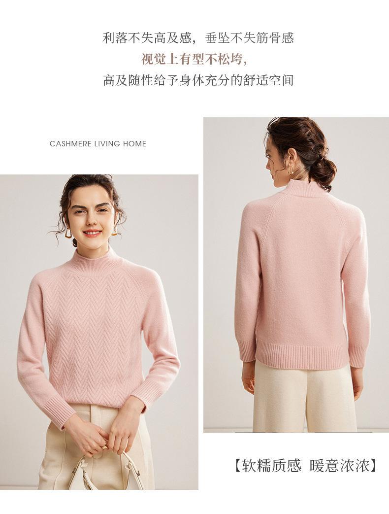 Popular Transfronterizo Otoño e Invierno Nuevo Suéter Grueso Jacquard de Cachemira de Cuello Alto Medio para Mujer Color Sólido Tejido Suelto