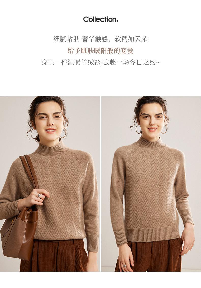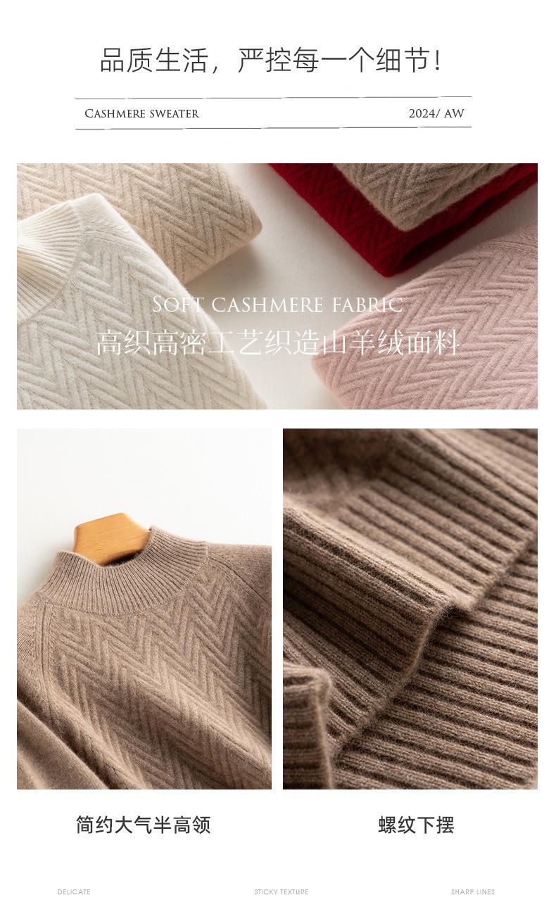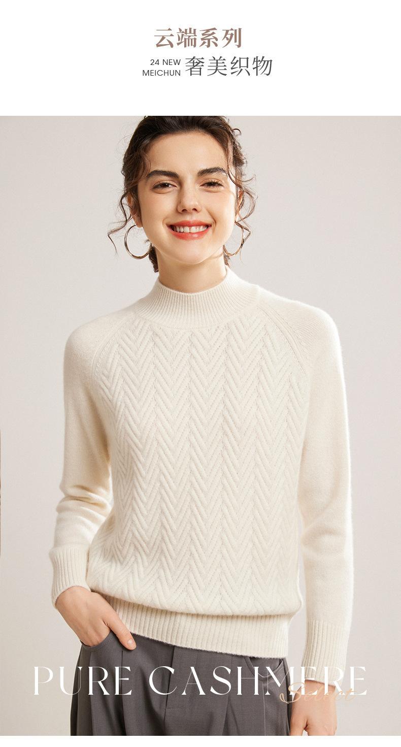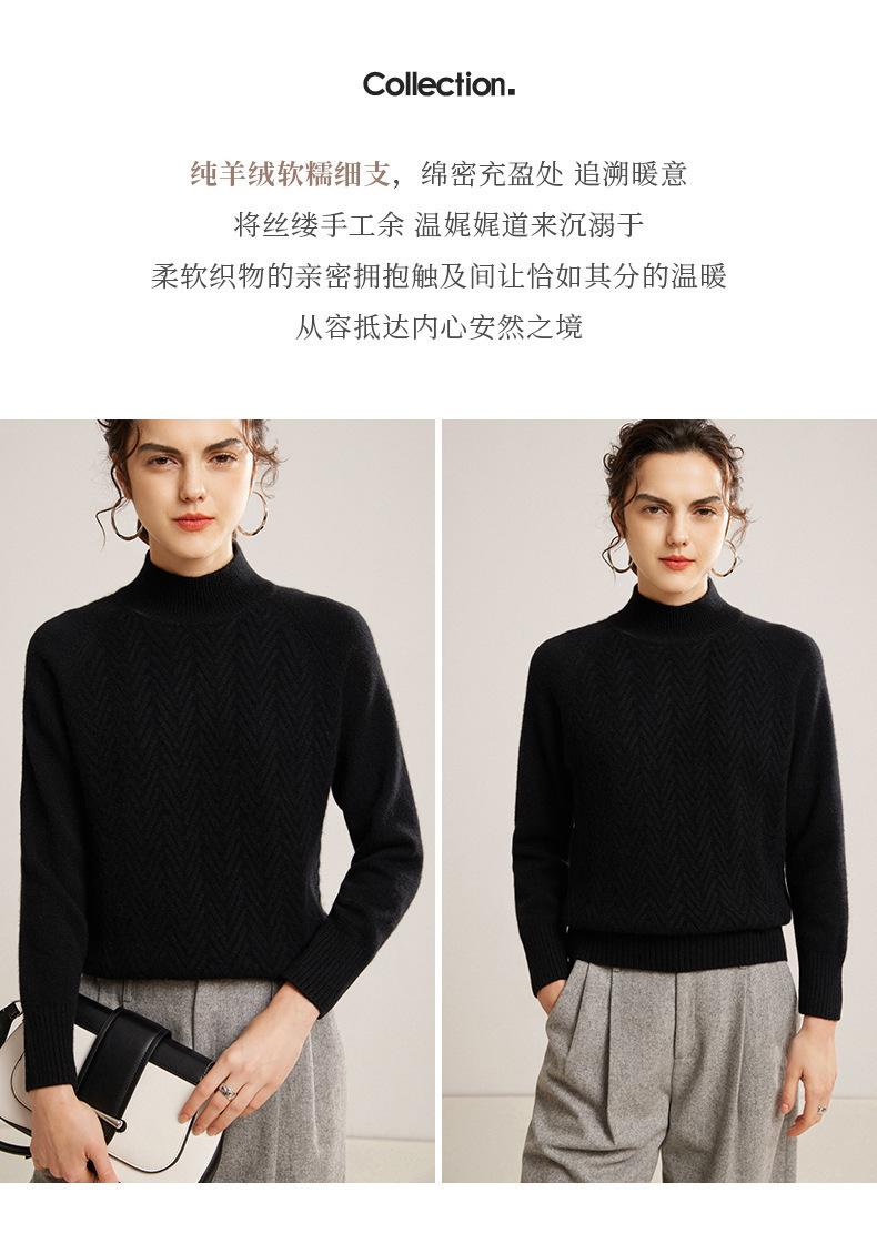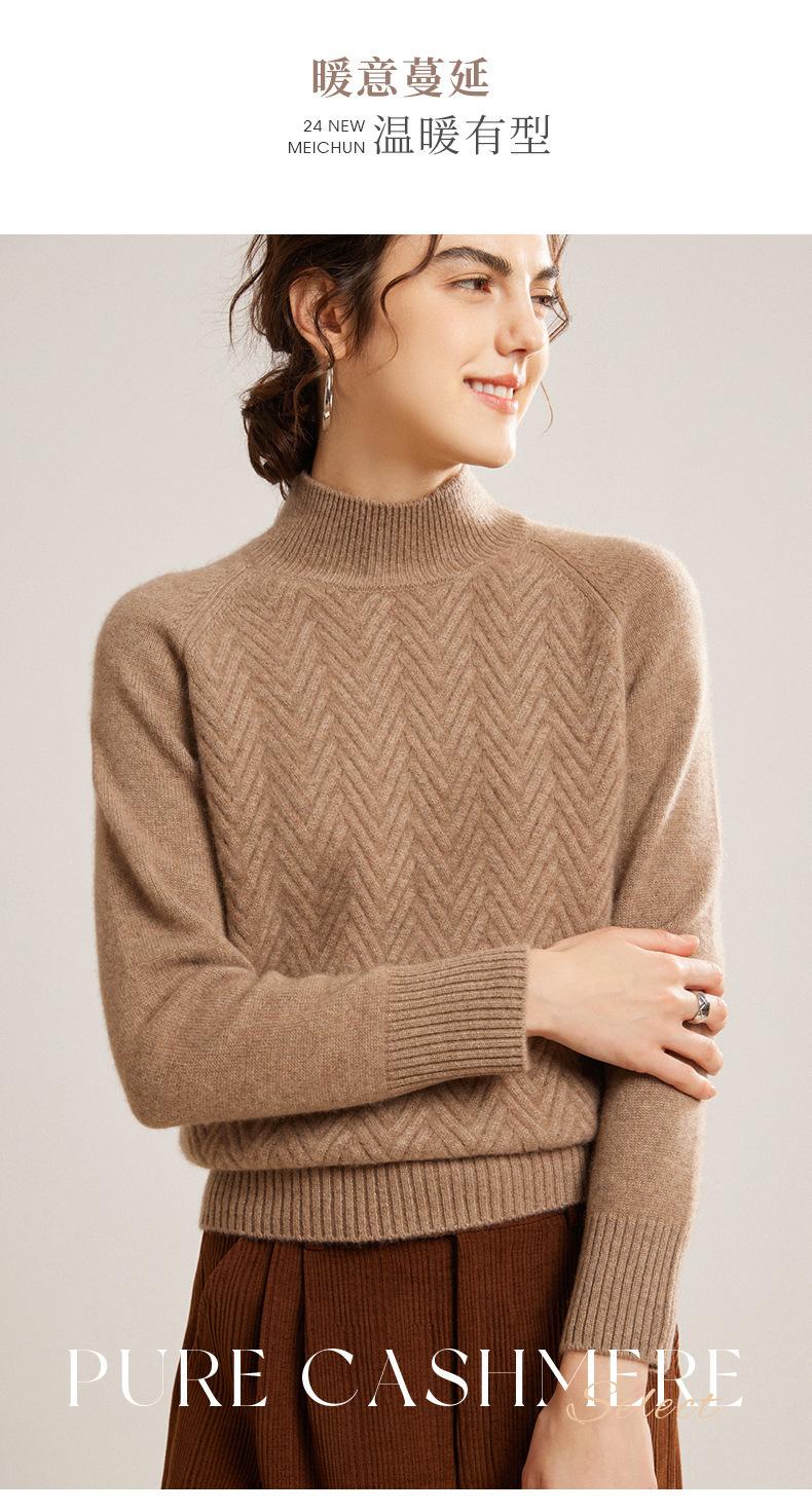 Popular Transfronterizo Otoño e Invierno Nuevo Suéter Grueso Jacquard de Cachemira de Cuello Alto Medio para Mujer Color Sólido Tejido Suelto
