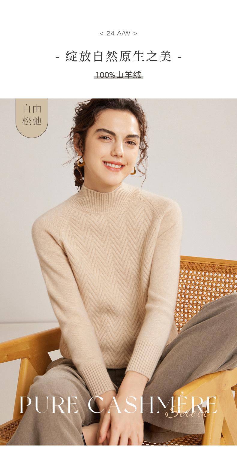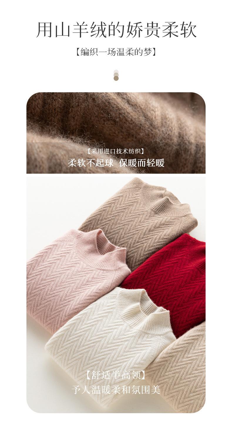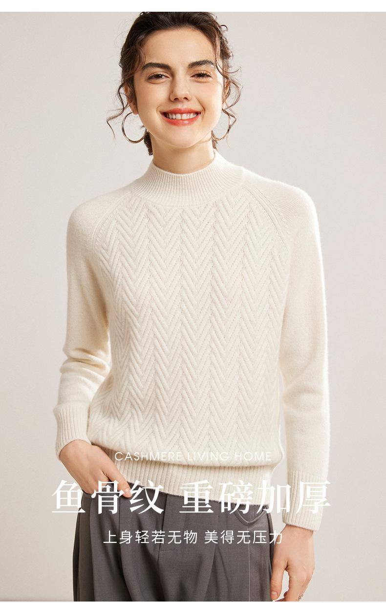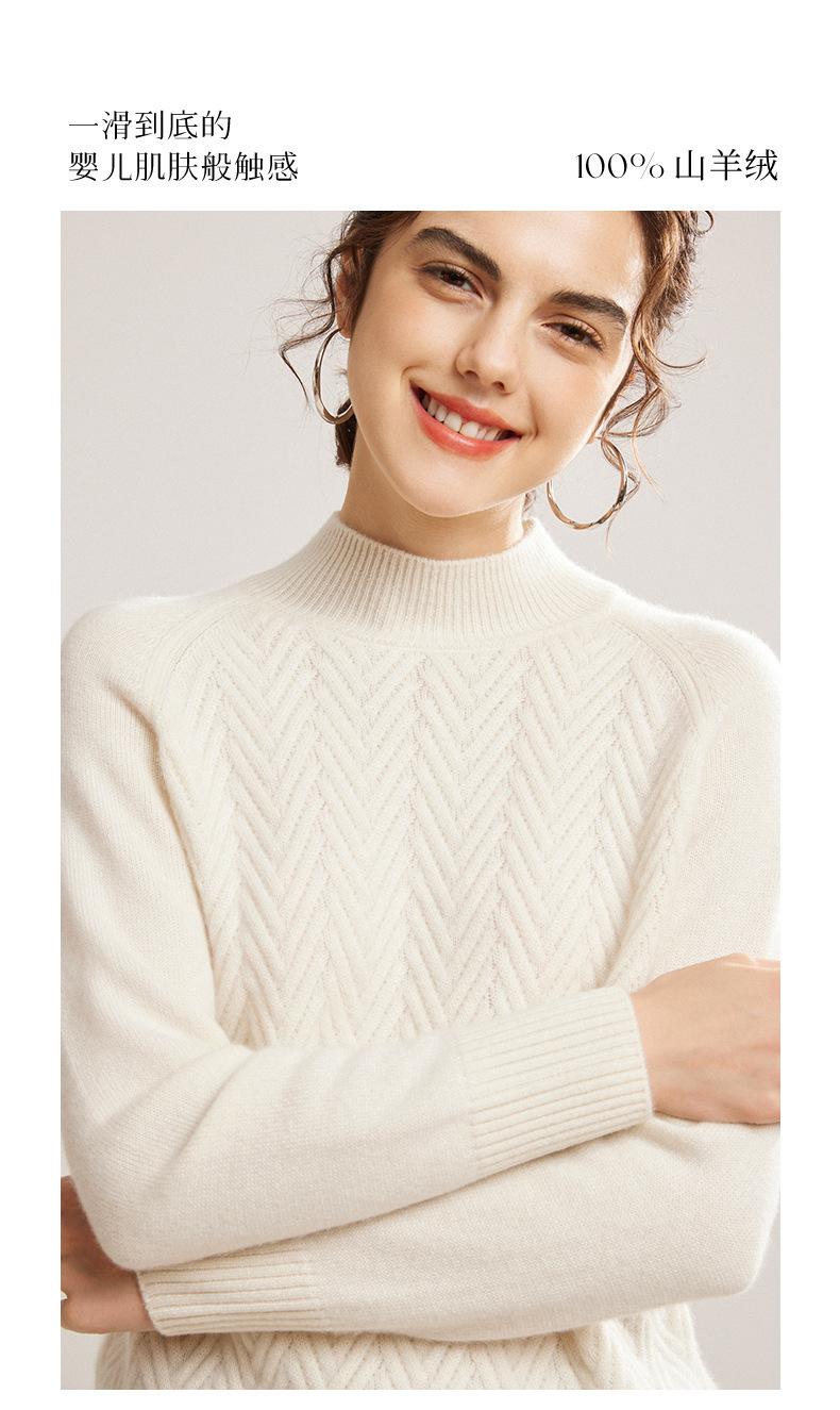 Popular Transfronterizo Otoño e Invierno Nuevo Suéter Grueso Jacquard de Cachemira de Cuello Alto Medio para Mujer Color Sólido Tejido Suelto