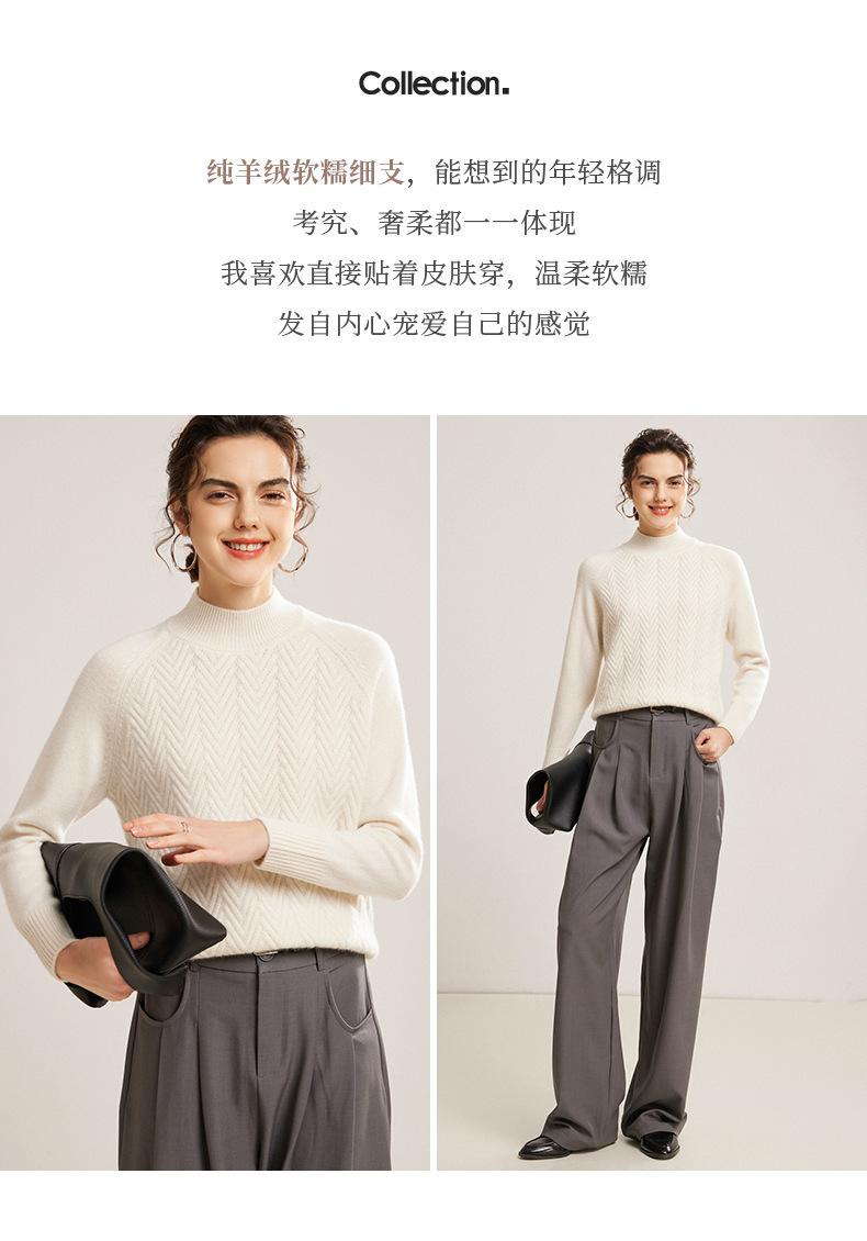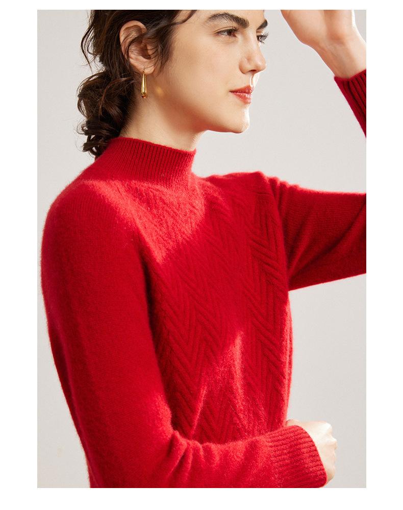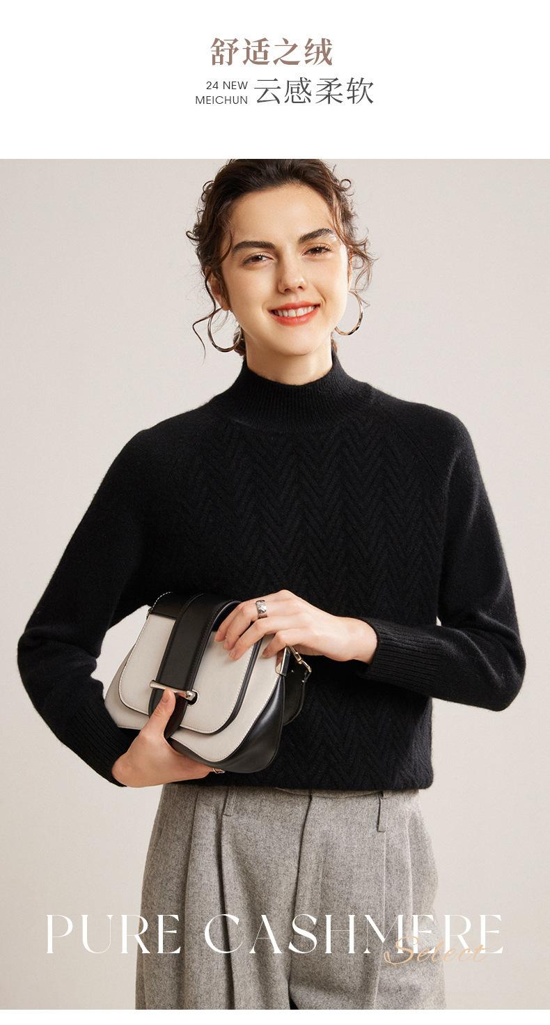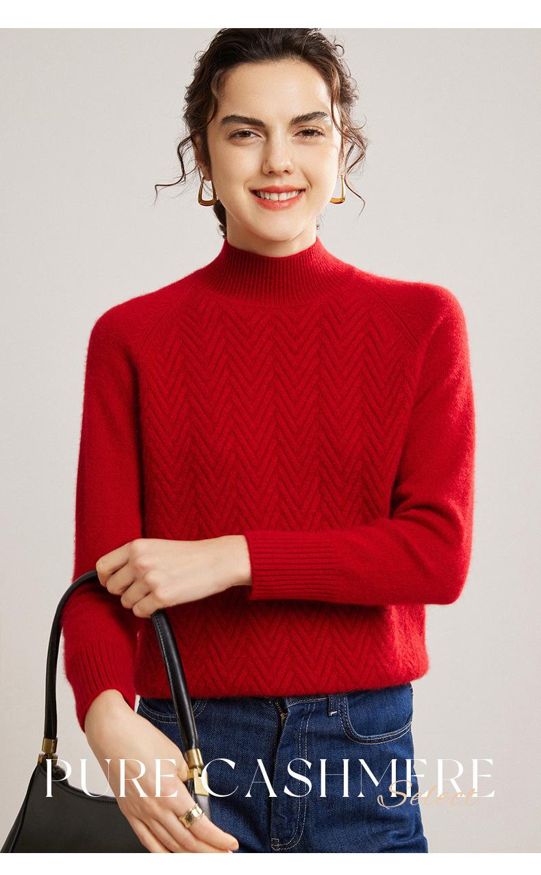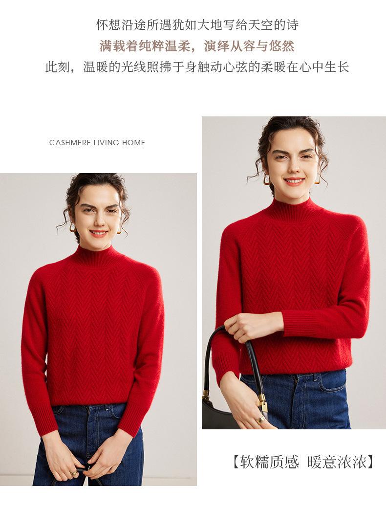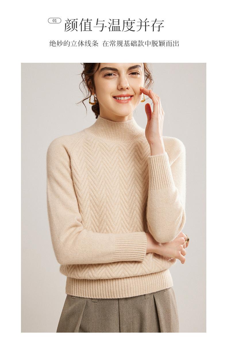 Popular Transfronterizo Otoño e Invierno Nuevo Suéter Grueso Jacquard de Cachemira de Cuello Alto Medio para Mujer Color Sólido Tejido Suelto