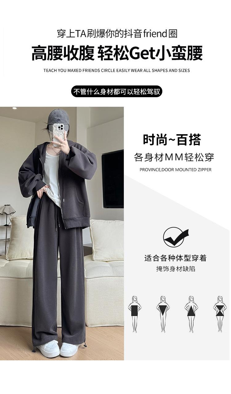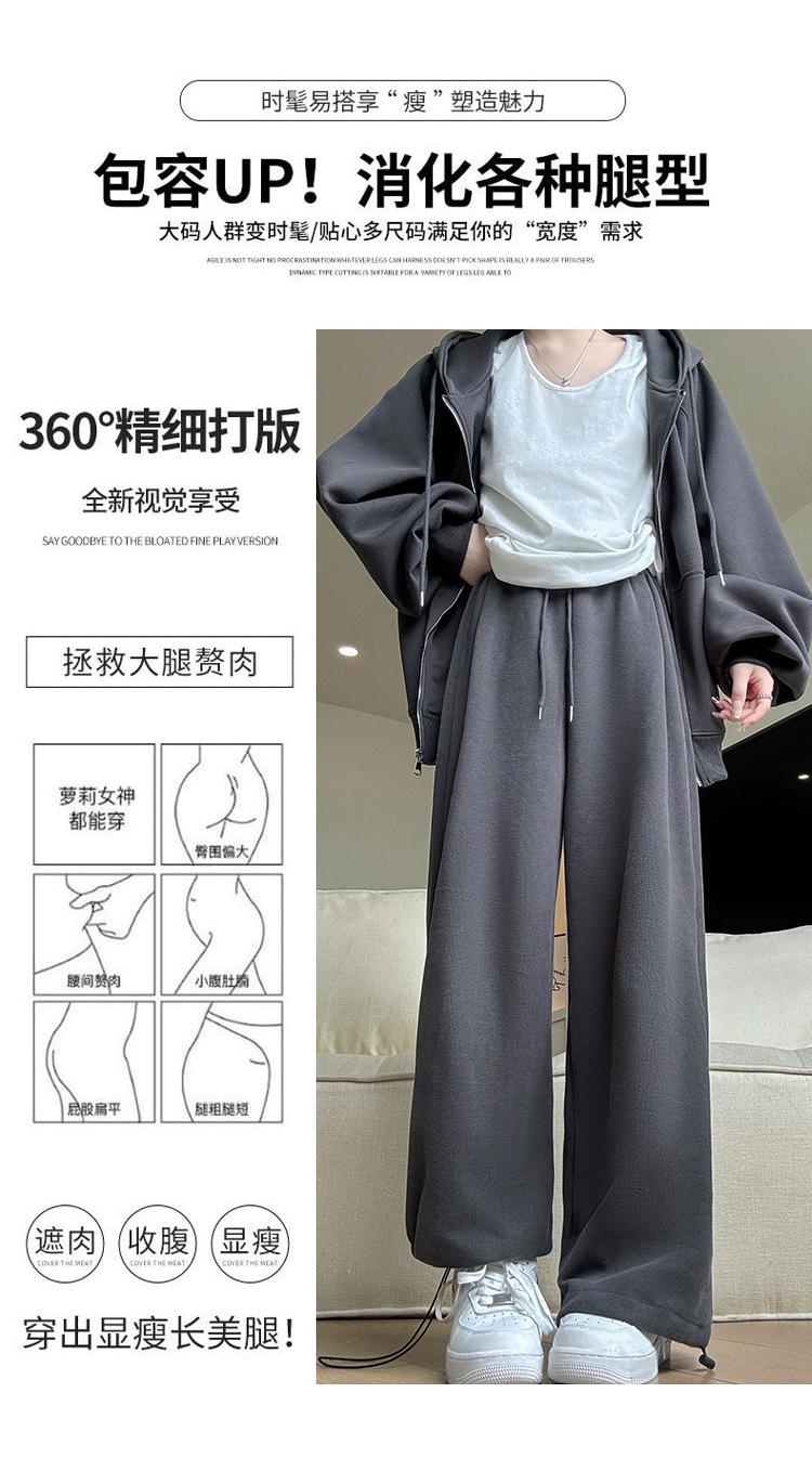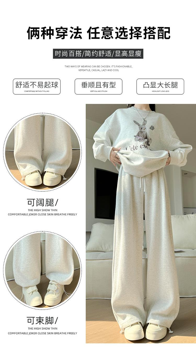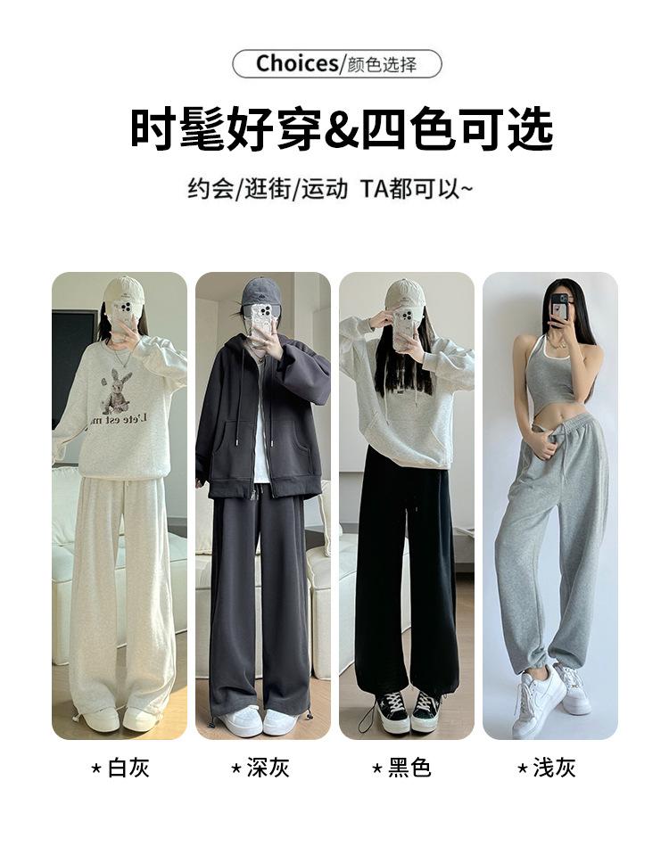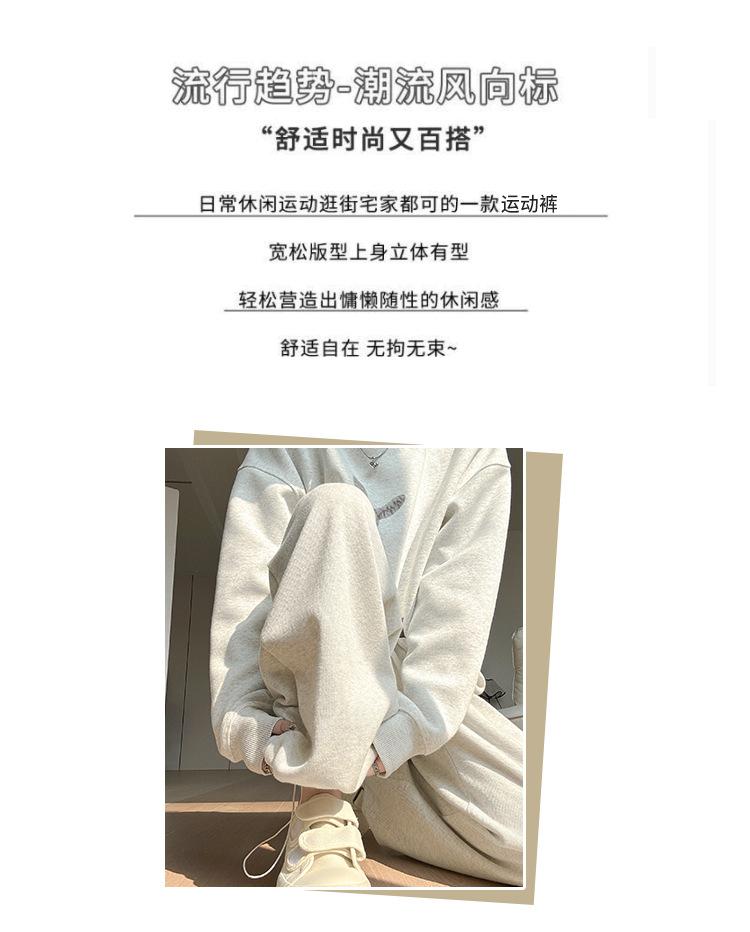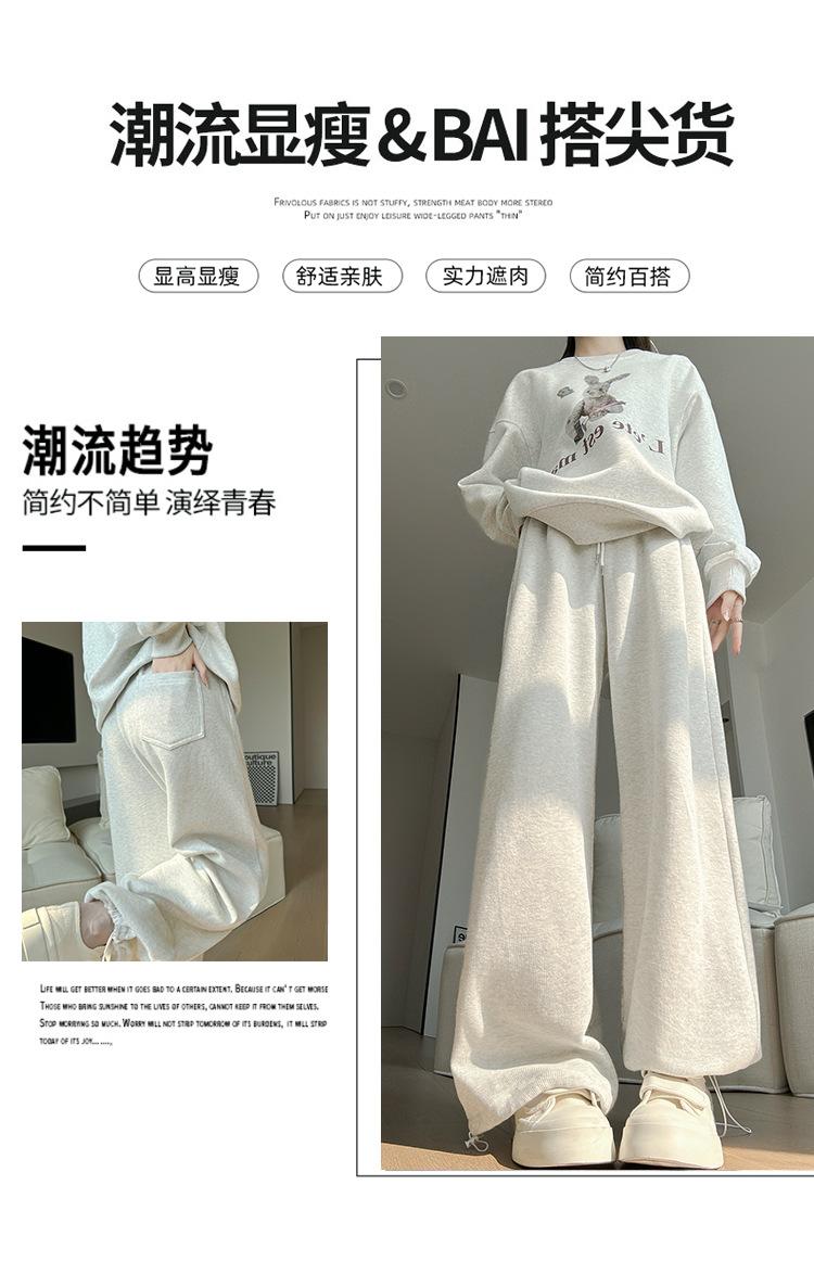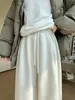 Pantalones Deportivos Blancos Grises para Mujer Otoño e Invierno Nuevos Cintura Alta Dosis Pierna Recta Pantalones de Pierna Ancha Pequeños Casual Estilo Americano Pantalones de Sudor Forrados de Felpa