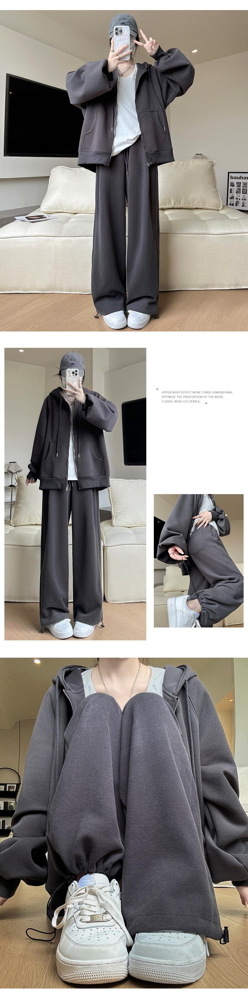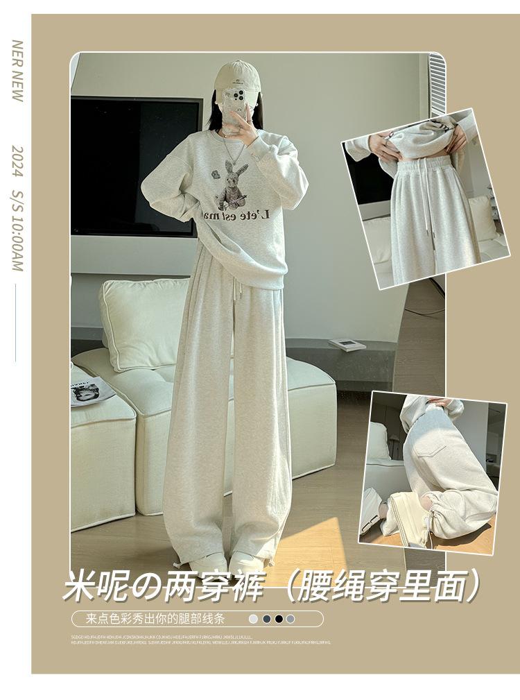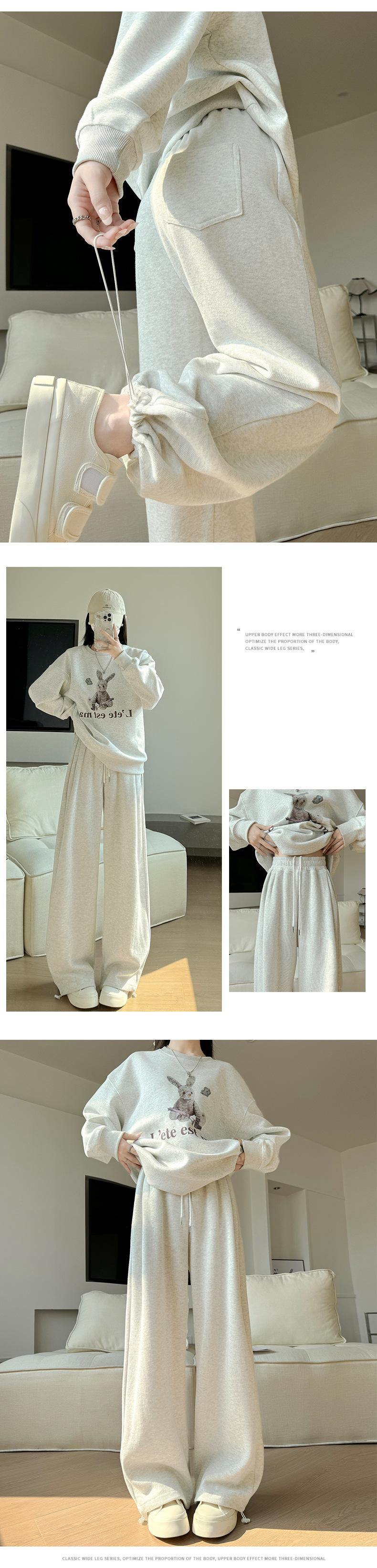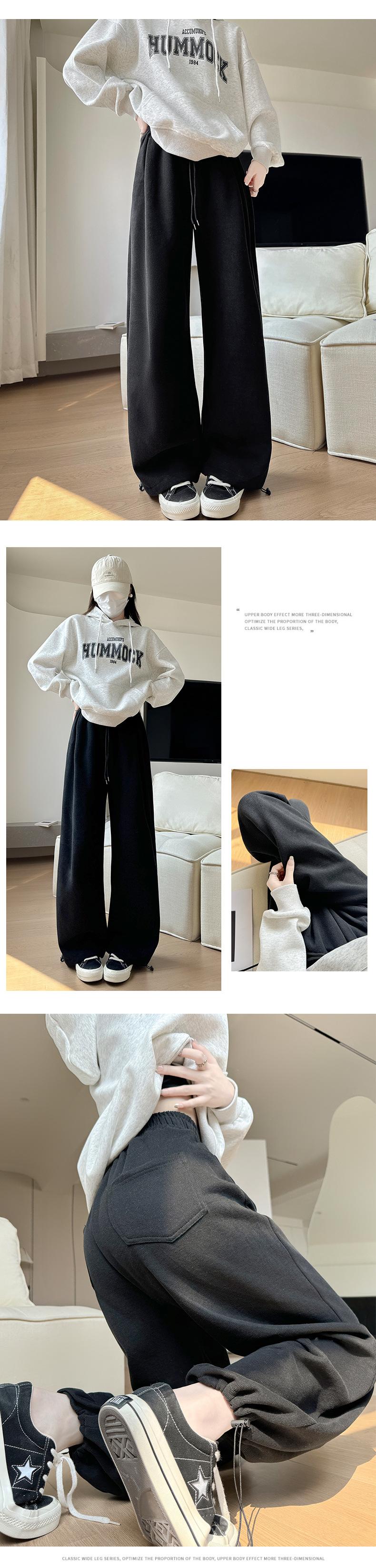 Pantalones Deportivos Blancos Grises para Mujer Otoño e Invierno Nuevos Cintura Alta Dosis Pierna Recta Pantalones de Pierna Ancha Pequeños Casual Estilo Americano Pantalones de Sudor Forrados de Felpa