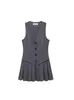Comercio Exterior Transfronterizo Otoño 2024 Ropa Nueva para Mujer Estilo Francés Cuello en V Sin Mangas Ancho Plisado Rayado Estilo Chaleco Mono Corto