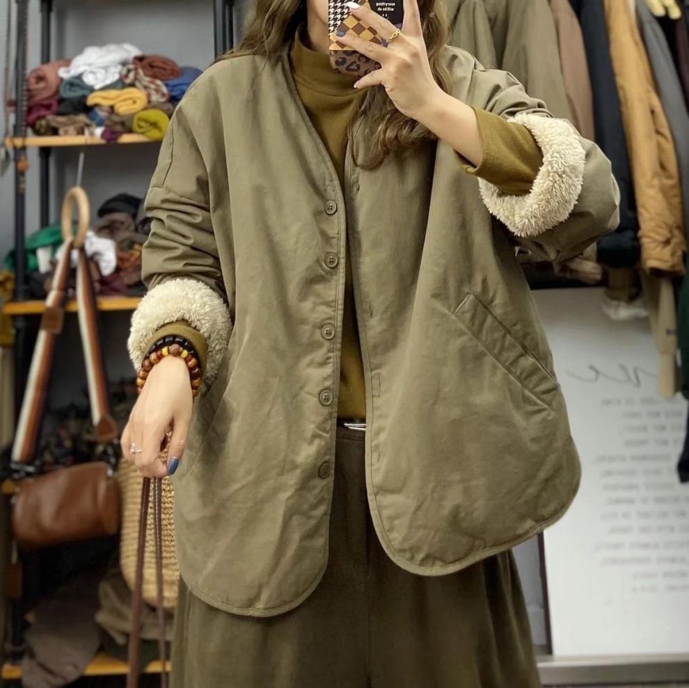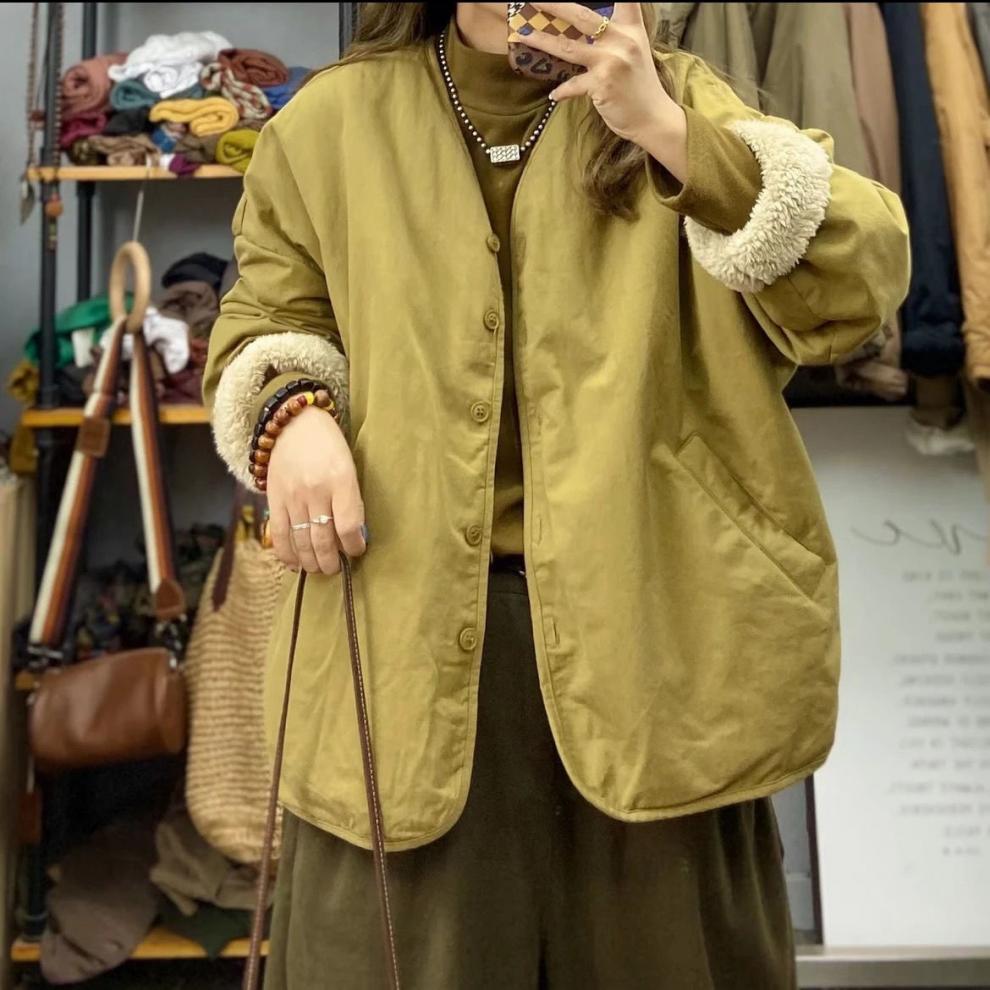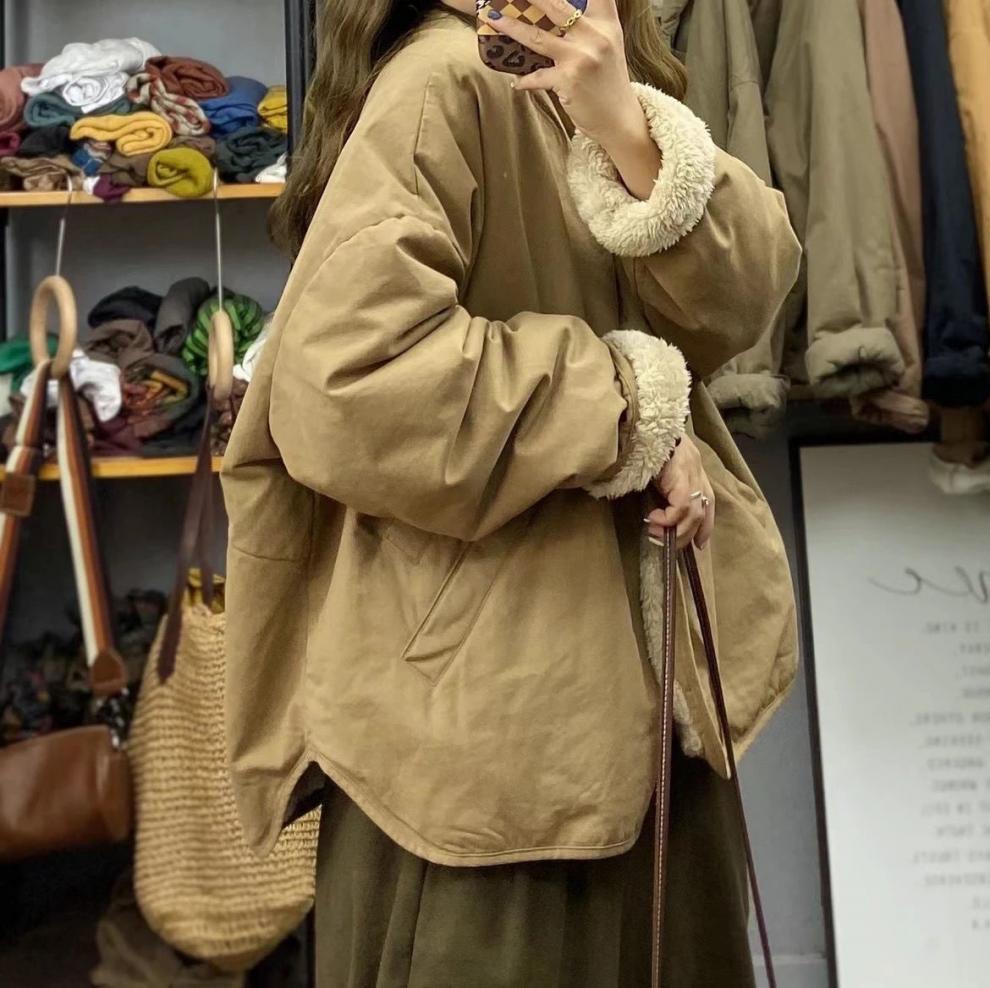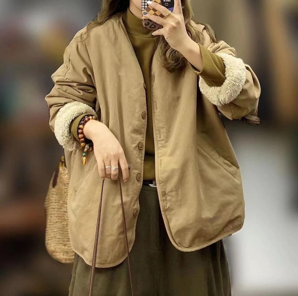 Chaqueta Corta de Ropa de Trabajo a la Moda para Mujer Invierno Nuevo Suelta Plus Terciopelo Casual Ropa de Algodón Retro Engrosada Cálida Ropa de Algodón