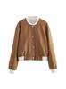 2024 Moda Transfronteriza Amazon Todo Combinable Cuello Vertical Doble Bolsillo Contraste Biker Aviador Chaqueta Abrigo