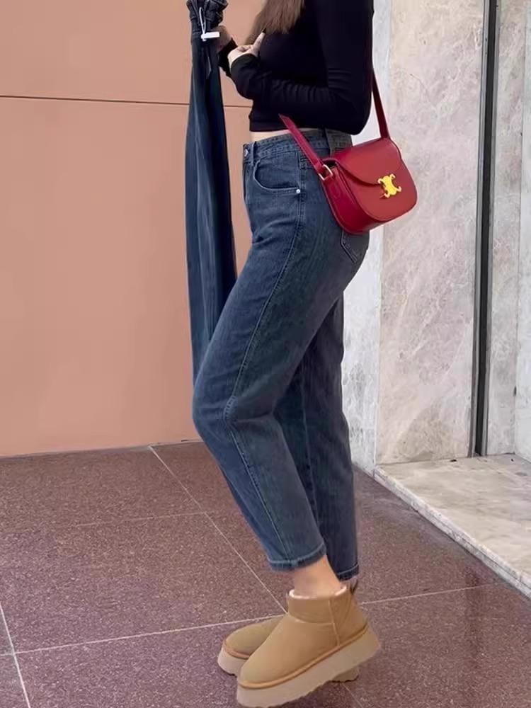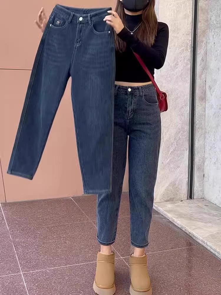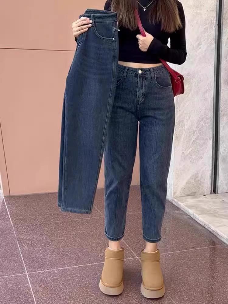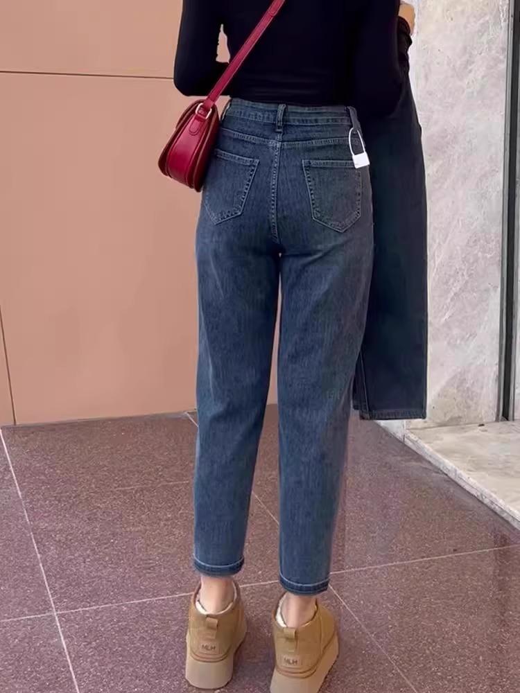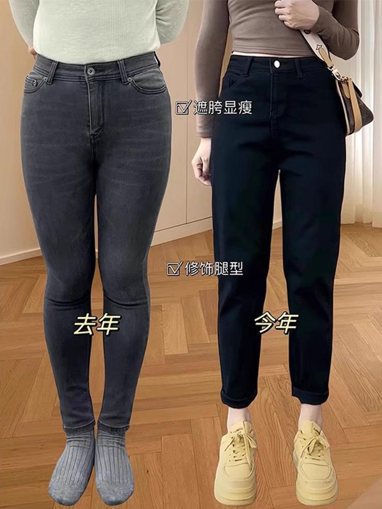 Pantalones Harem de Terciopelo Negro para Mujer 2024 Otoño e Invierno Look Holgado Adelgazante Pantalones de Papá Petite Pantalones Zanahoria Nueve Puntos