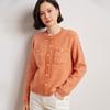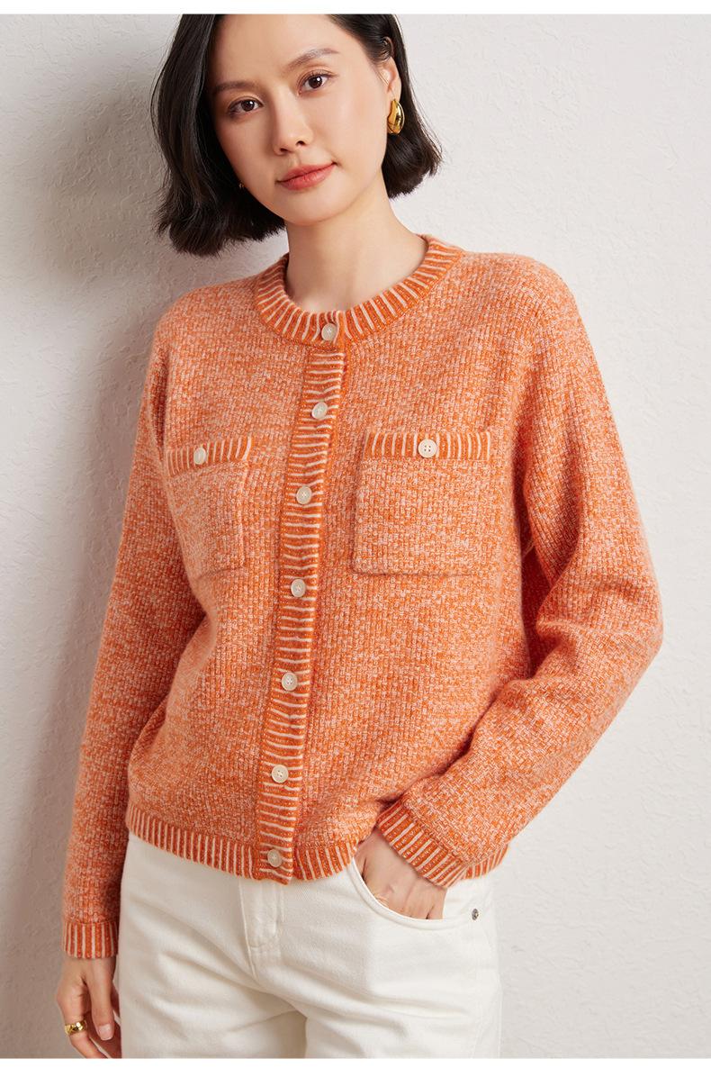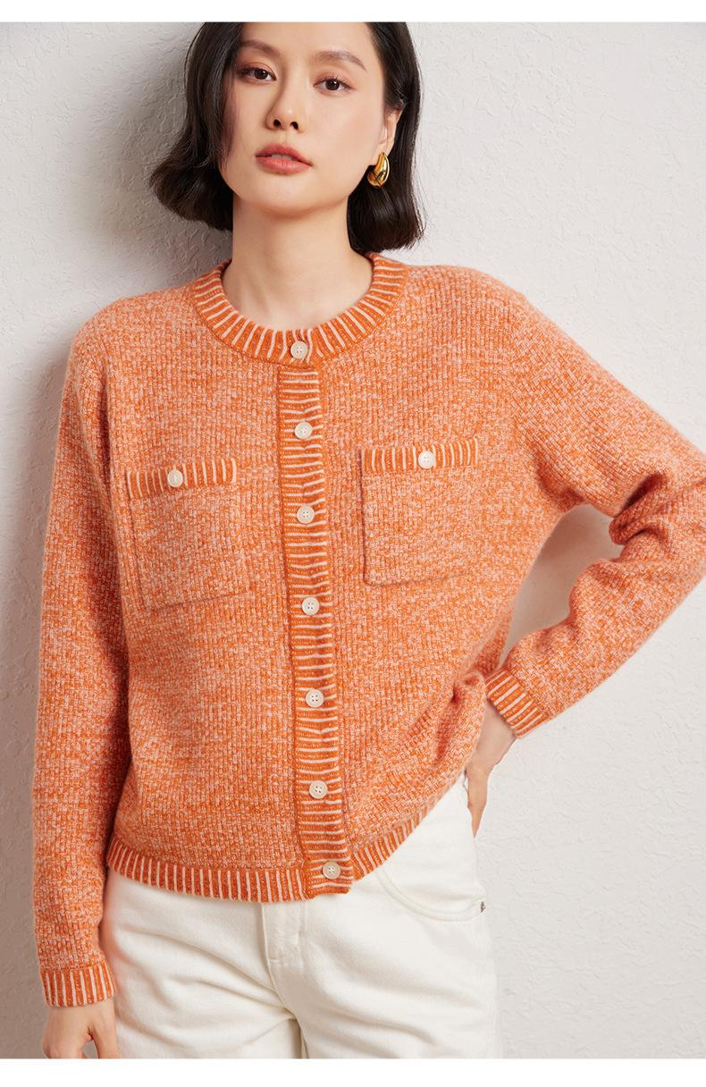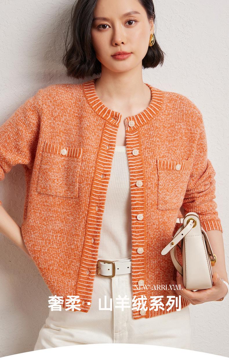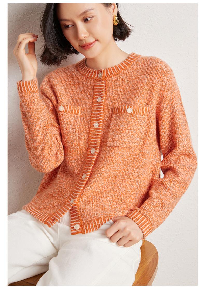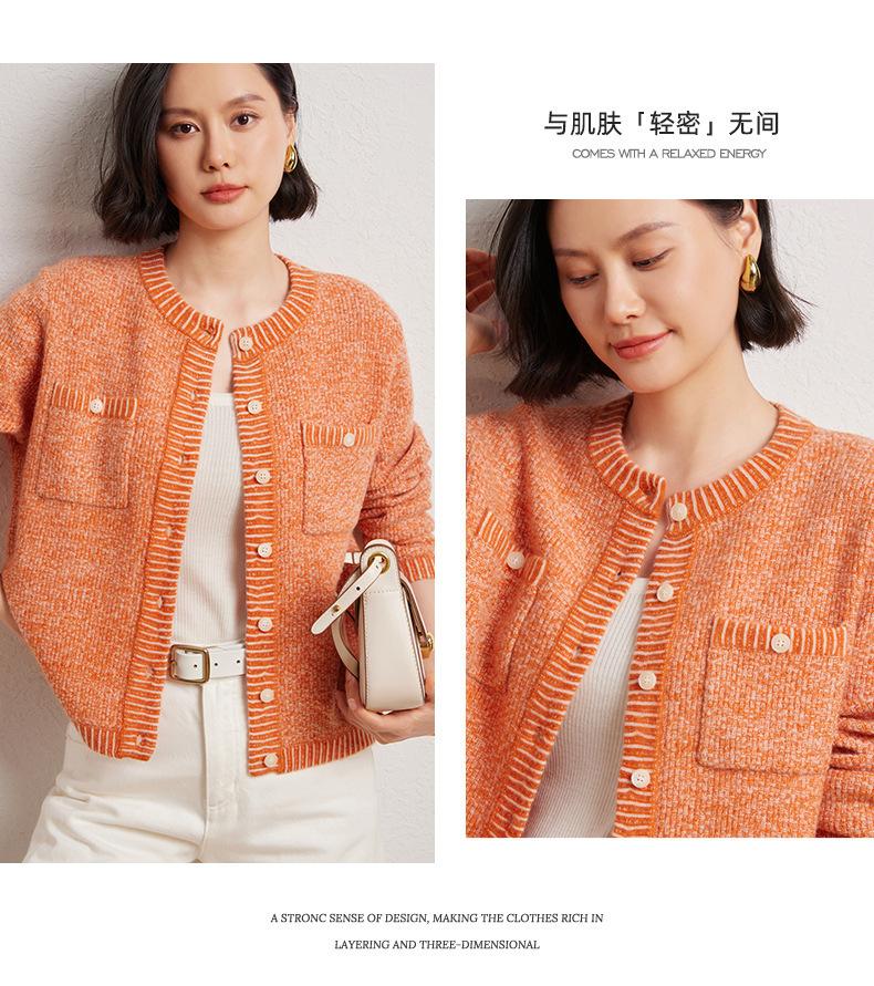 Cárdigan de cachemira de moda elegante para otoño e invierno, cárdigan de lana con flores naranjas para mujer, suéter básico