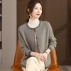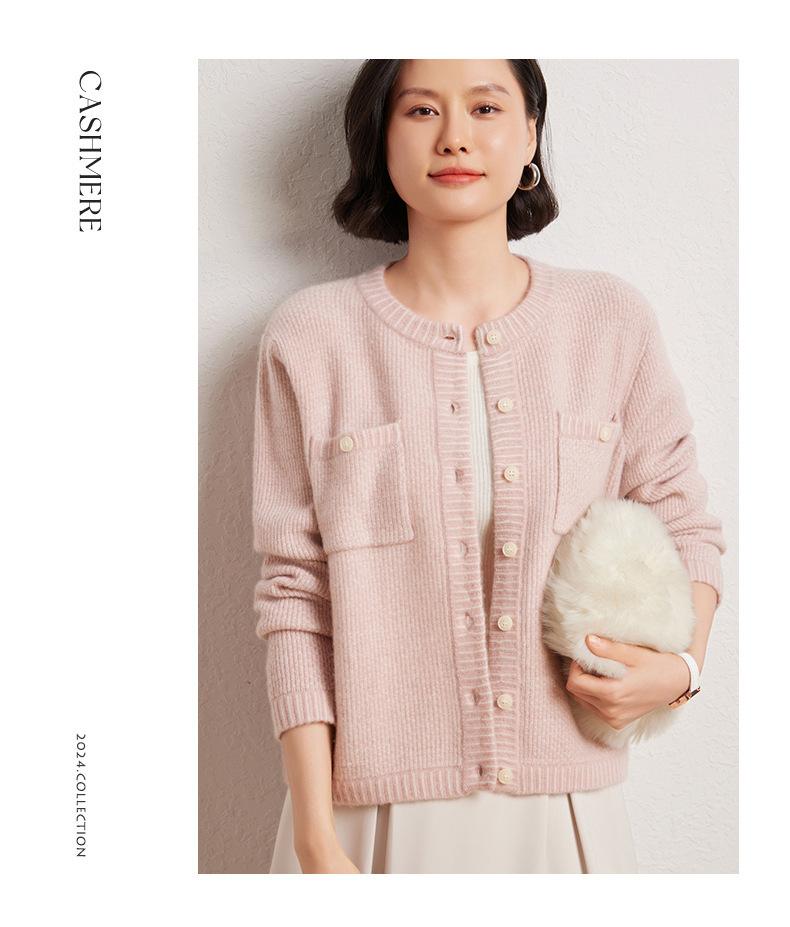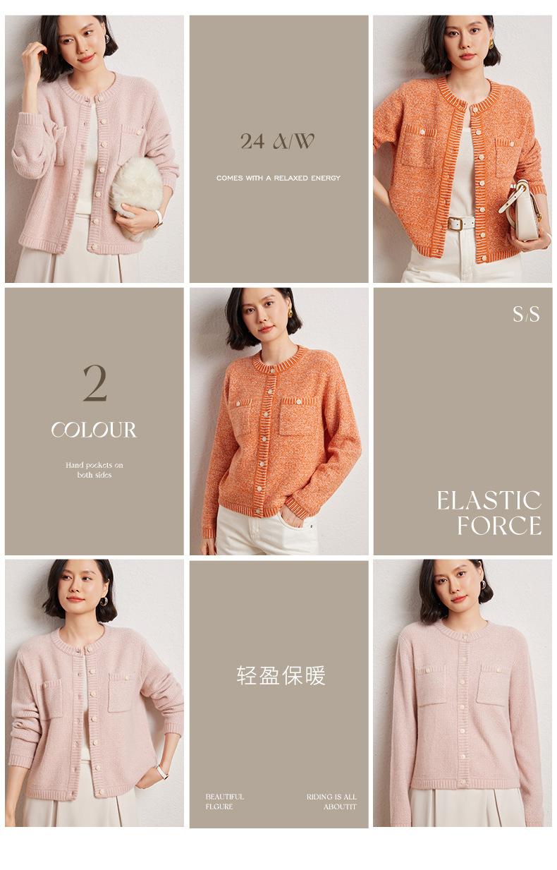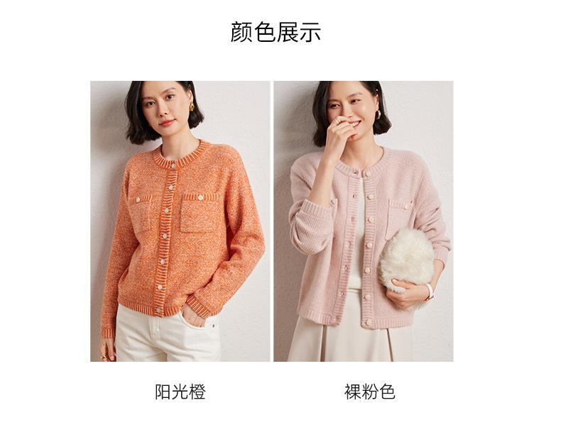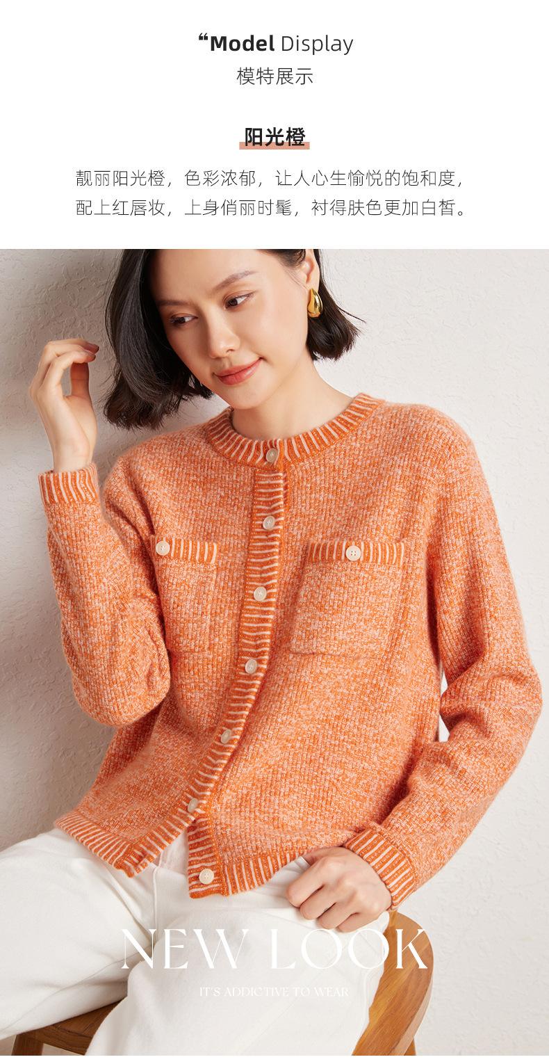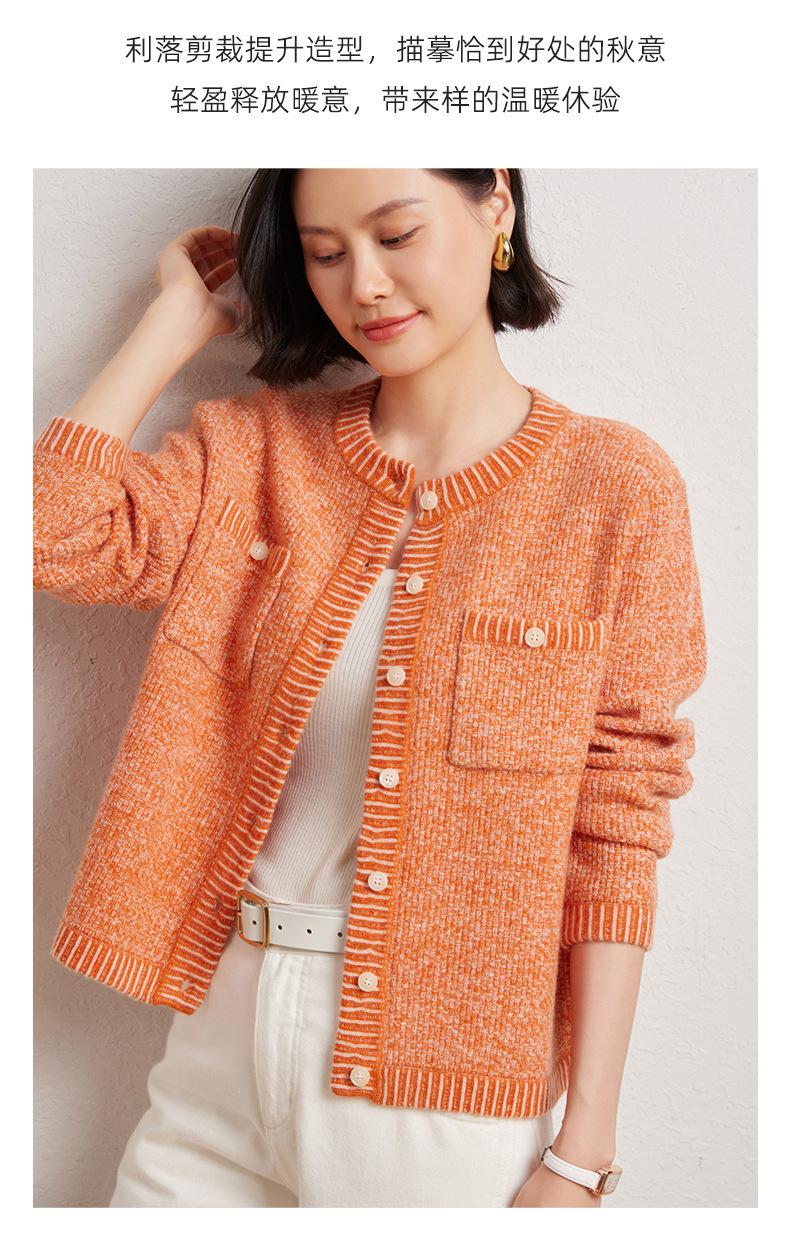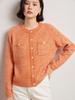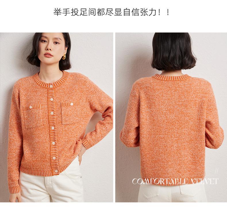 Cárdigan de cachemira de moda elegante para otoño e invierno, cárdigan de lana con flores naranjas para mujer, suéter básico