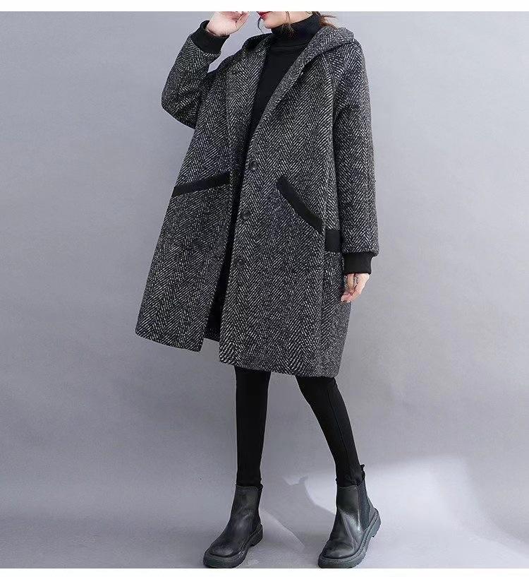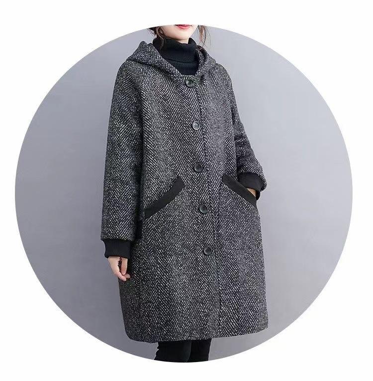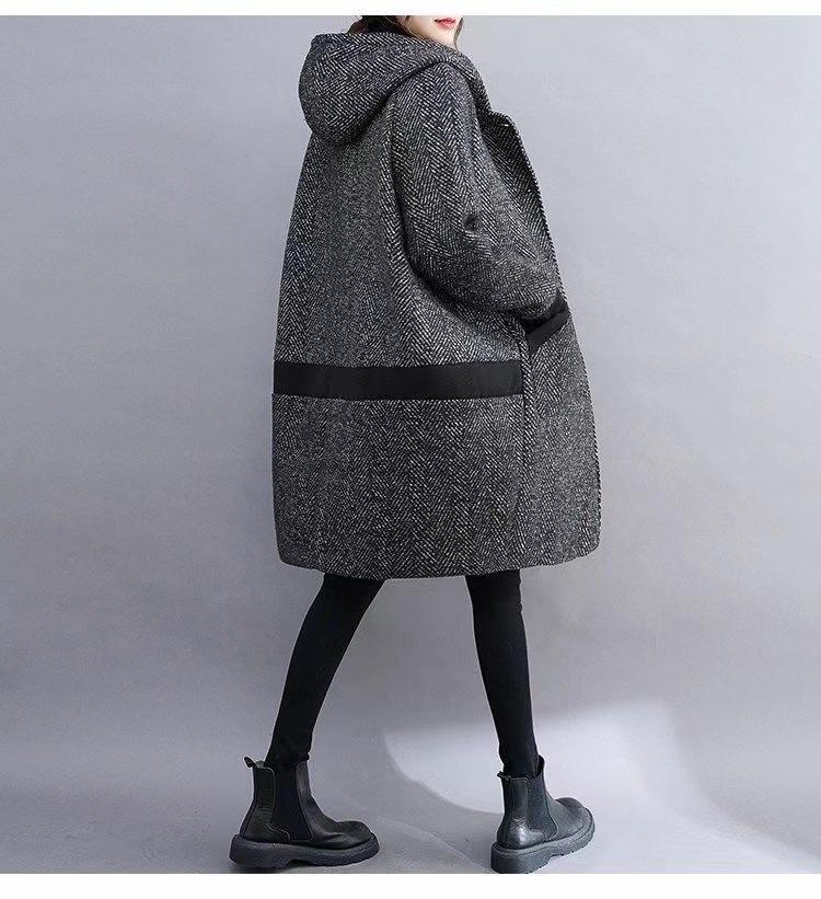 Abrigo cárdigan con capucha de mamá para mujer, otoño e invierno, forrado con vellón, para mujeres de mediana edad y mayores, tallas grandes, abrigo informal holgado, ropa para mujer