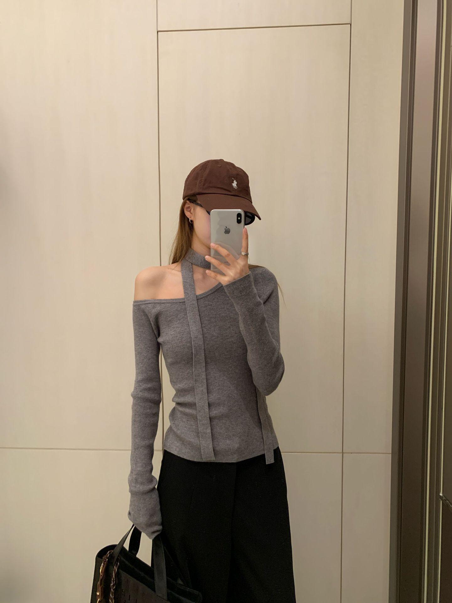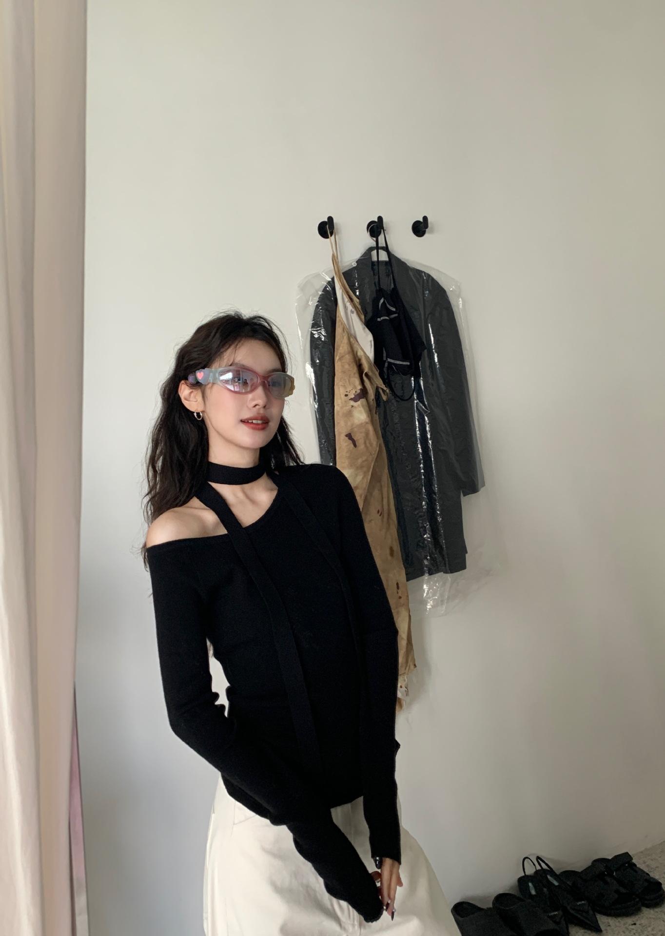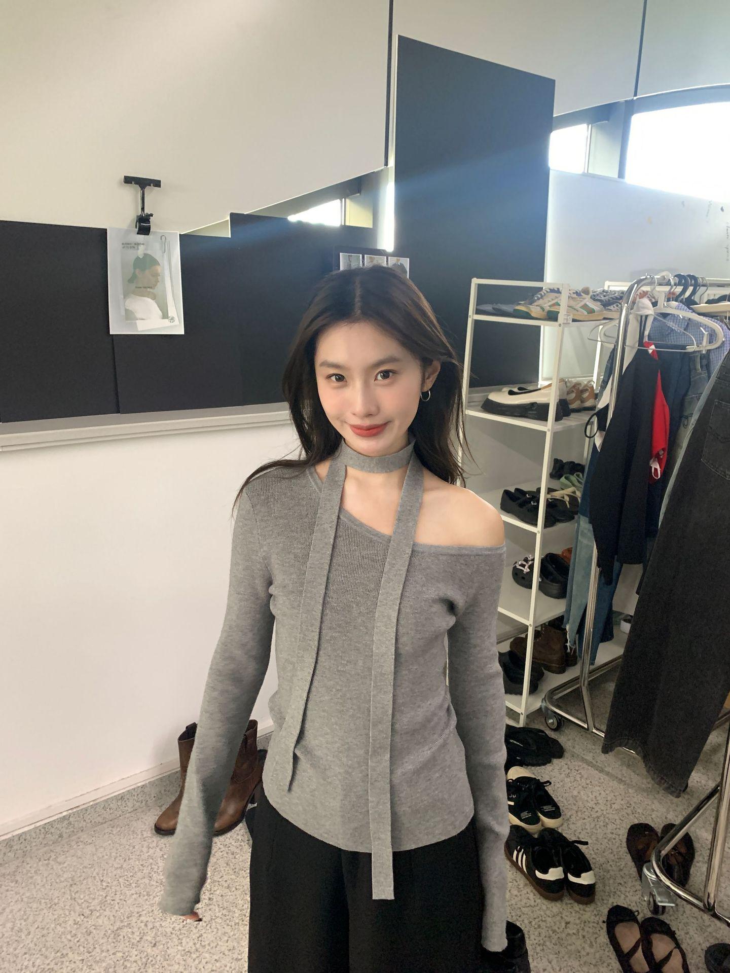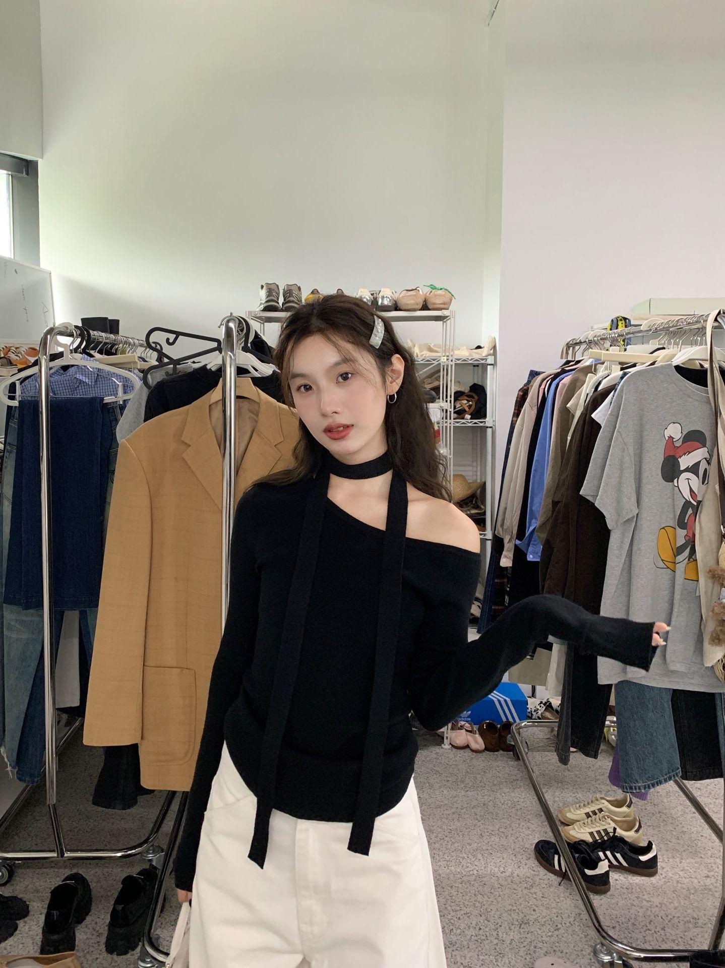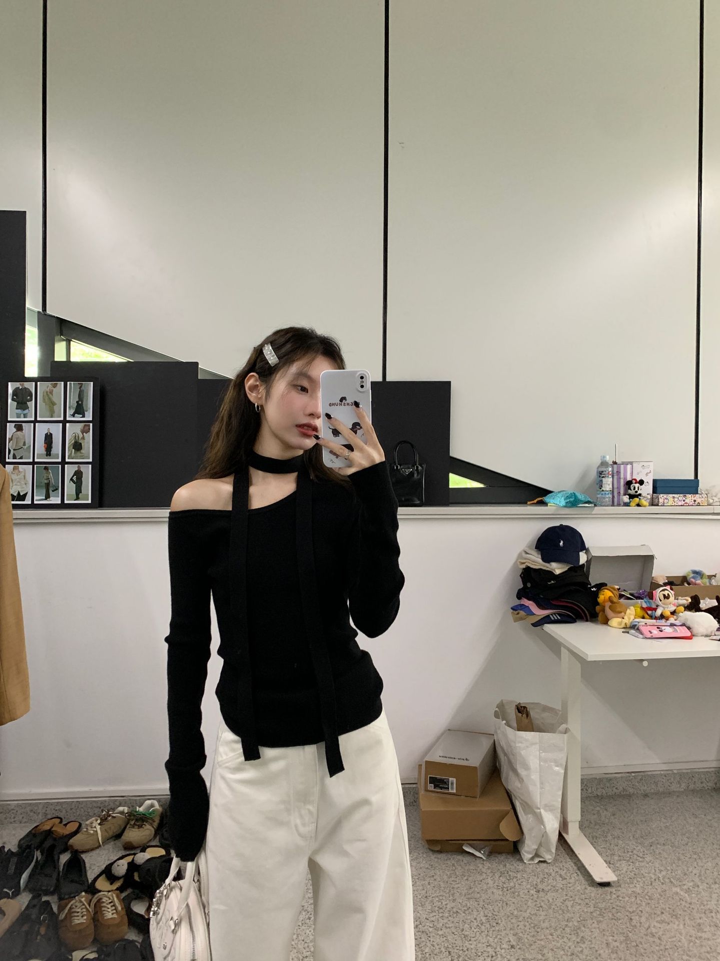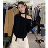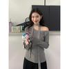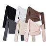 Nuevo diseño de otoño, camiseta ajustada adelgazante con hombros descubiertos y cuello colgante de Spice Girl para mujer
