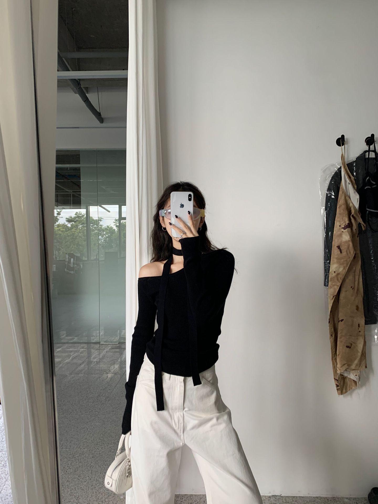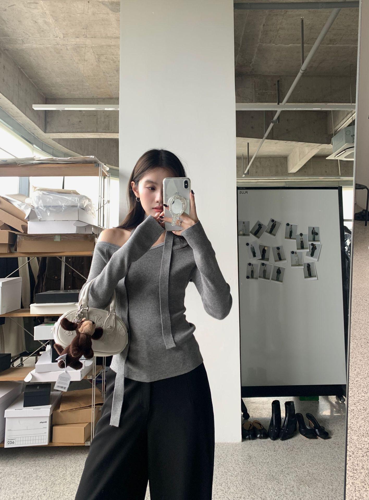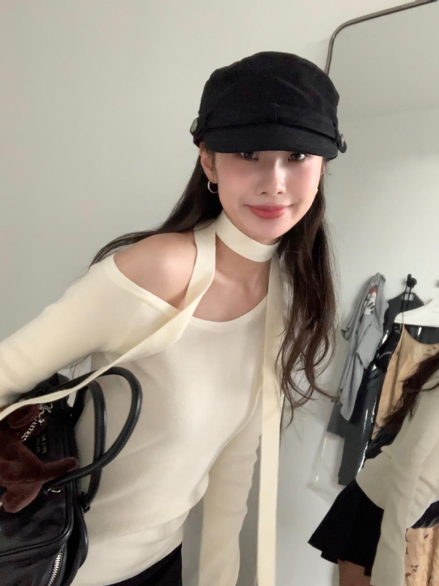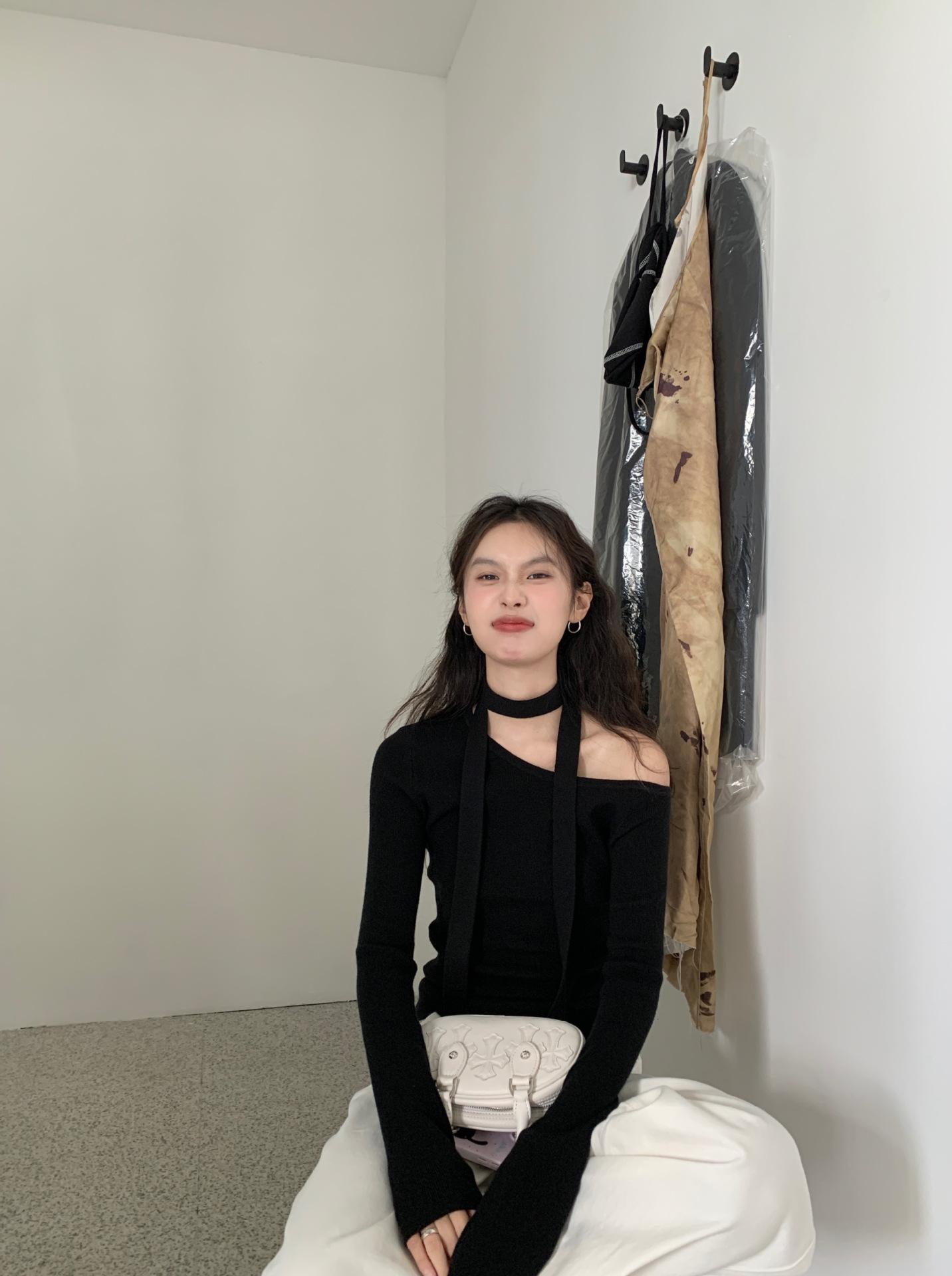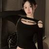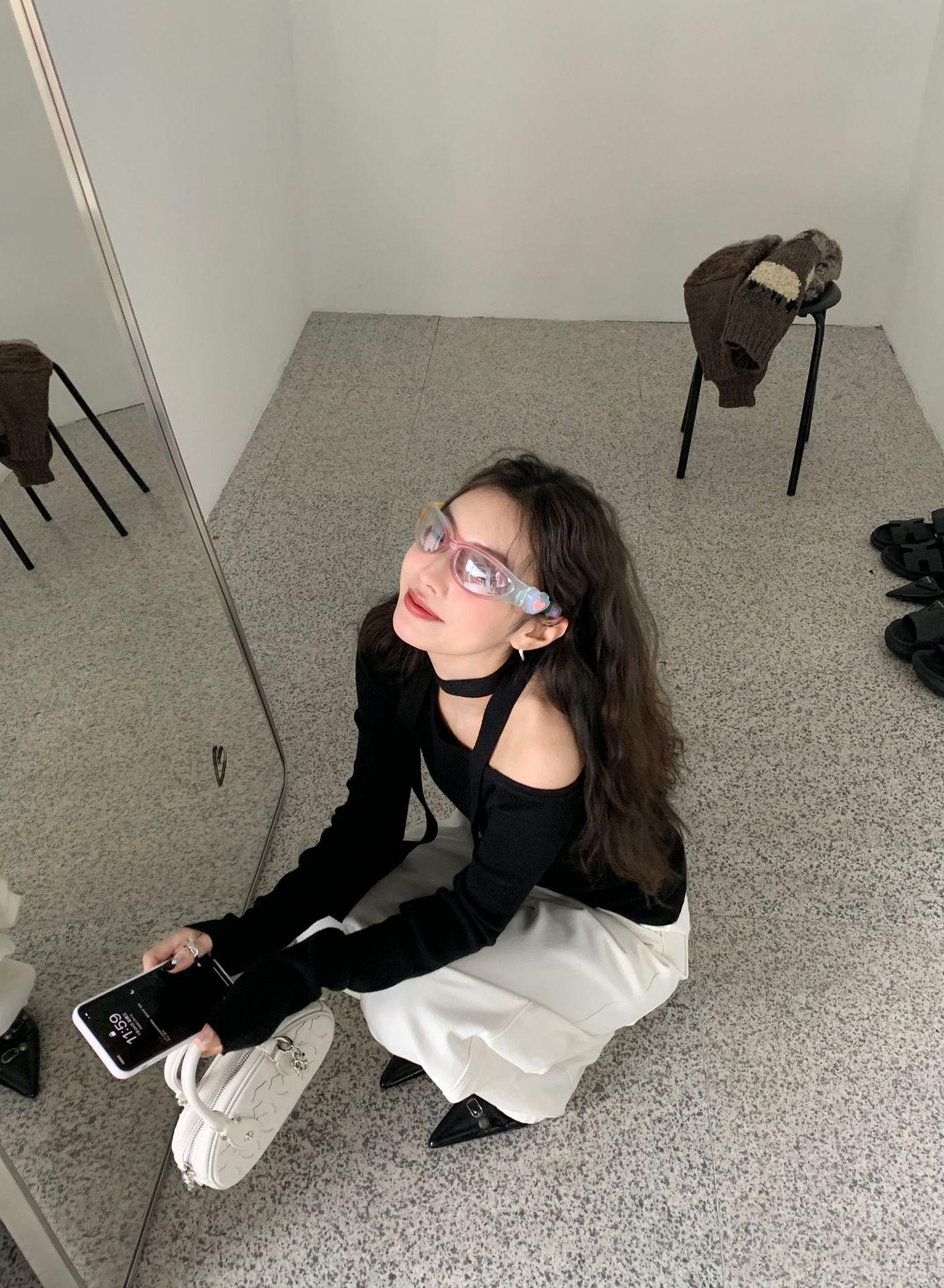 Nuevo diseño de otoño, camiseta ajustada adelgazante con hombros descubiertos y cuello colgante de Spice Girl para mujer