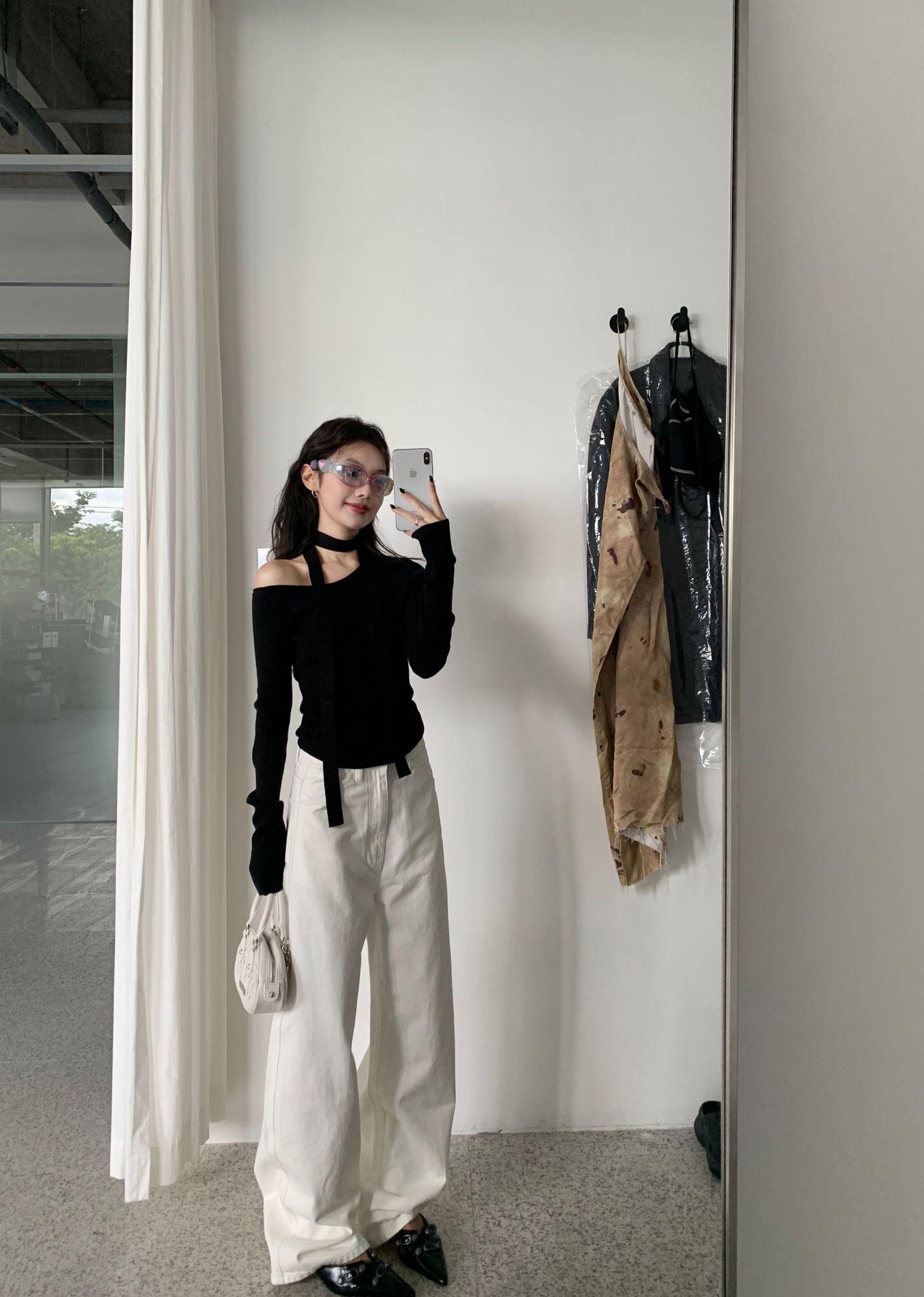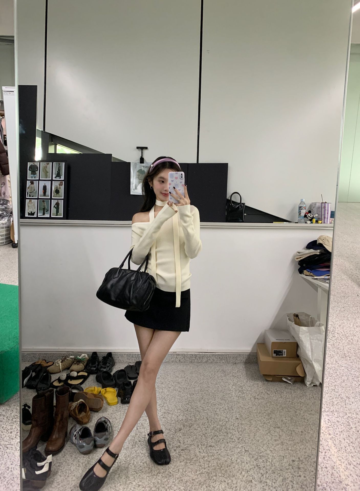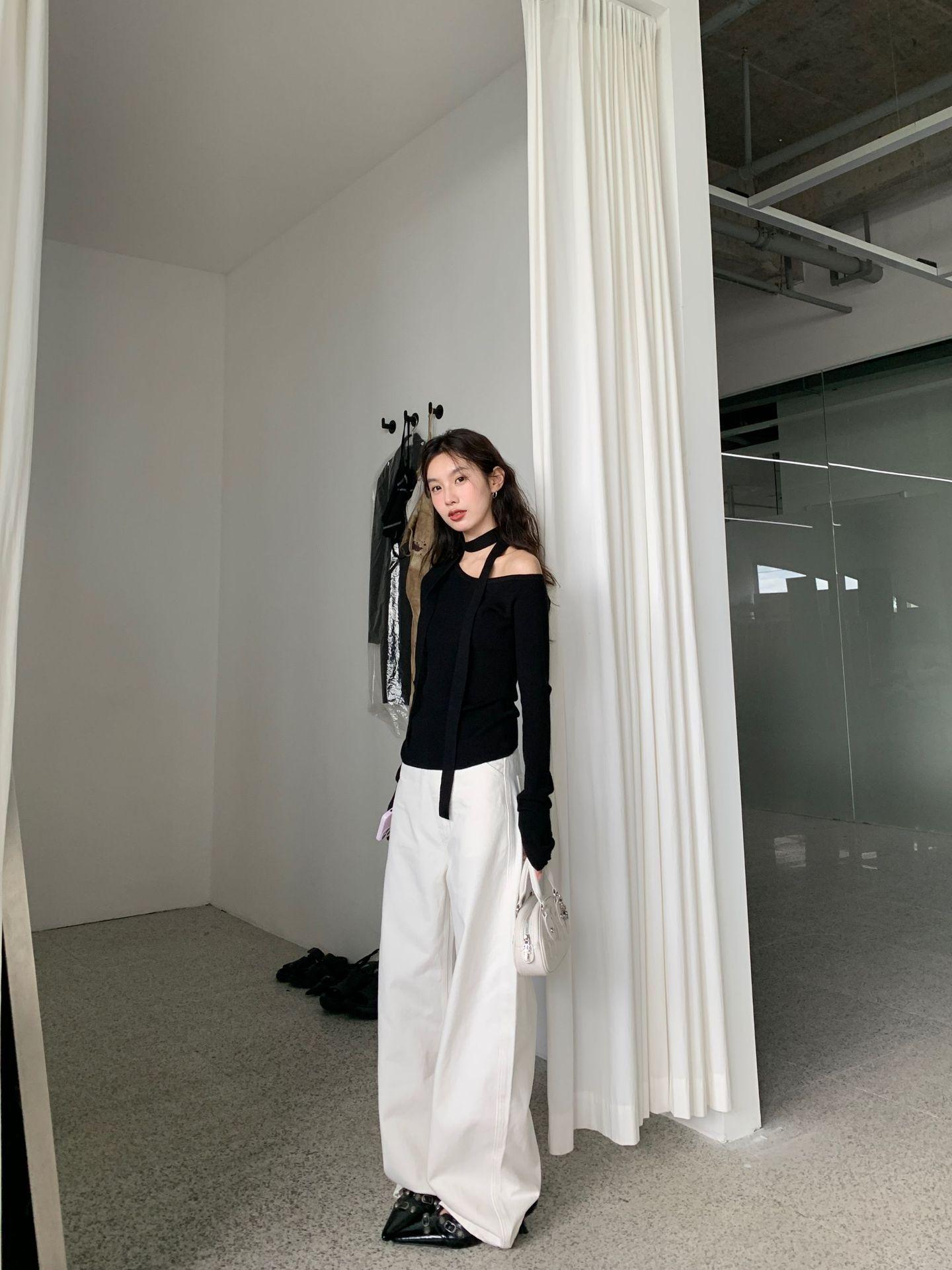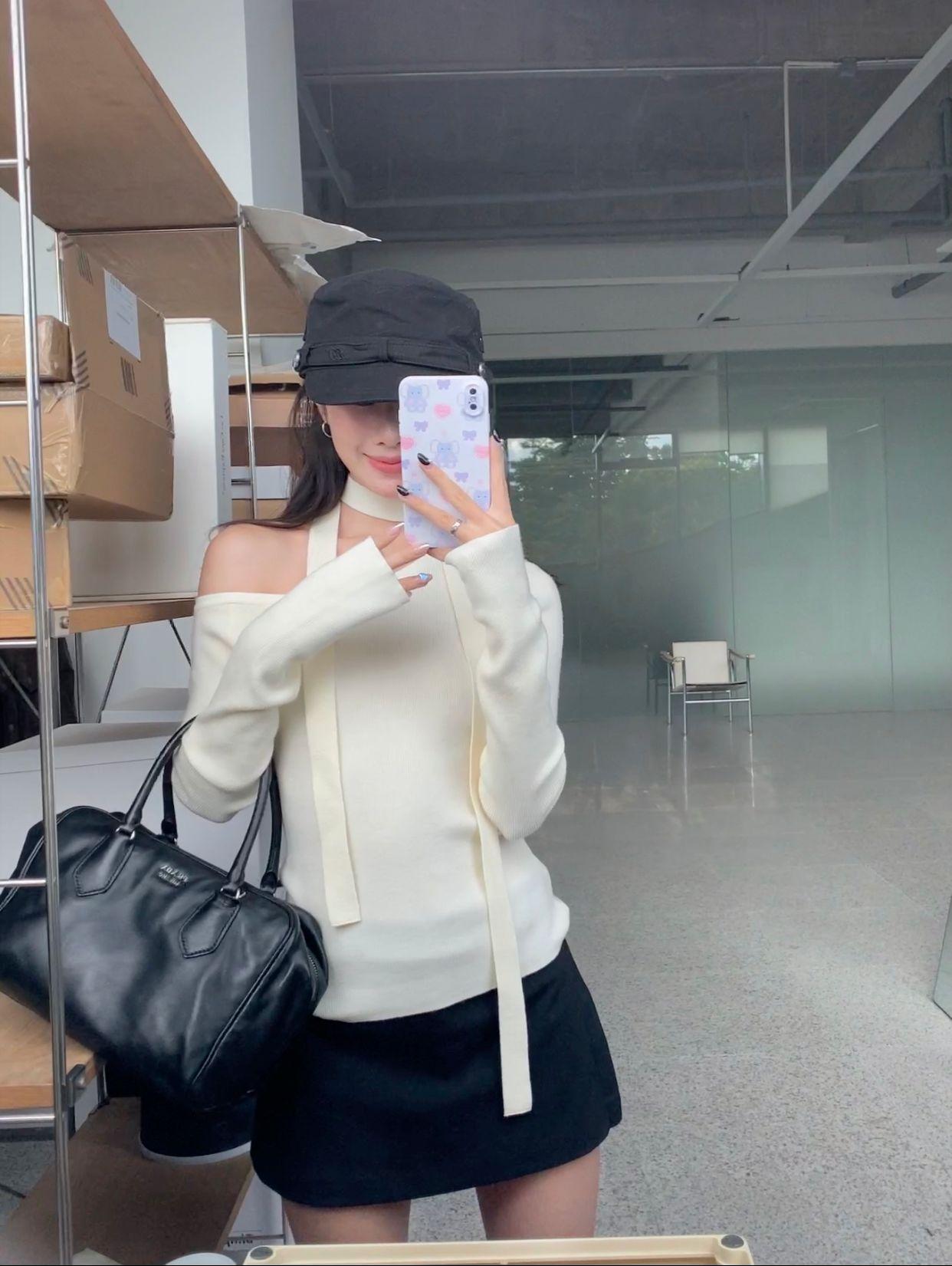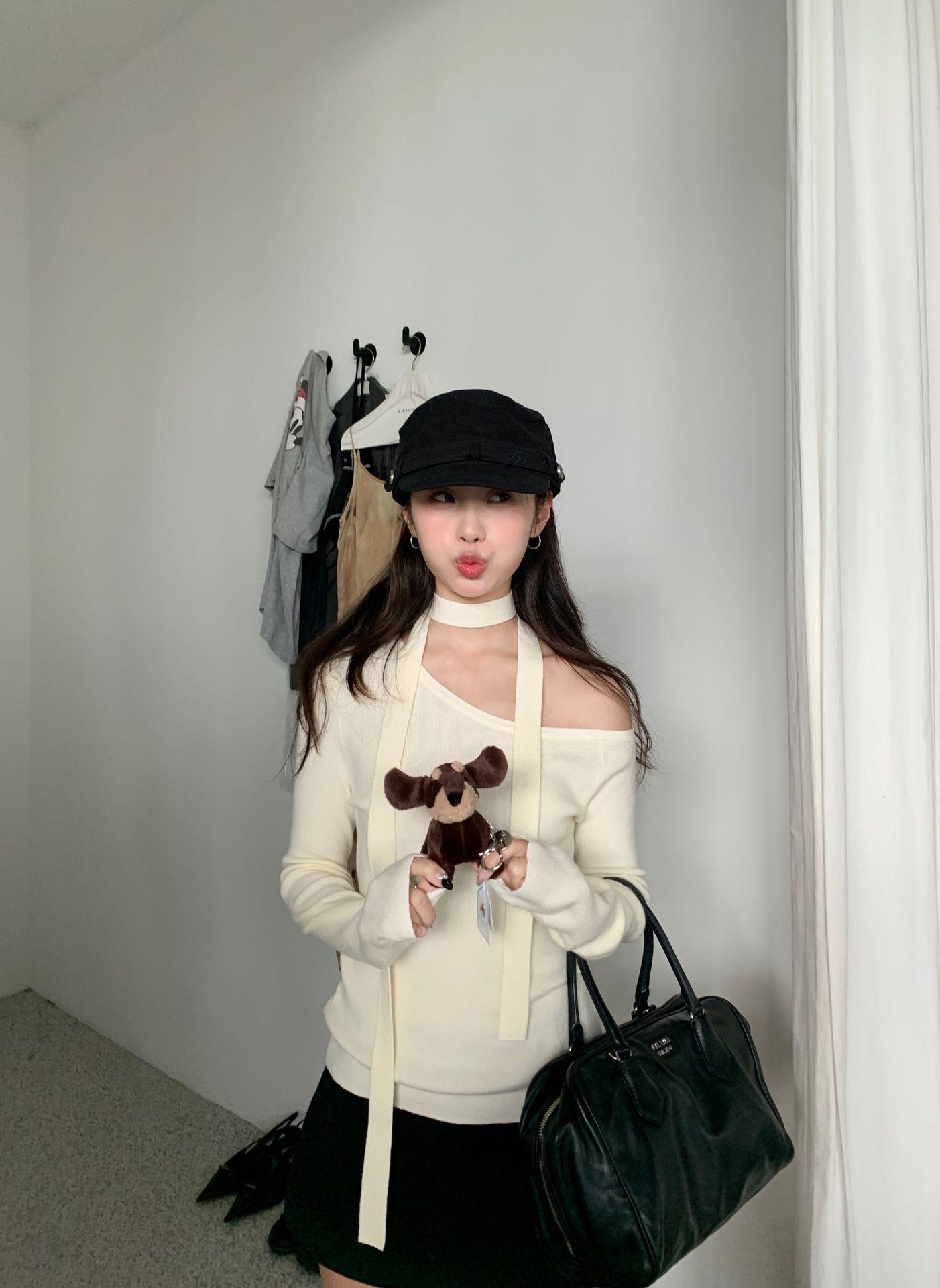 Nuevo diseño de otoño, camiseta ajustada adelgazante con hombros descubiertos y cuello colgante de Spice Girl para mujer