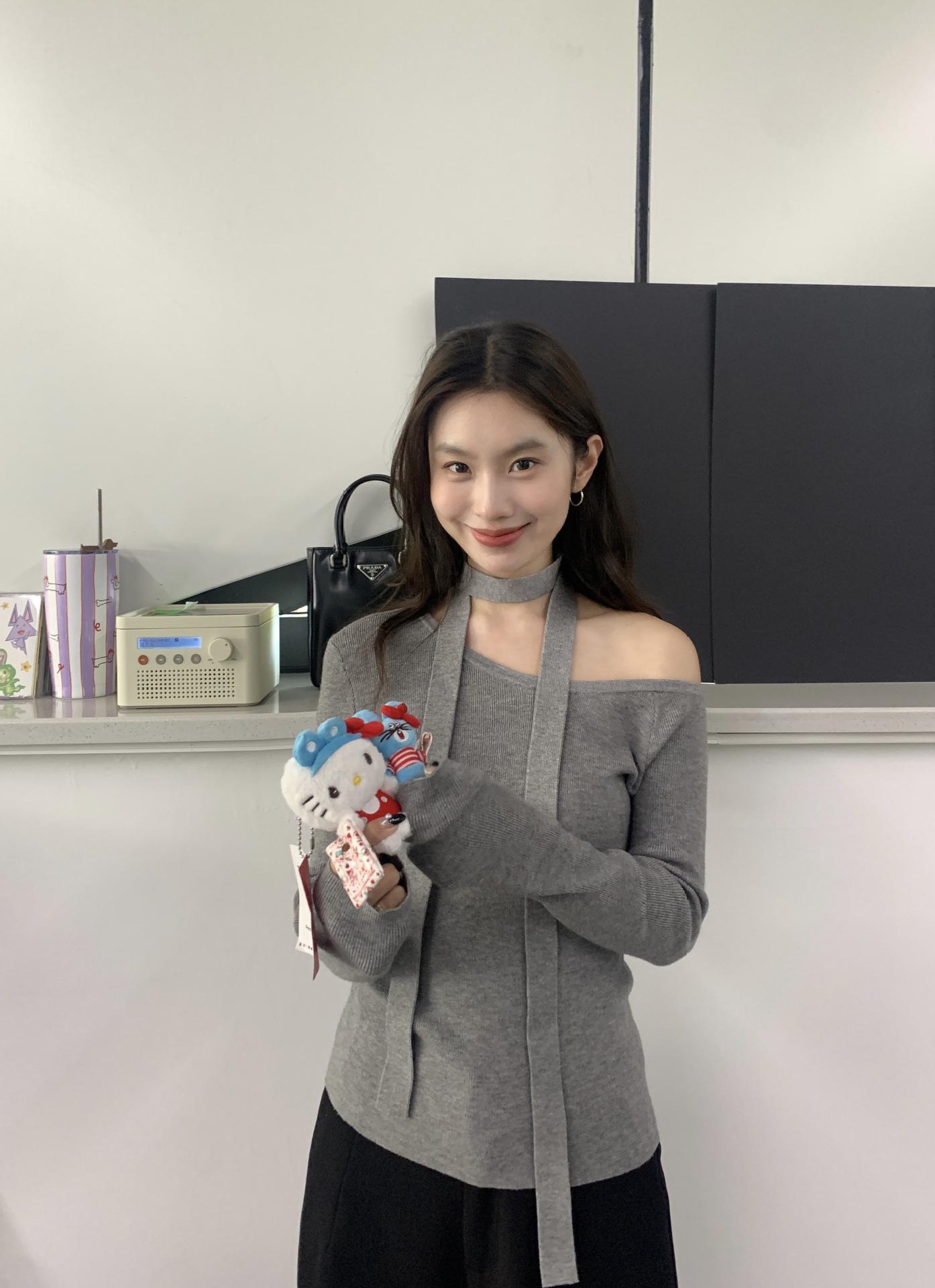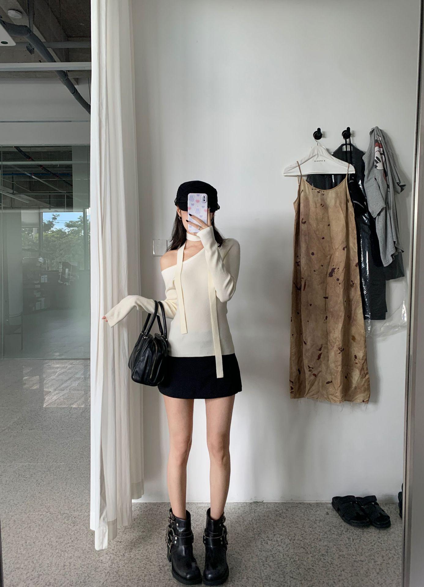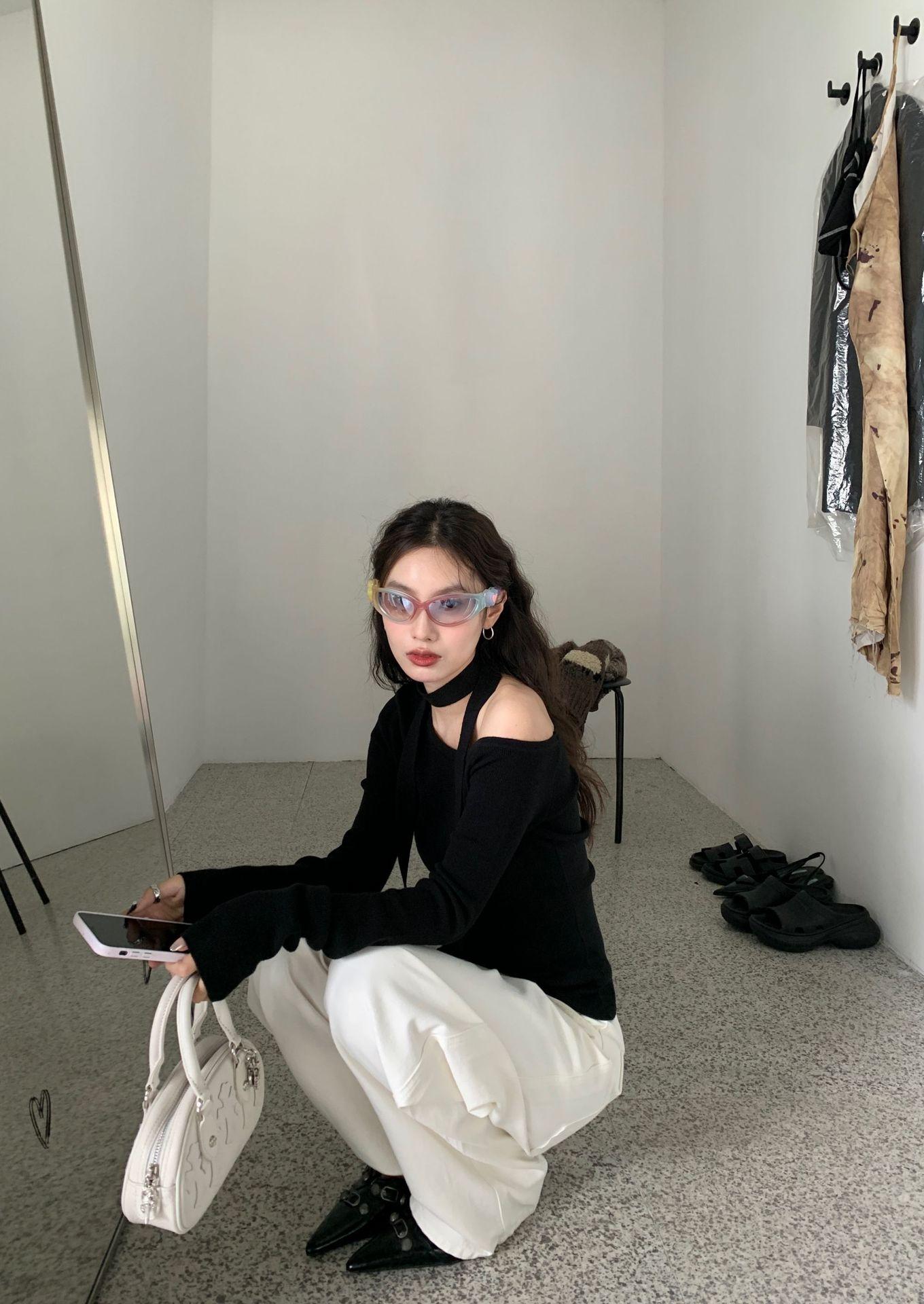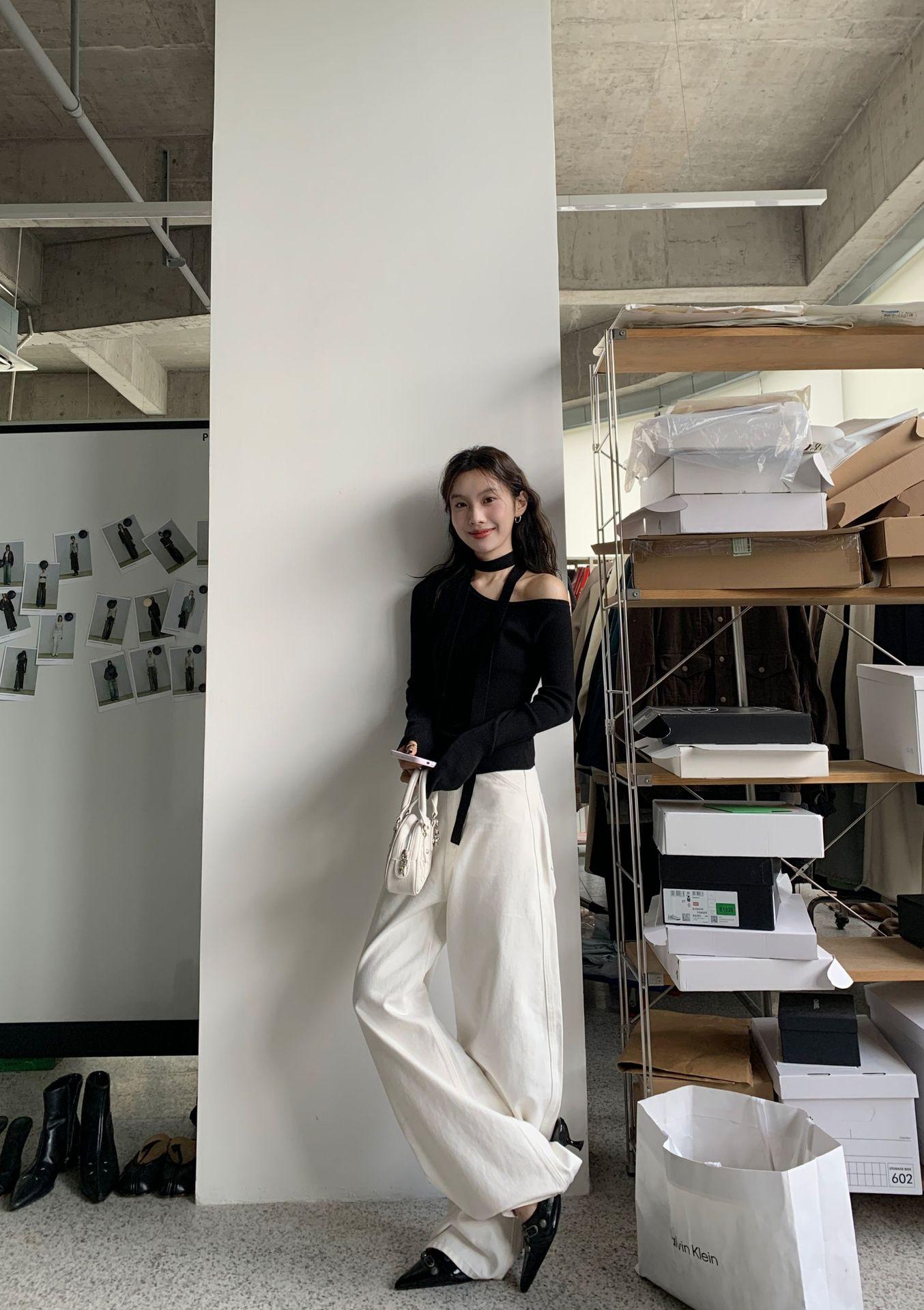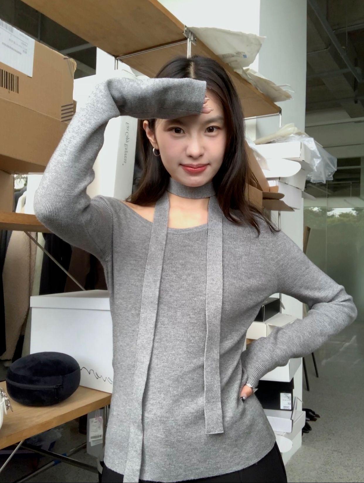 Nuevo diseño de otoño, camiseta ajustada adelgazante con hombros descubiertos y cuello colgante de Spice Girl para mujer