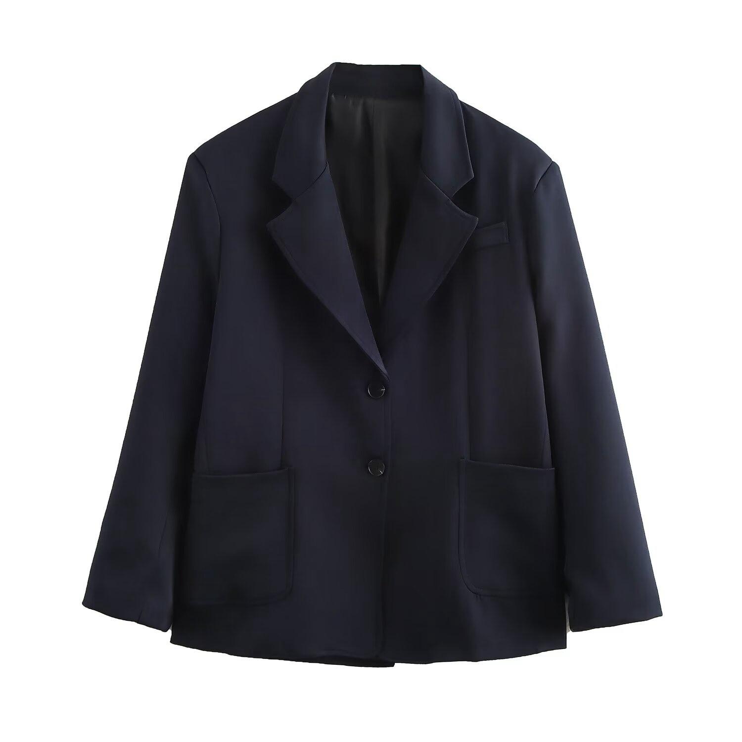 Abrigo de mujer europeo y americano transfronterizo 2024 otoño e invierno con decoración de bolsillo de dos botones versión ancha ahora 8915333