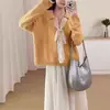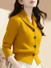 Ropa de mujer de comercio exterior, otoño 2024, nuevo estilo europeo y americano, moda femenina, solapa, manga larga, cárdigan de punto con incrustaciones doradas