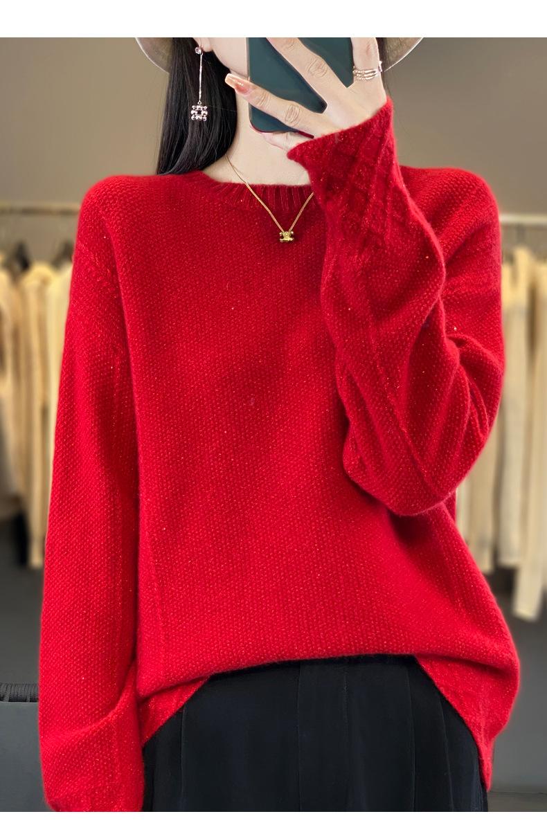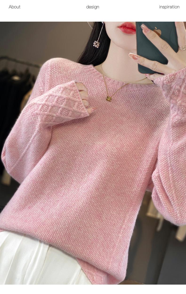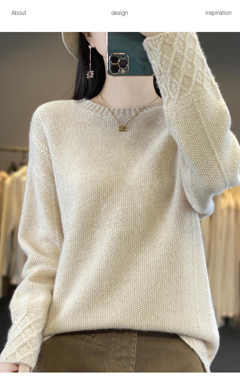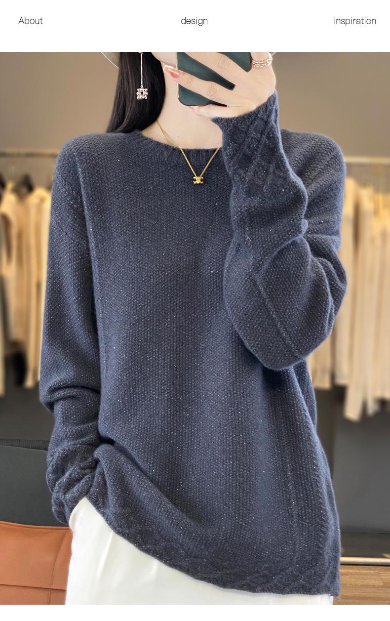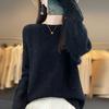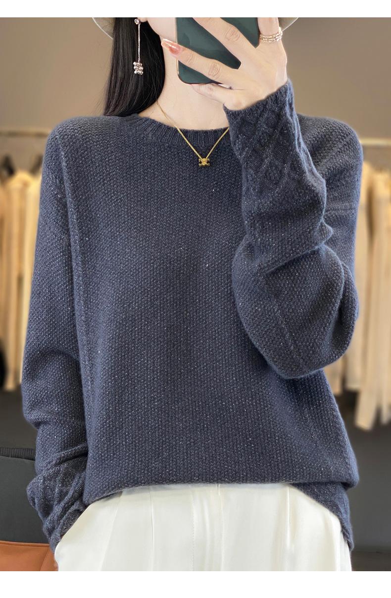 Suéter de lana de color sólido para otoño e invierno, nuevo, para mujer, cuello redondo, suave, encerado, estilo perezoso, moderno, combina con todo, base superior de moda.