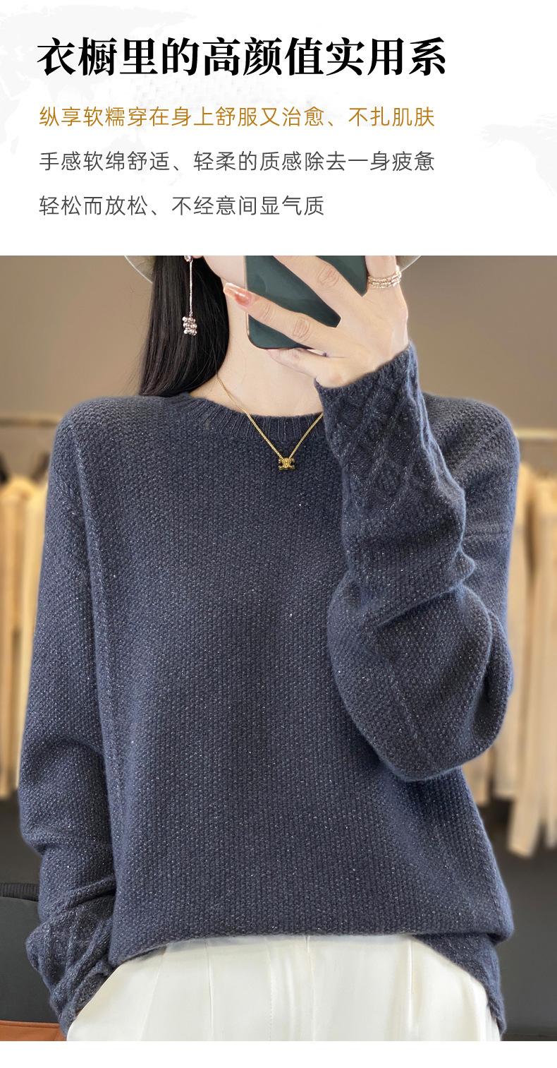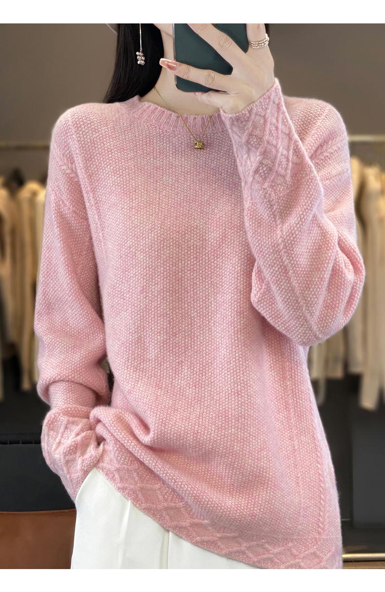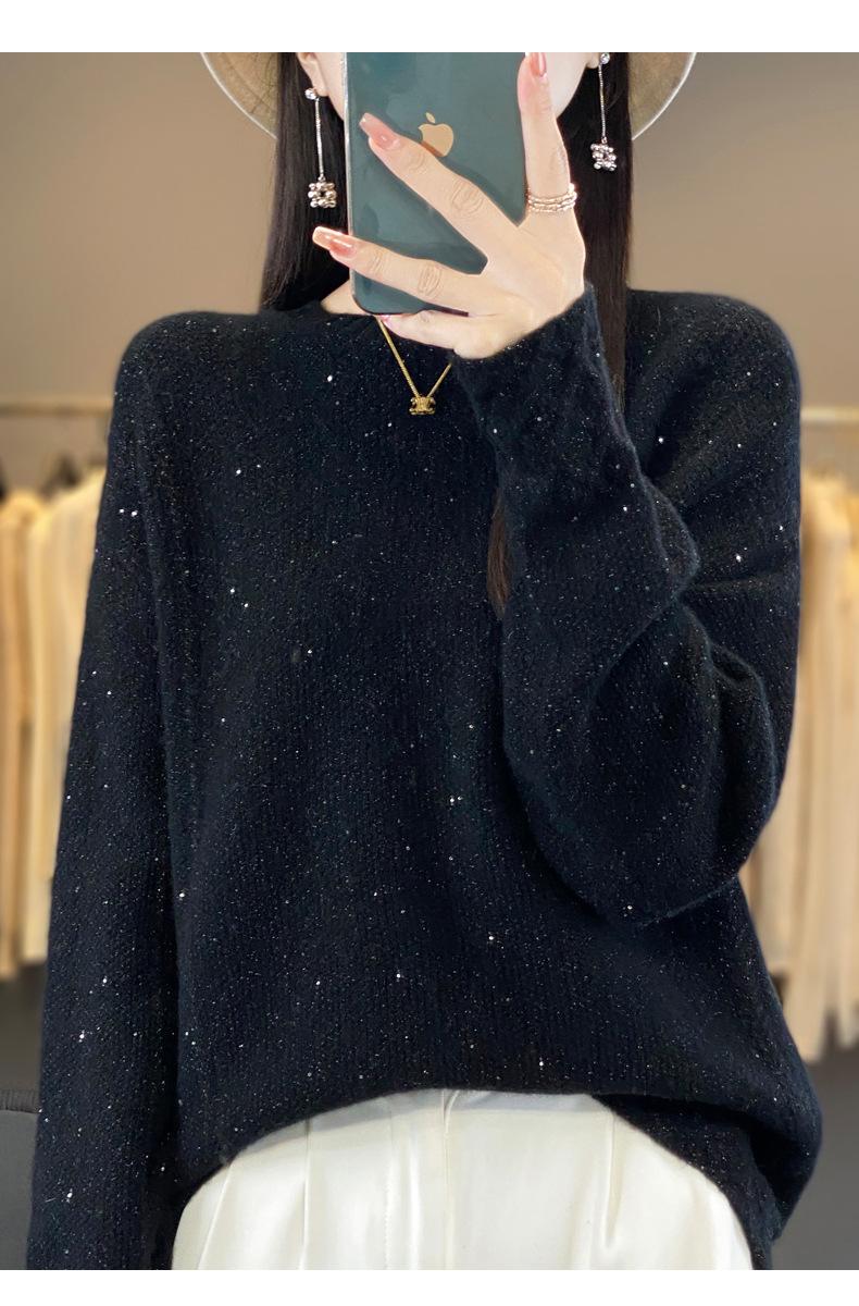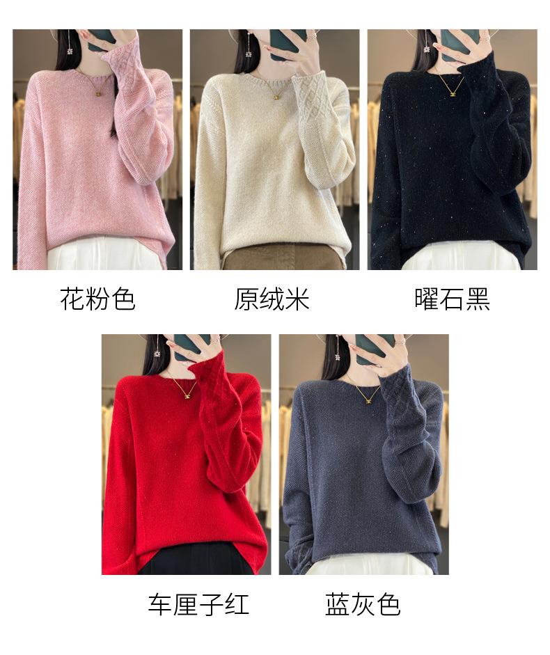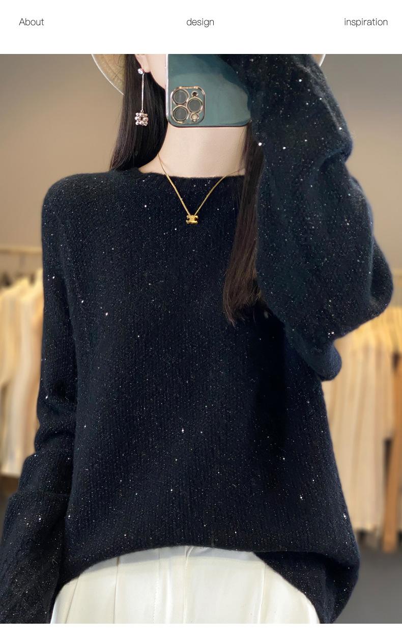 Suéter de lana de color sólido para otoño e invierno, nuevo, para mujer, cuello redondo, suave, encerado, estilo perezoso, moderno, combina con todo, base superior de moda.
