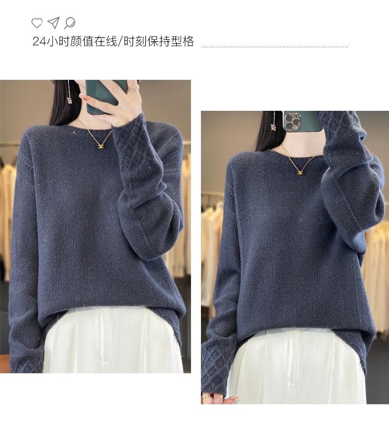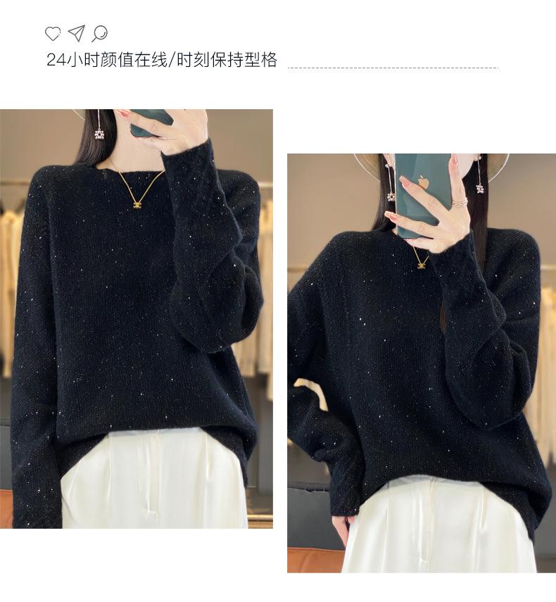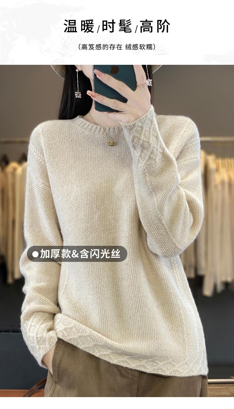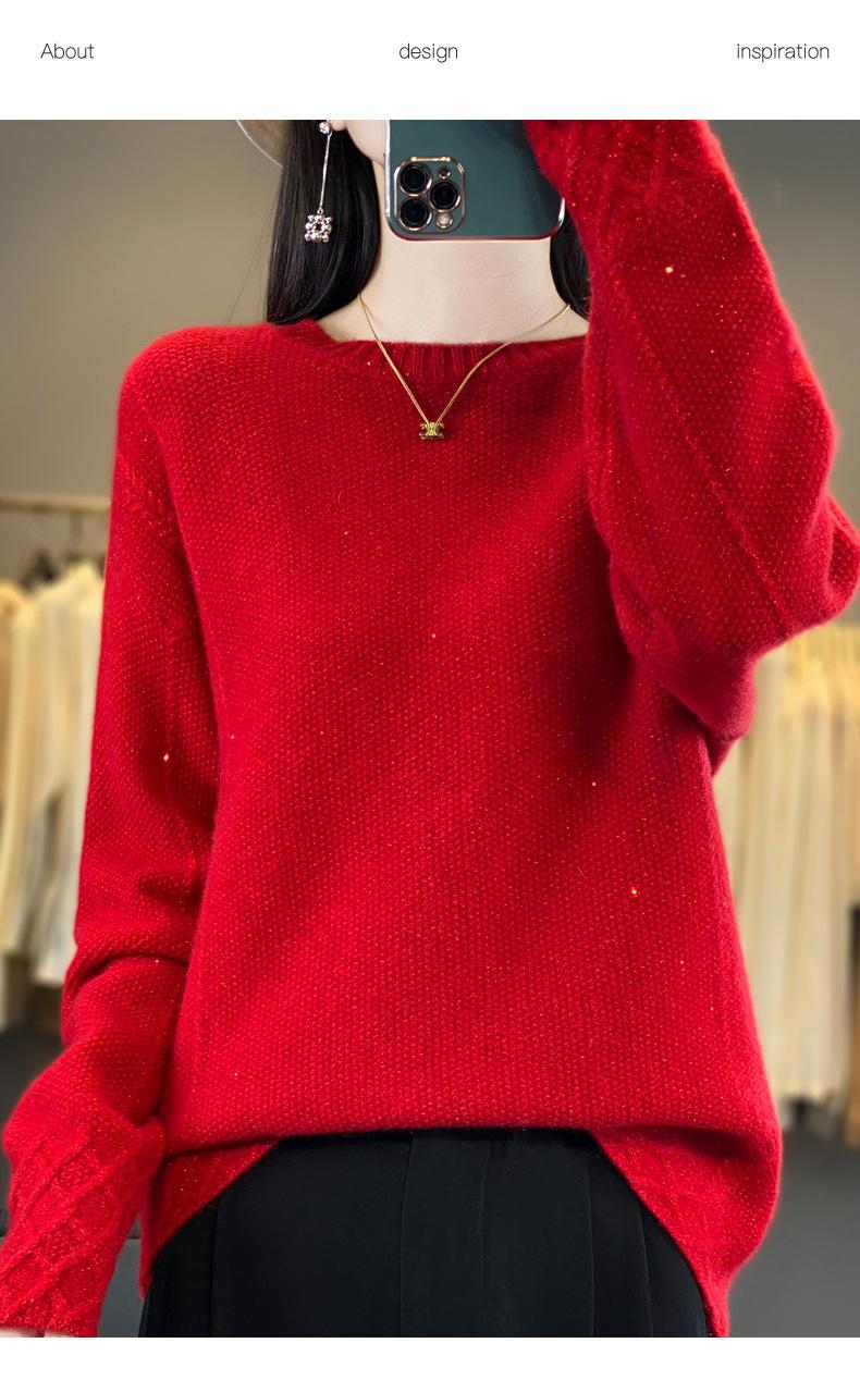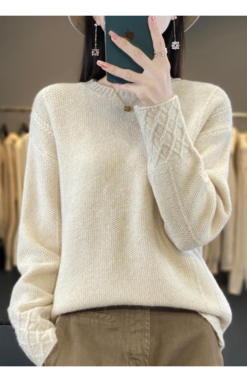 Suéter de lana de color sólido para otoño e invierno, nuevo, para mujer, cuello redondo, suave, encerado, estilo perezoso, moderno, combina con todo, base superior de moda.