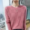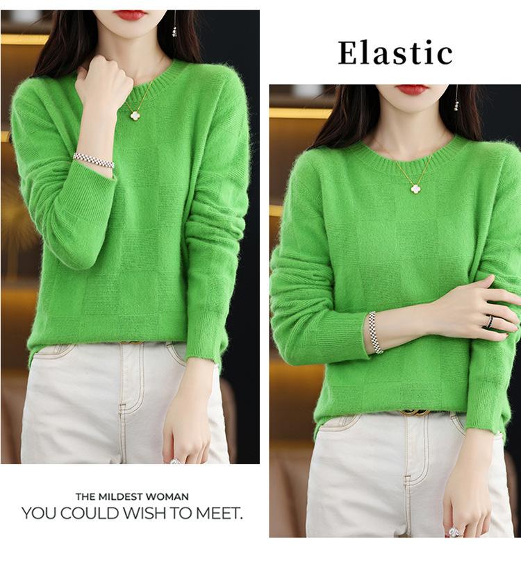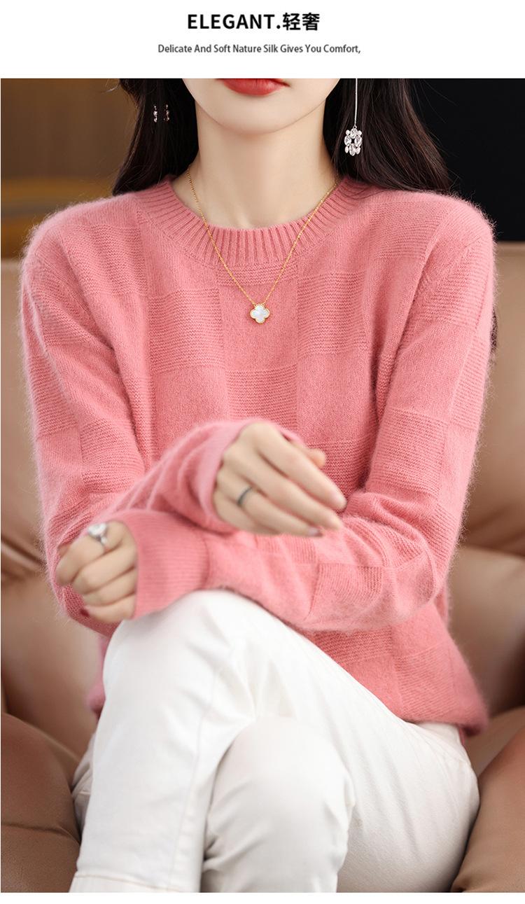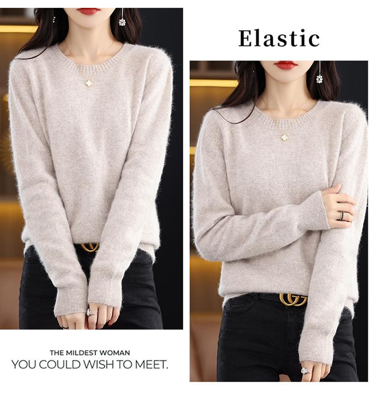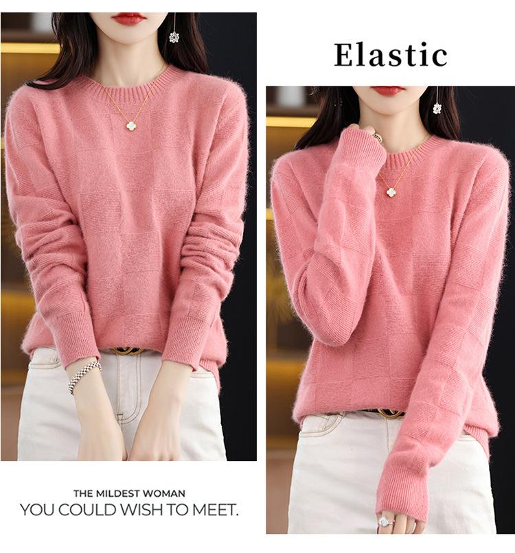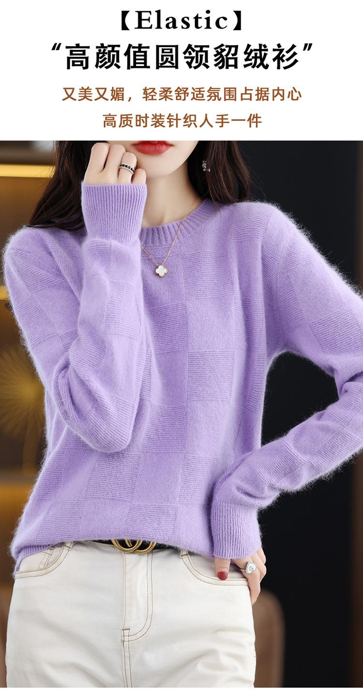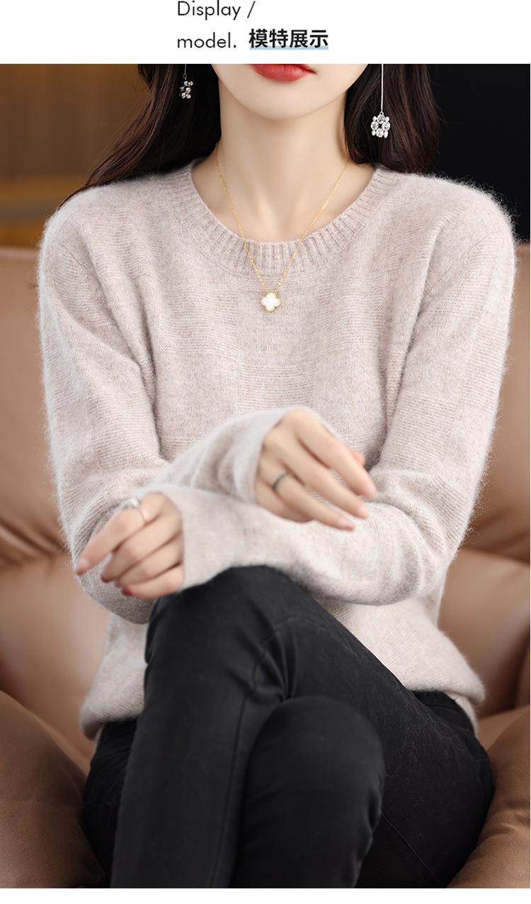 Suéter de cachemira para mujer, jersey corto holgado de cuello redondo y terciopelo de visón, color sólido, otoño e invierno, 2024