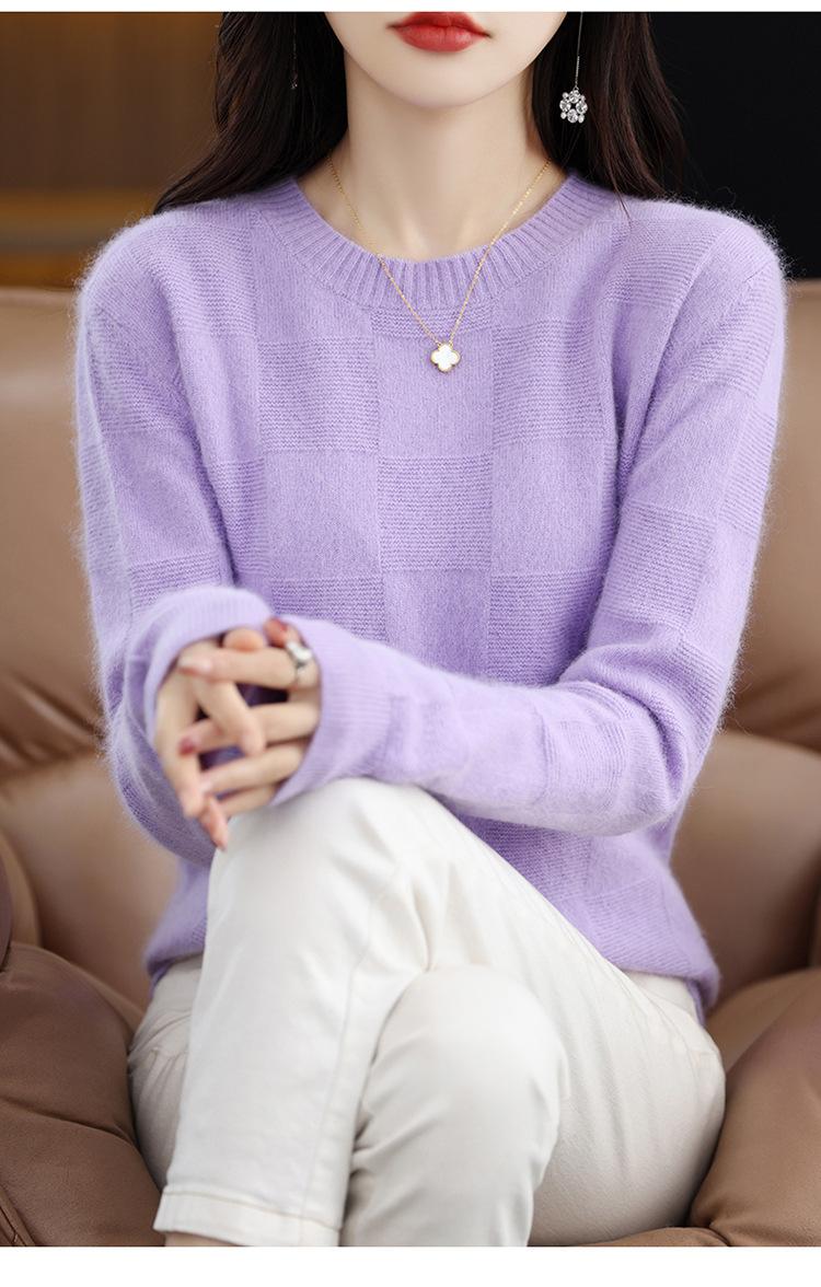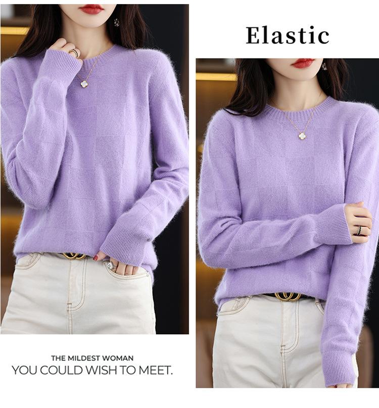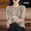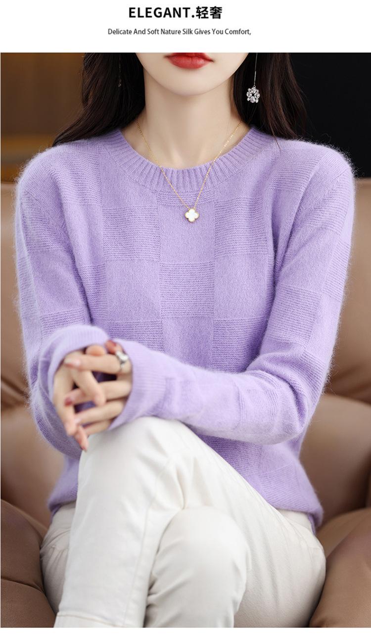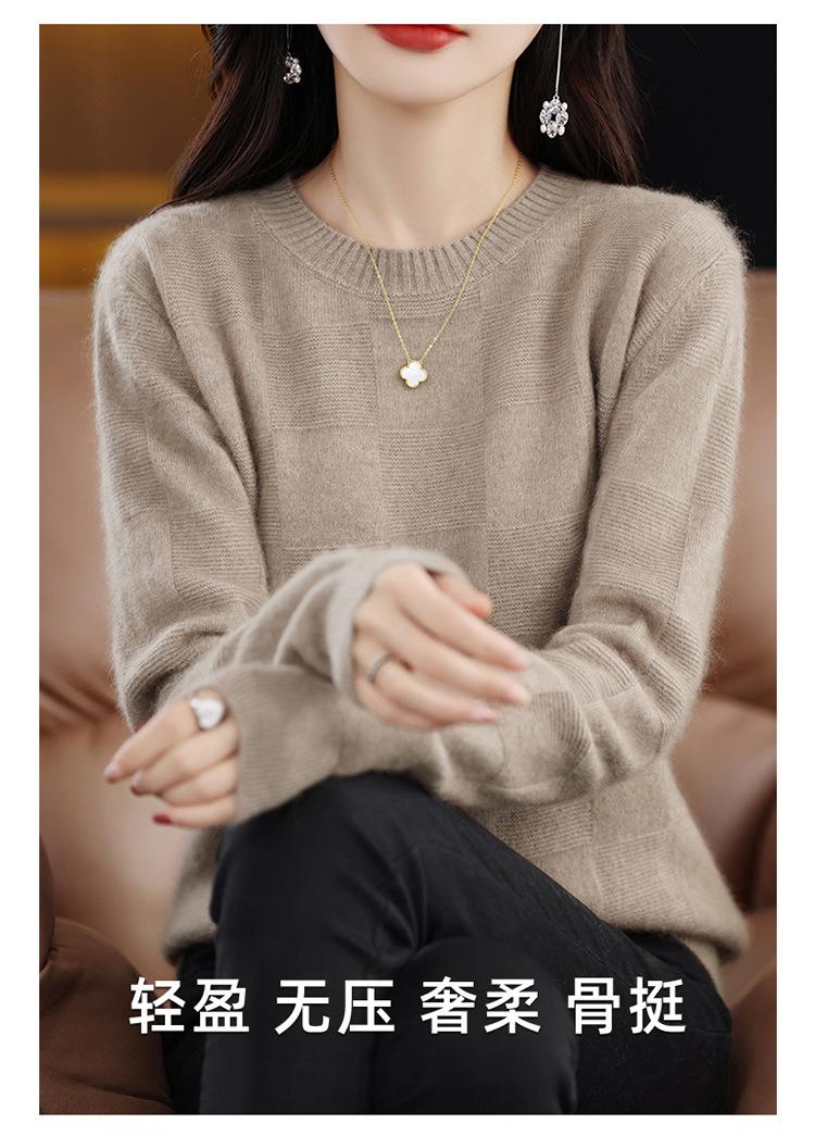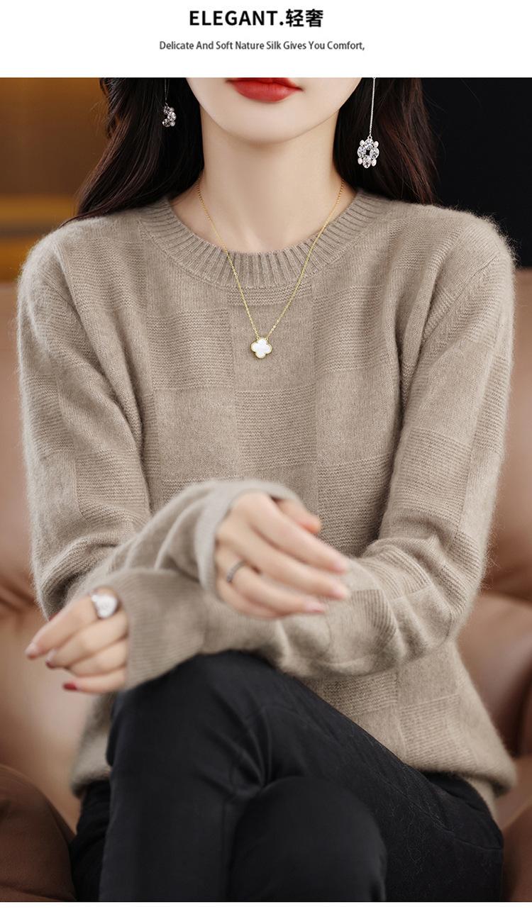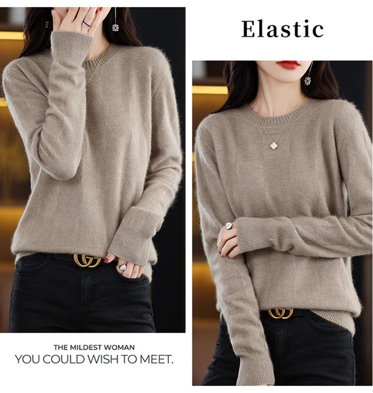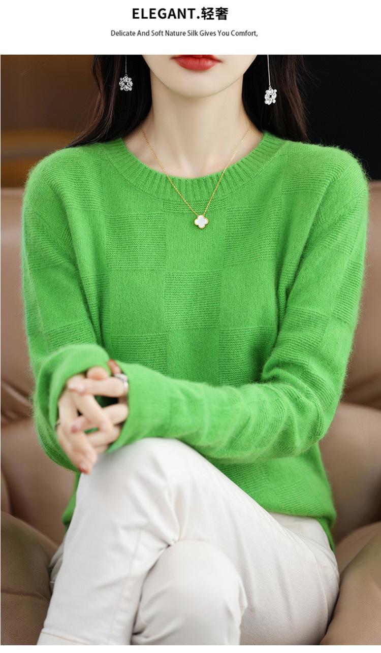 Suéter de cachemira para mujer, jersey corto holgado de cuello redondo y terciopelo de visón, color sólido, otoño e invierno, 2024
